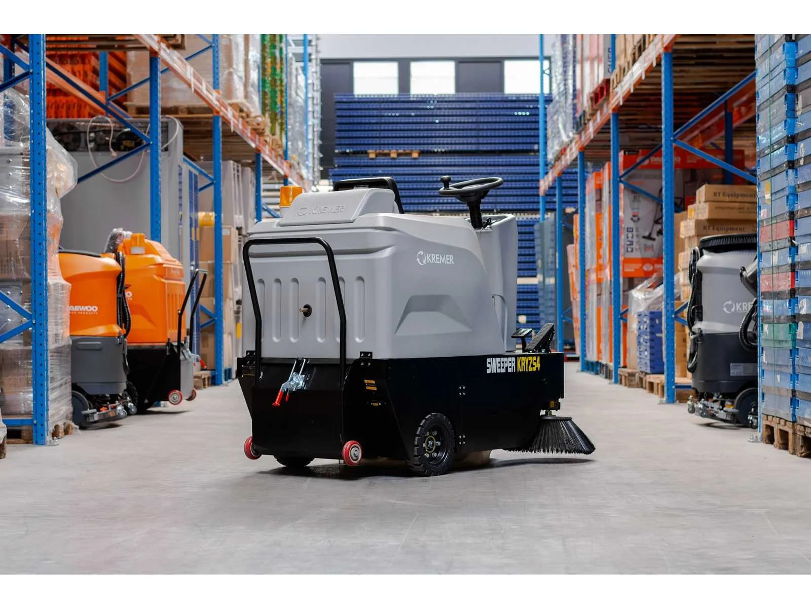 Sweeping width 1250 mm; Side brush width 2*400 mm; Walking motor 700 W; Battery capacity 48 v/ 65 ah * 4 pcs; Total weight 396 kgs; Width of main brush 500 mm; Work efficiency 6380 m2/h; Garbage capacity 80L; Roller brush motor 700W; Walking speed 0-10 Km/h; 80 liter vuilcontainer inhoud; 4782 Nee Merk: Kremer Type: KRYZS4 Bouwjaar: 2025 Elektrisch aangedreven: true Met oplader: true Eigen gewicht: 396kg Werkbreedte: 1250mm Totale afmeting L: 1600mm Totale afmeting Breedte: 1160mm Totale afmeting Hoogte: 1300mm