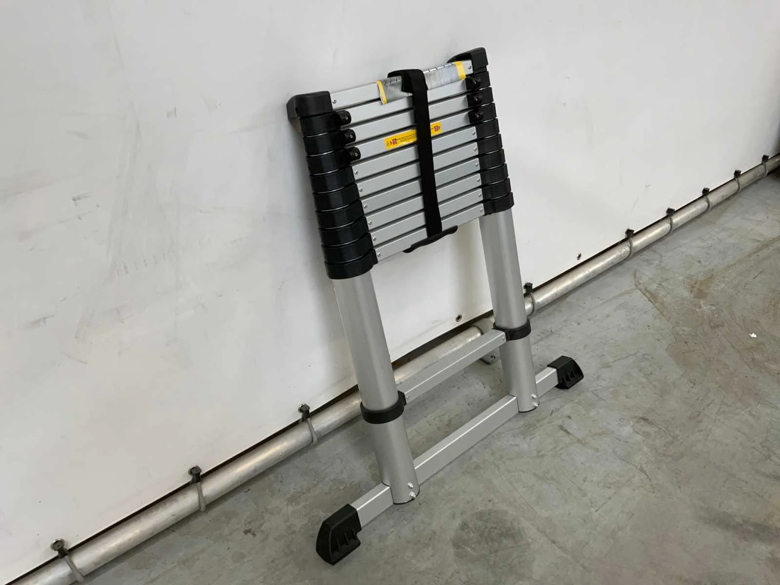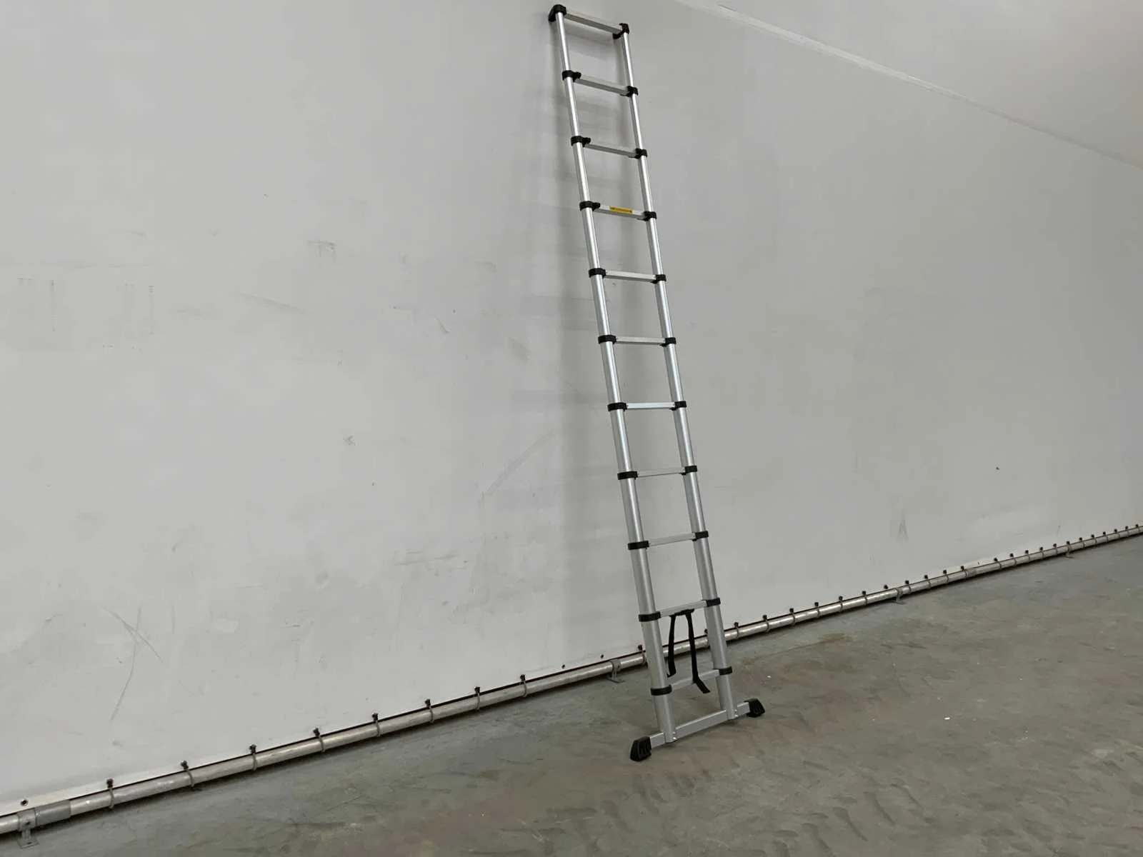 Telescopische ladder 3.2M; 5721 Nee Merk: Mrsafe Type: TL-320 Aantal treden: 11 Aluminium: true Telescoopladder: true Eigen gewicht: 14kg Totale afmeting Hoogte: 3200mm