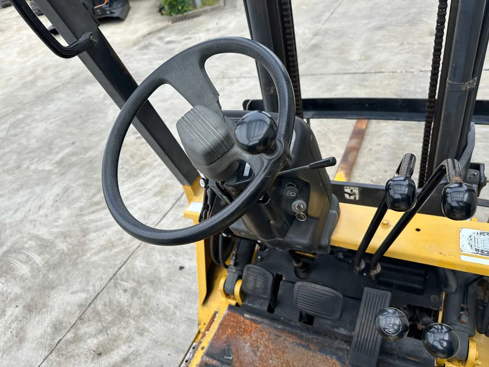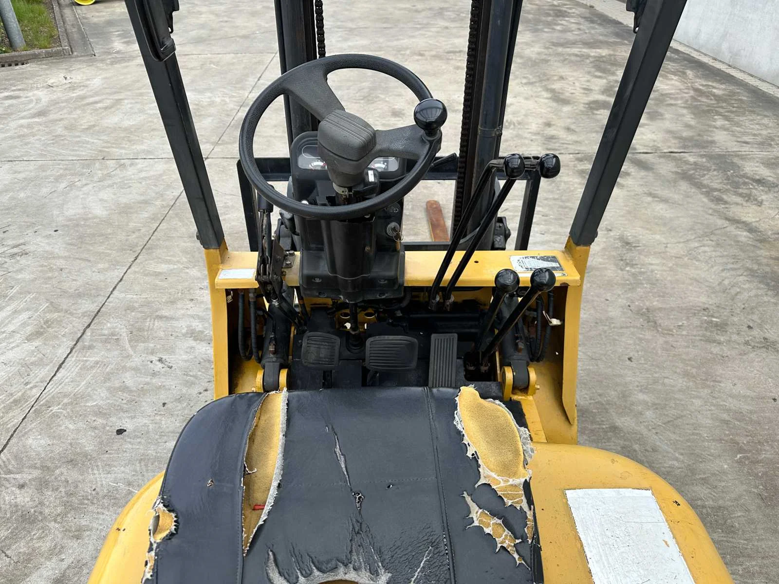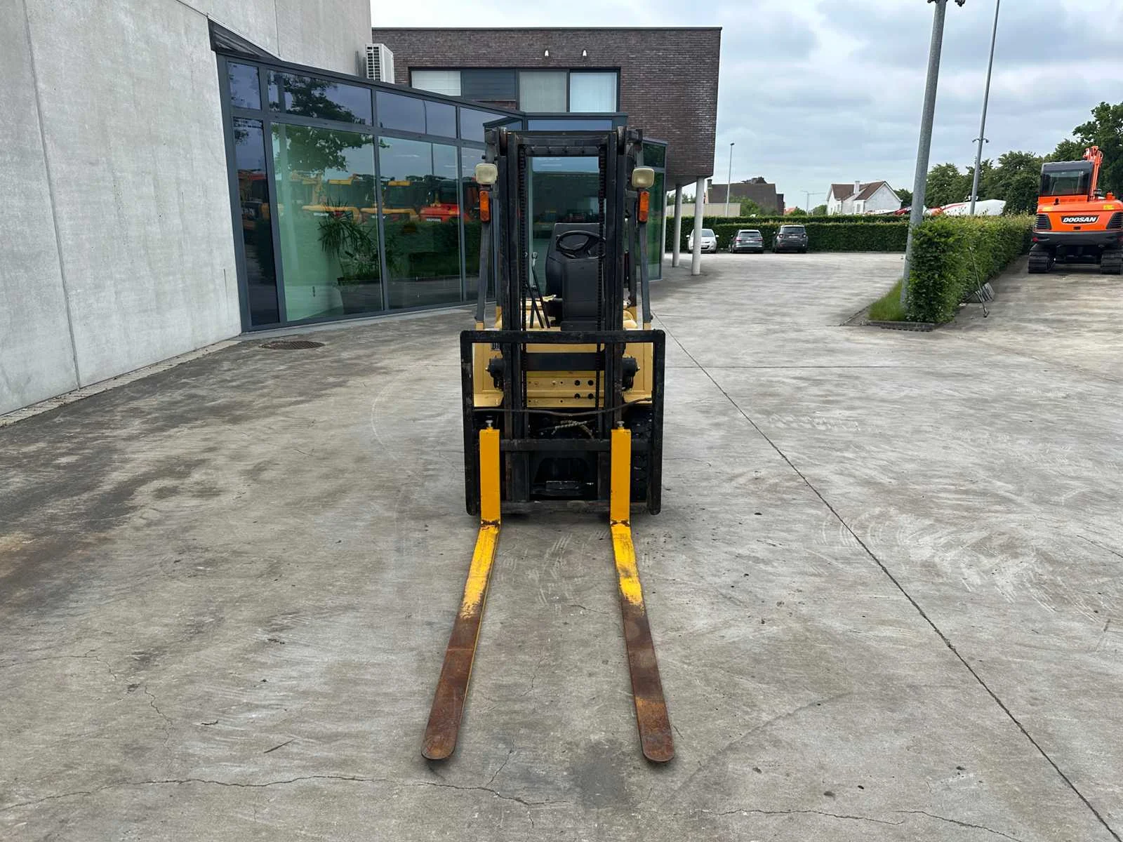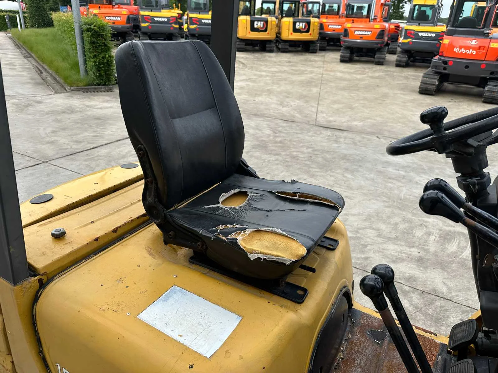Geen verdere gegevens en documenten No Merk: Mitsubishi Type: FG15 Bouwjaar: 2000 Serienummer: F25B-54387 Brandstof: Benzine Mast: 2-delig Aantal wielen: 4 Afgelezen urenstand: 10036 Duplex mast: true Eigen gewicht: 2480kg Hefvermogen: 1500kg Lepellengte: 1800mm Max. hefhoogte: 3000mm Vol rubber banden: true Totale afmeting L: 2200mm Totale afmeting Breedte: 1050mm Totale afmeting Hoogte: 2000mm