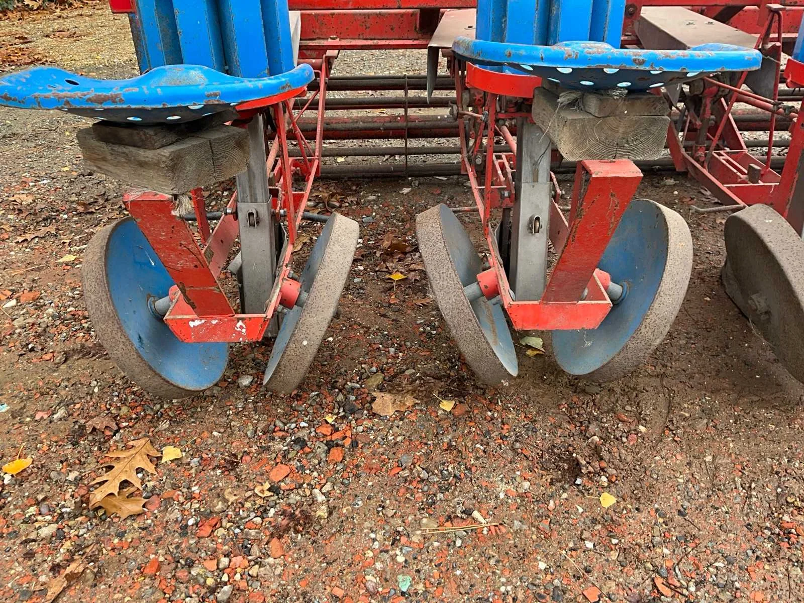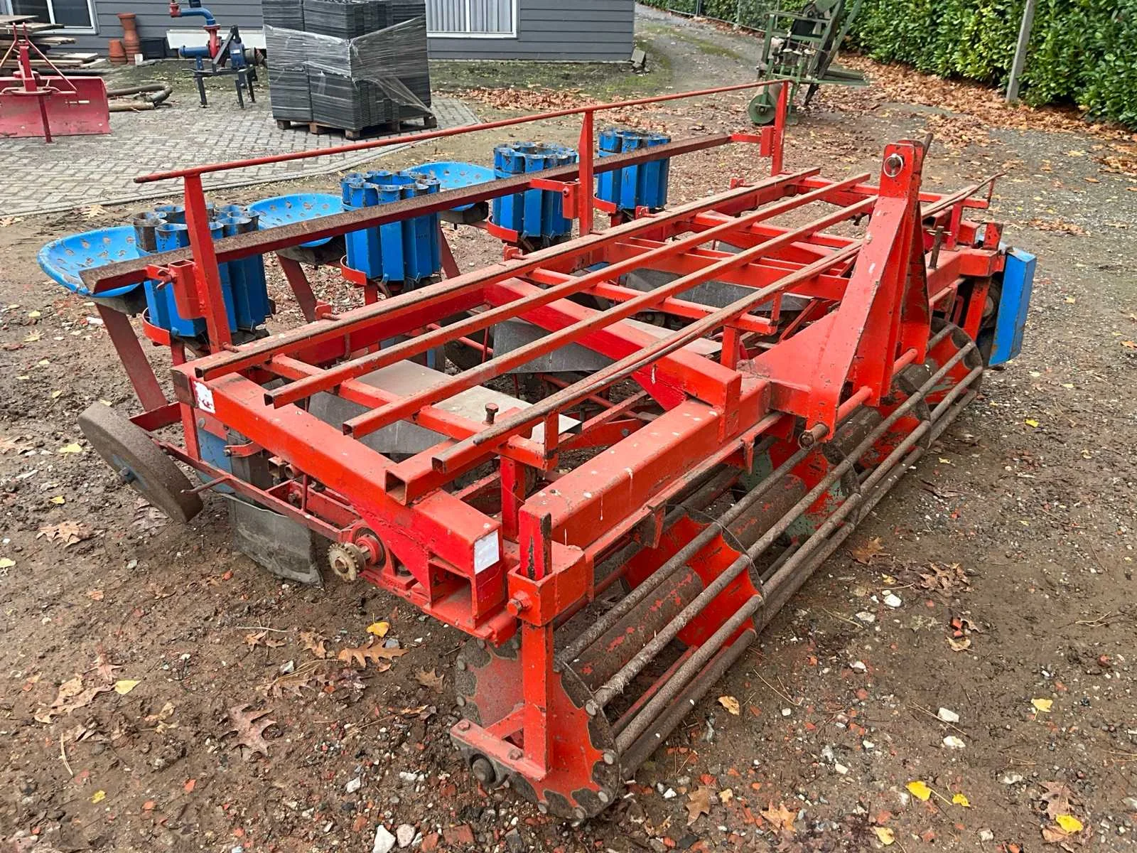 Stevige plantmachine met 4 zitplaatsen en planterschijven, geschikt voor diverse vollegrondsgroenten (zoals kool, prei, sla, bloemkool, enz.). Mechanische aandrijving via loopwielen, verstelbare plantafstand en aangedrukte plantrijen met achterrollen - 4 planterschijven met handmatige invoer: efficiënt voor kleinere of middelgrote percelen - Uitgerust met 4 stoelen, instelbare planthoogte en drukrollen achteraan voor goede grondsluiting - Mechanisch aangedreven via de wielen – geen hydrauliek of aftakas nodig - Robuuste, eenvoudig opgebouwde machine met weinig onderhoud - kan door verkoper geladen worden - werkbreedte 280cm Nee Merk: Lauwers Eigen gewicht: 800kg Totale afmeting L: 2000mm Totale afmeting Breedte: 2800mm Totale afmeting Hoogte: 1155mm