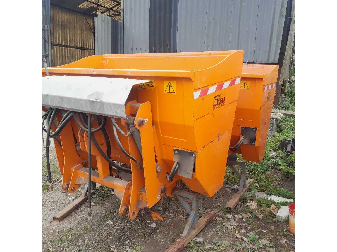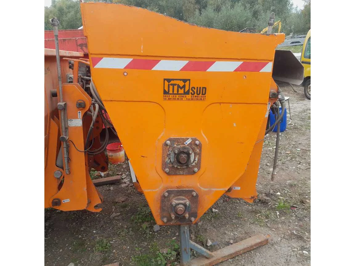 ITM S PR D 1200 – Hydraulische zoutstrooier (2 stuks) Merk: ITM Type: S PR D 1200 Bouwjaar: 2011 Machine nr.: 1971 Serienr. ITM SA: SA01024 Serienr. SUD SA: SUD00040 Categorie: Zoutstrooier / Winterdienstmateriaal Beschrijving: Professionele hydraulische zout- en zandstrooiers van het Belgische merk ITM. Sterke, industriële machines met eenvoudige en betrouwbare opbouw. Geschikt voor montage achter een tractor of werktuigdrager. Toepassing: Ideaal voor gladheidsbestrijding op parkings, wegen en bedrijfsterreinen. Ook bruikbaar voor zand of andere korrelige materialen. Technische gegevens (indicatief): Aandrijving: Hydraulisch Capaciteit: ca. 1200 liter (1,2 m³) Constructie: Gelaste stalen bak met roestbescherming Strooibreedte: Instelbaar (afhankelijk van toerental) Dosering: Regelbaar via schuifklep Aankoppeling: Achter tractor (3-punts of trekhaak) Gewicht: ca. 300 kg (leeg) Afmetingen: ca. 1,8 m breed × 1,2 m diep × 1,3 m hoog Staat: Lichte oppervlakteroest Geen structurele schade Werking onbekend, maar amper gebruikt Wordt verkocht in huidige staat Nee