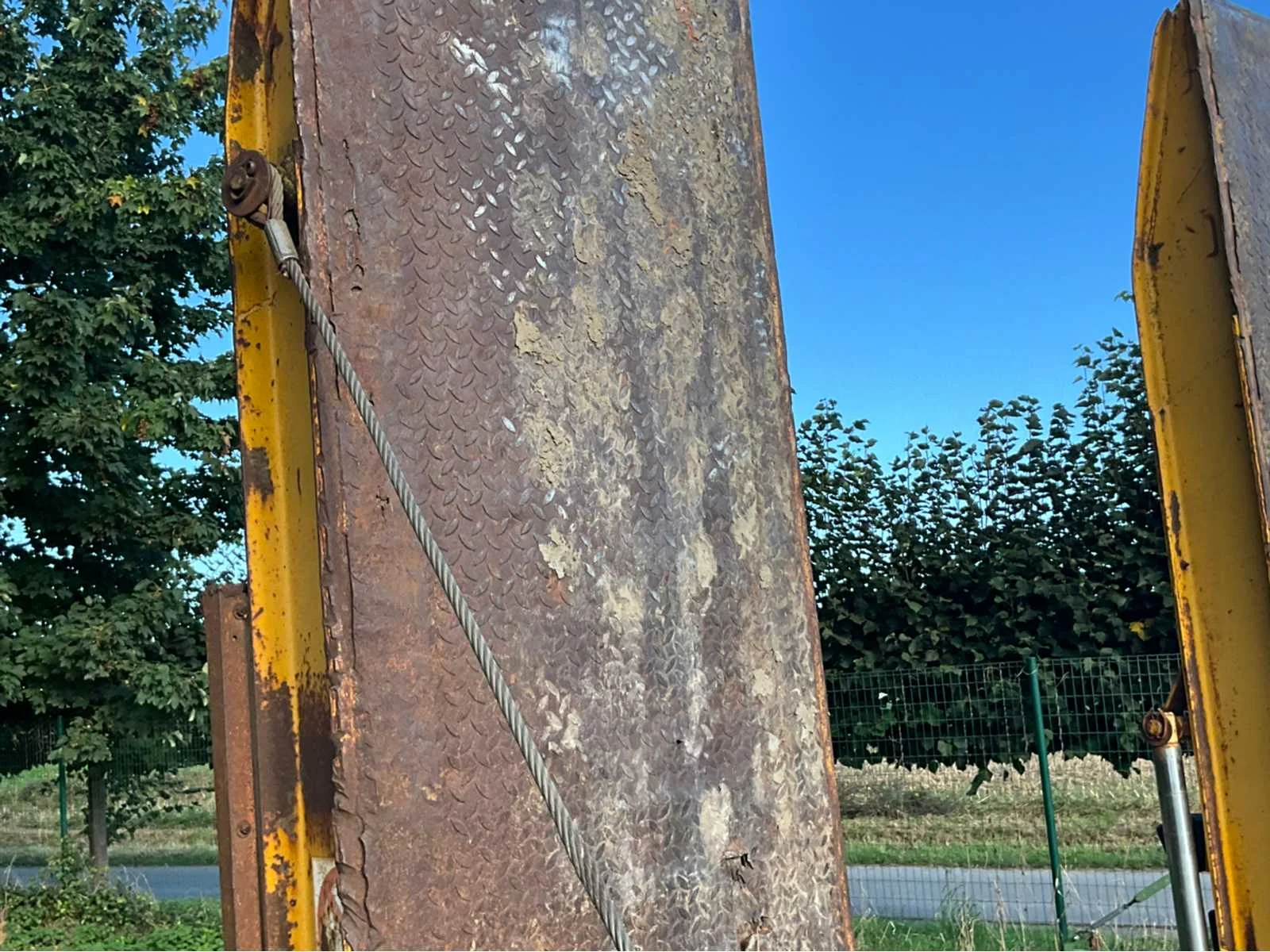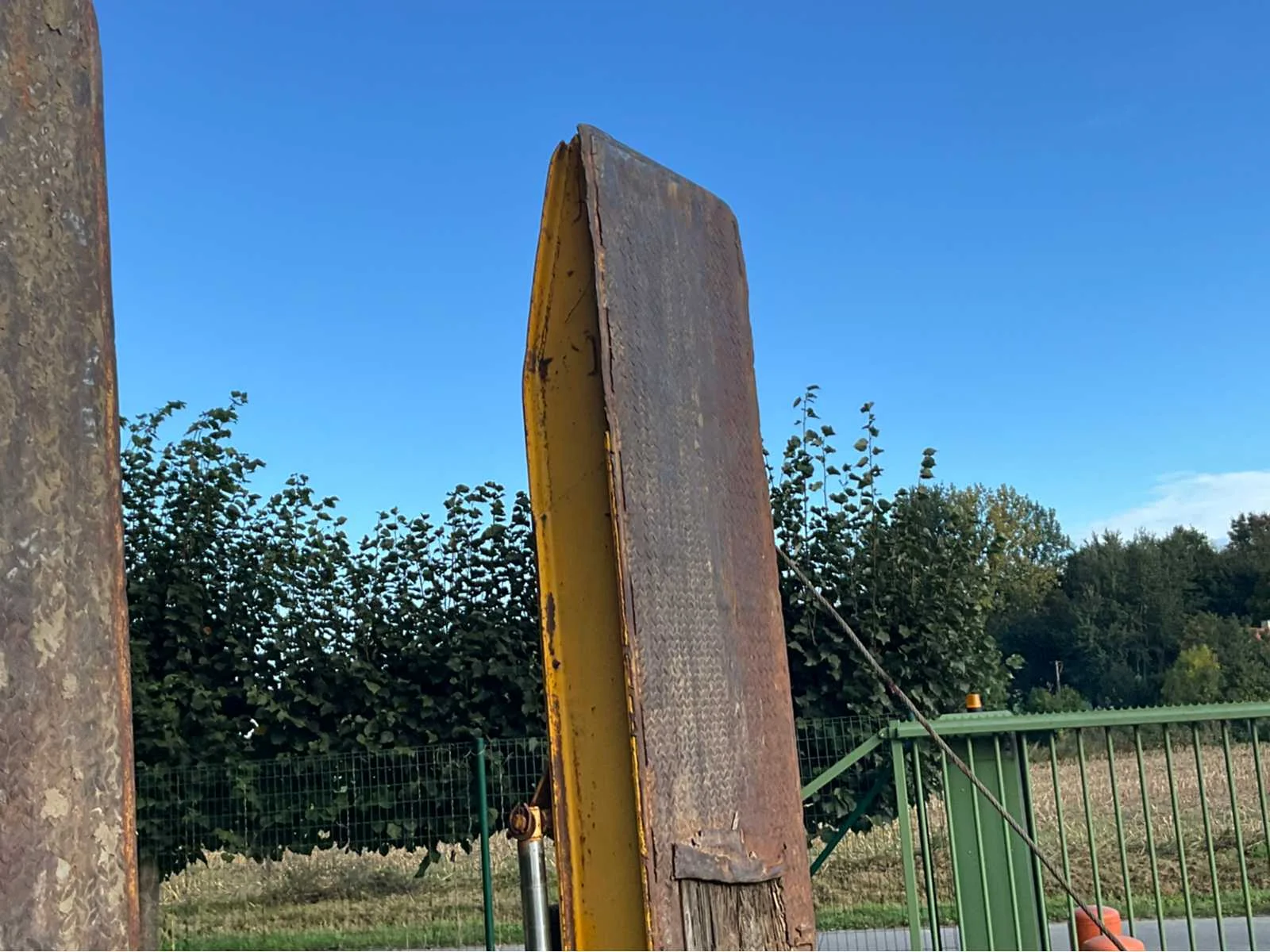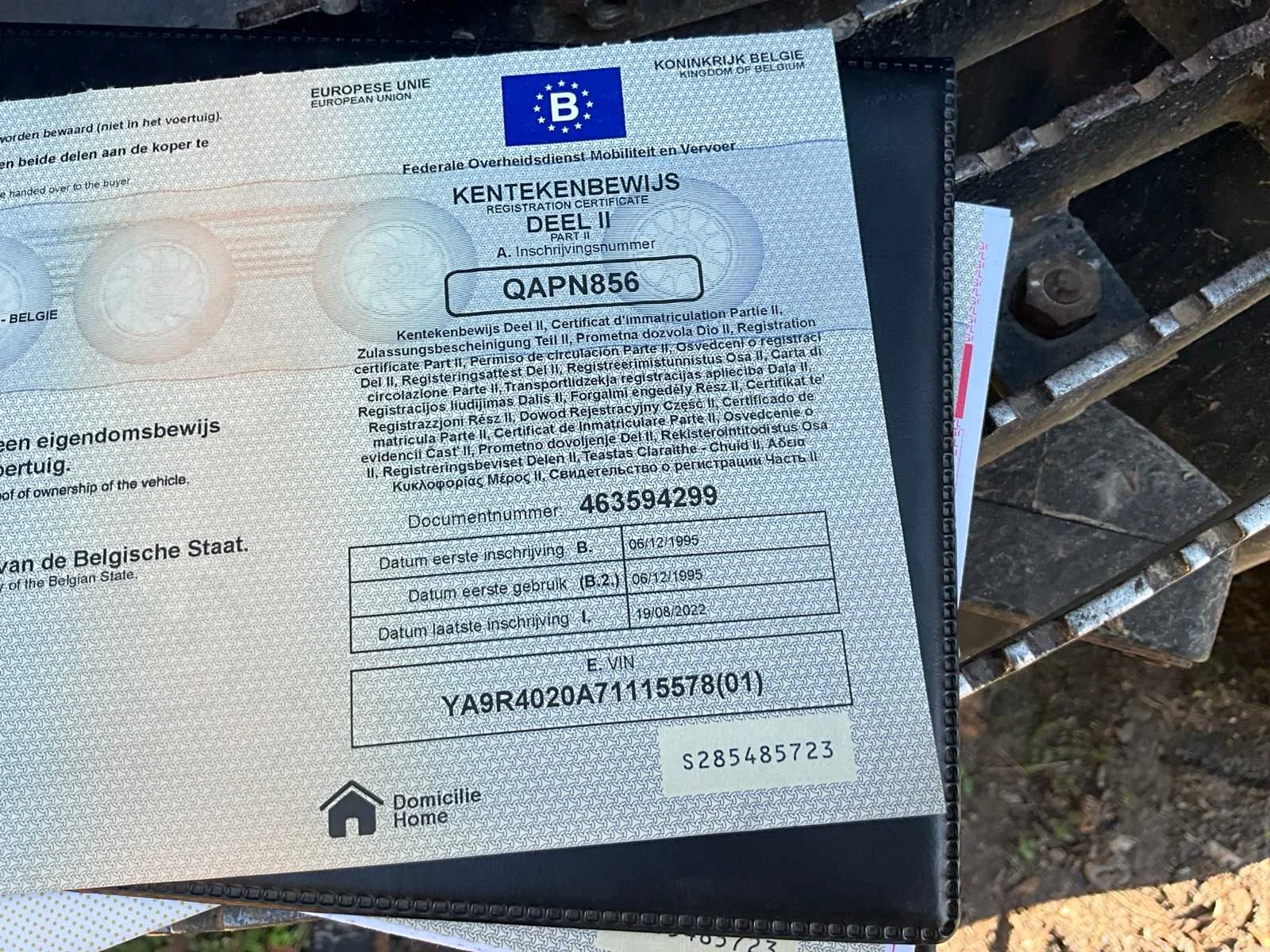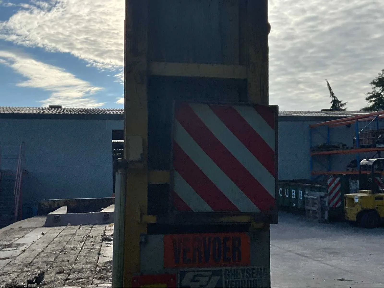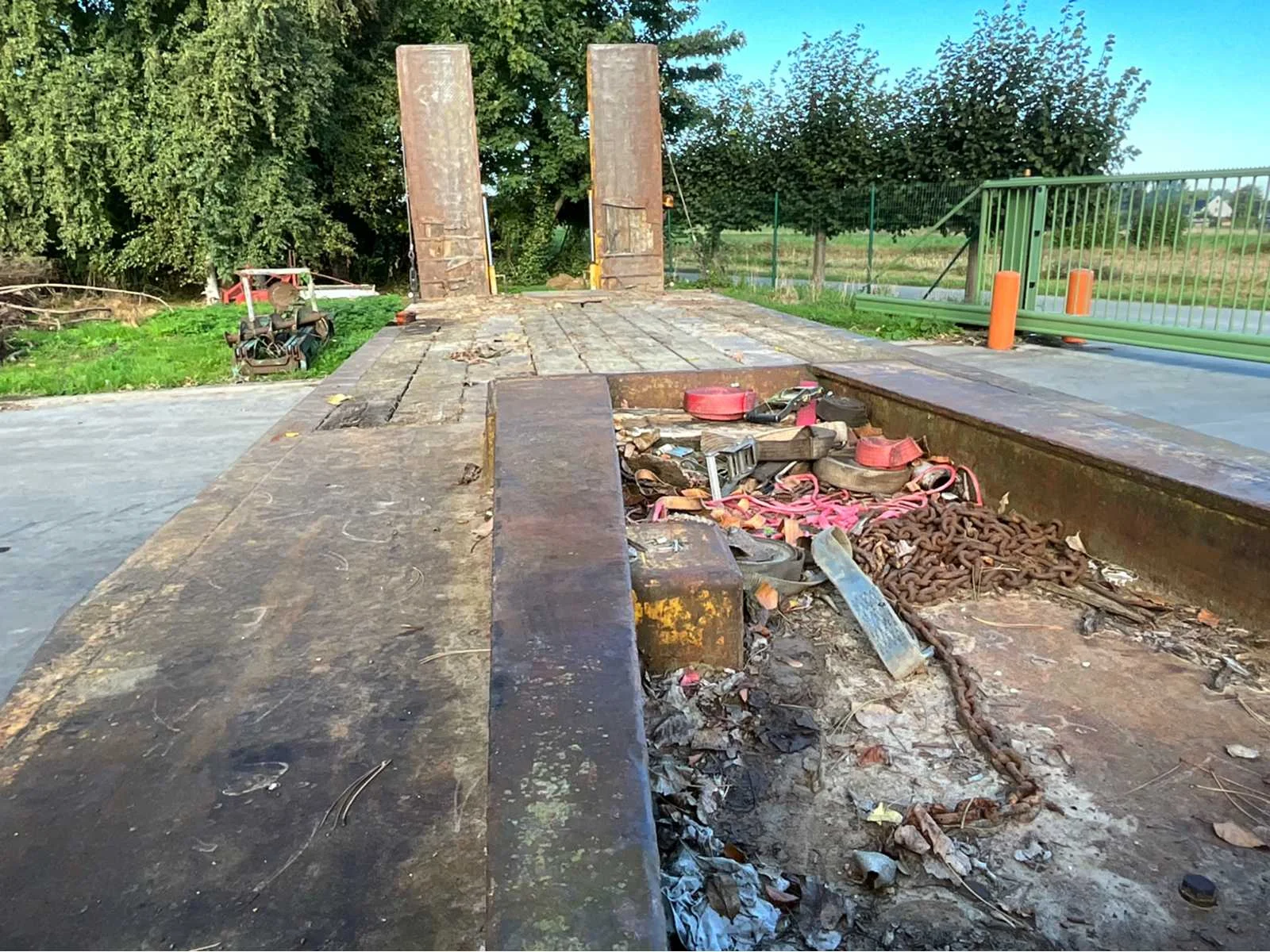 Algemene info dieplader Merk: Gheyssens & Verpoort Type: R 4020 A Model: Dieplader / oplegger Kenteken: QAPN856 Bouwjaar / datum eerste inschrijving: 06/12/1995 Chassisnummer (VIN): YA9R4020A71115578 Type aanhangwagencarrosserie: Dieplader (platte oplegger met oprijrampen) Aantal assen: 3 assen Kleur: Geel Technisch Eigen gewicht (massa in rijklare toestand): niet vermeld, maar geschat ± 9.000 – 10.000 kg Toelaatbaar totaalgewicht (MTM): 40.000 kg Laadvermogen: ± 30.000 – 31.000 kg (afhankelijk van leeggewicht) Aslasten (volgens plaatje): As 1: 10.000 kg As 2: 10.000 kg As 3: 20.000 kg Afmetingen (geschat, gezien de foto’s): Lengte: ± 12,00 m Breedte: ± 2,50 m Hoogte: ± 1,20 m (vloerhoogte, zonder lading) Specifiek APK vervaldatum: n.v.t. (België heeft geen APK-plicht voor opleggers, tenzij NL export). Zelf rijdend exporteren: Nee (oplegger, moet getrokken worden). Hydraulische laadklep: Nee, maar hydraulische oprijrampen aanwezig. Koeltrailer: Nee. Product type: Dieplader oplegger. GS Code (douane): 87163990 (andere aanhangwagens/opleggers voor goederenvervoer). Leveringsvoorwaarden: afhankelijk van verkoop (meestal ex-works). Belangrijk uit papieren Technisch toelaatbare maximummassa: 40.000 kg Nationaal toegelaten maximummassa: 40.000 kg Belgisch refnummer: 932134 Proces-verbaal van goedkeuring: 93/2134 Datum laatste inschrijving: 19/08/2022 Nee Merk: Gheyssens & Verpoort Type: R 4020 A Model: Dieplader / oplegger Bouwjaar: 1995 Chassisnummer: YA9R4020A71115578 Aantal assen: 3 Kleur: Geel Datum eerste toelating: 06/12/1995 GS Code: 87163990