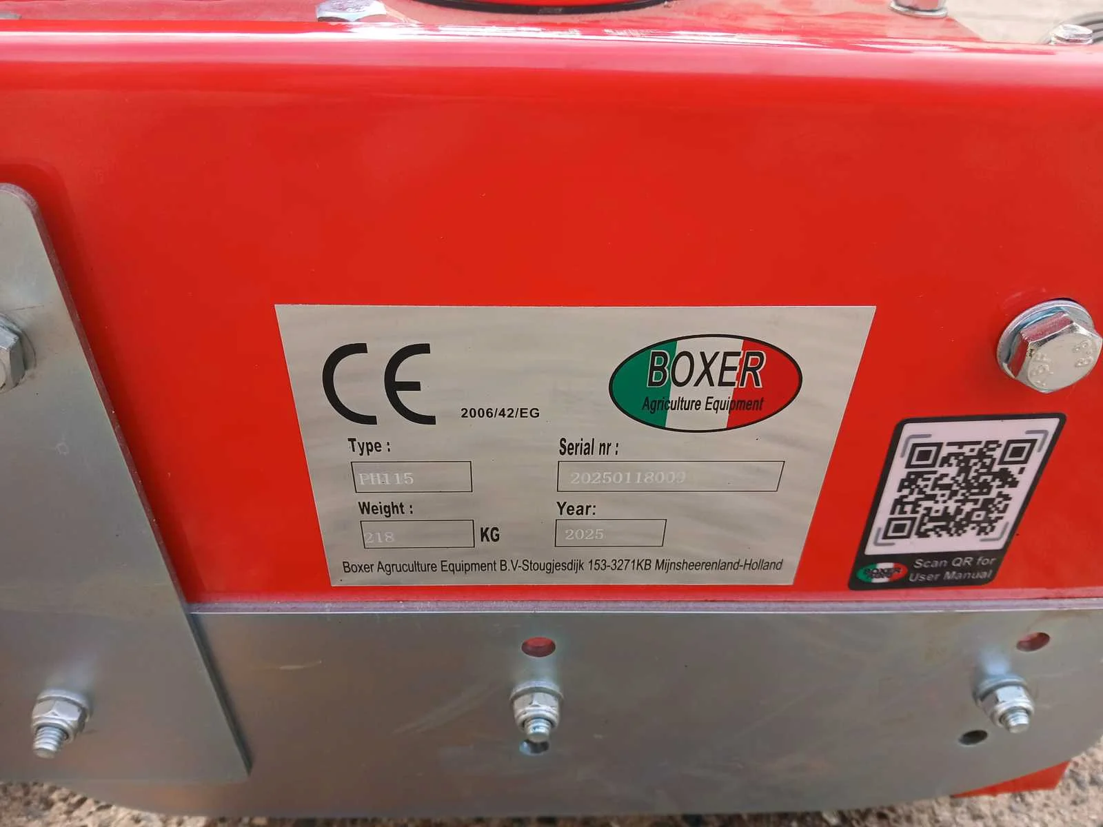 Verstelbare rasterrol, borstel op de rol, voor en achterverstelbare nivelleerplaat. Inclusief cardan met breekbout. Nee Merk: Boxer Type: PH115 Bouwjaar: 2025 Serienummer: 20250118009 Eigen gewicht: 218kg