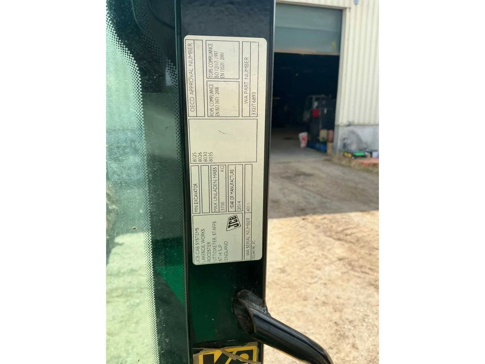 No Merk: JCB Type: 8035 Bouwjaar: 2014 Brandstof: Diesel Bedrijfsgewicht: 3687kg Afgelezen urenstand: 2675