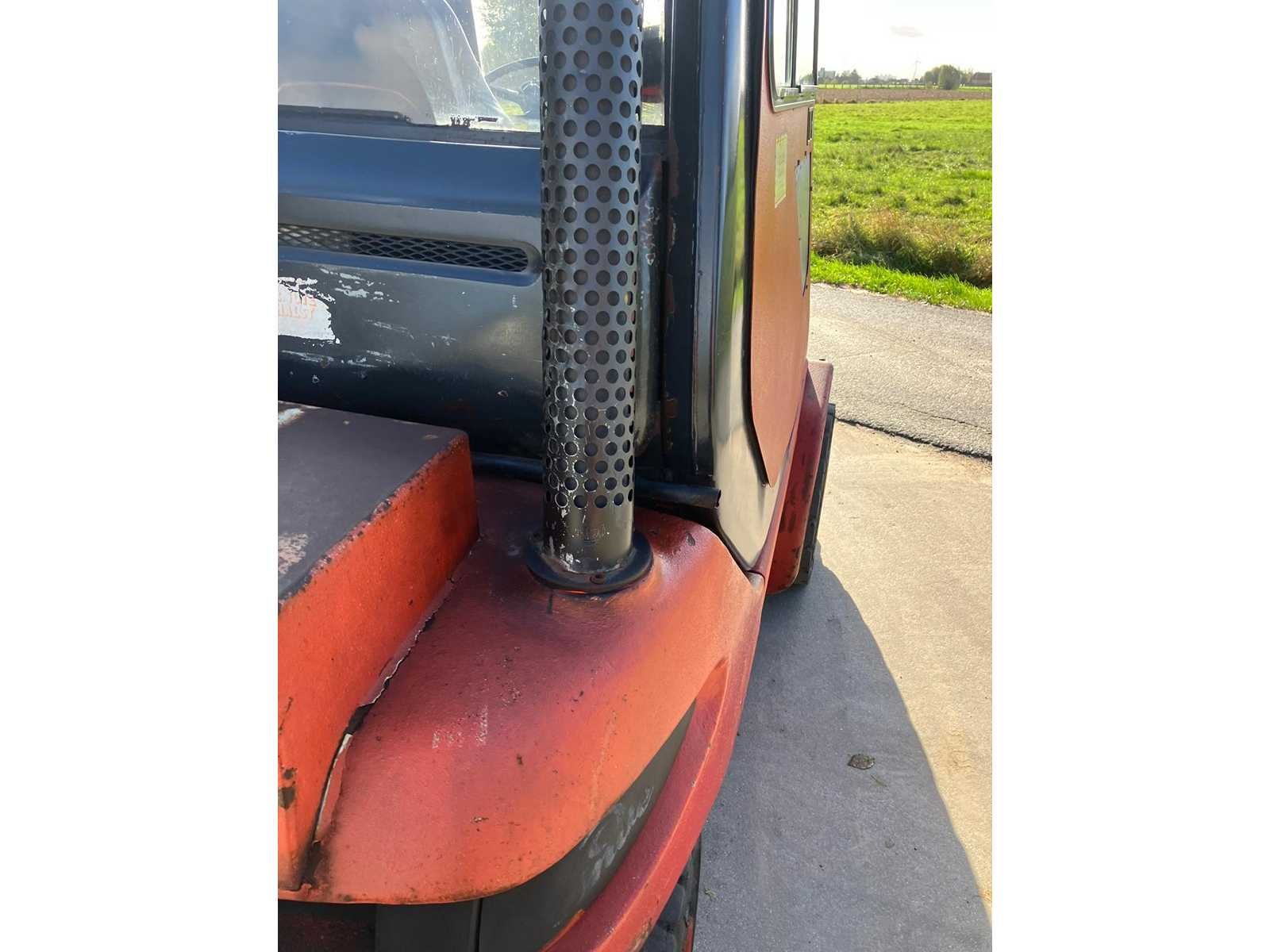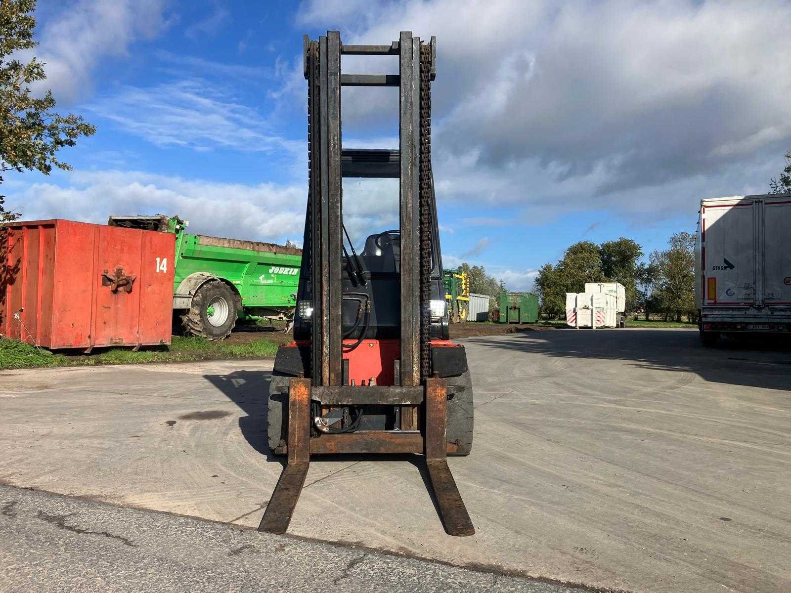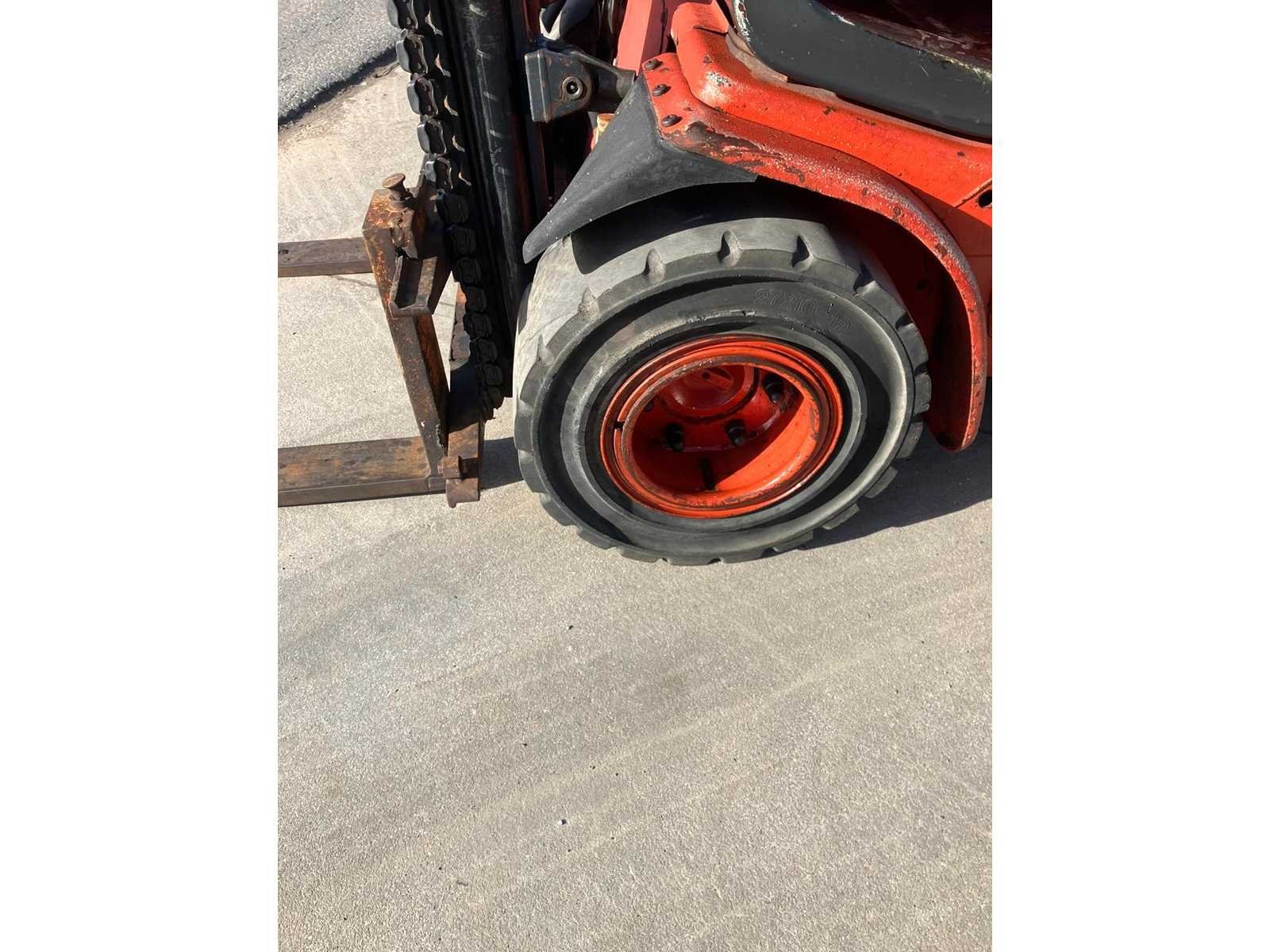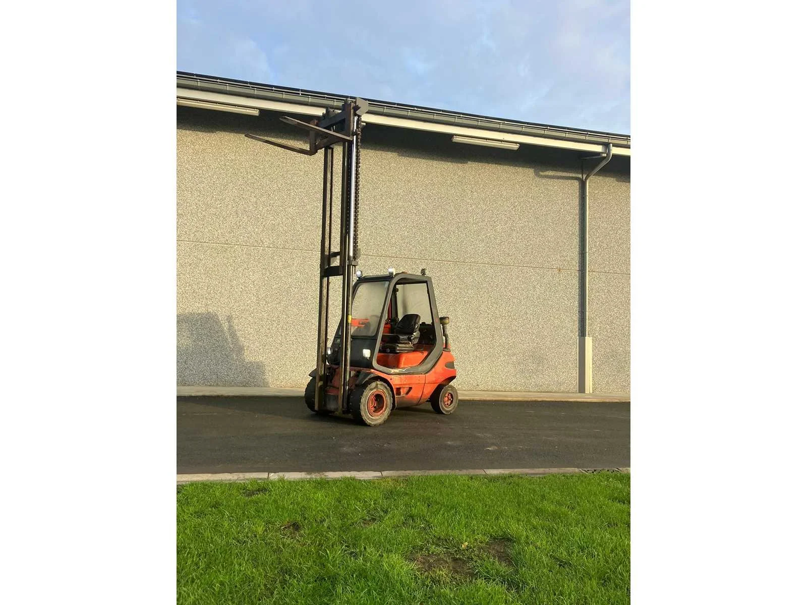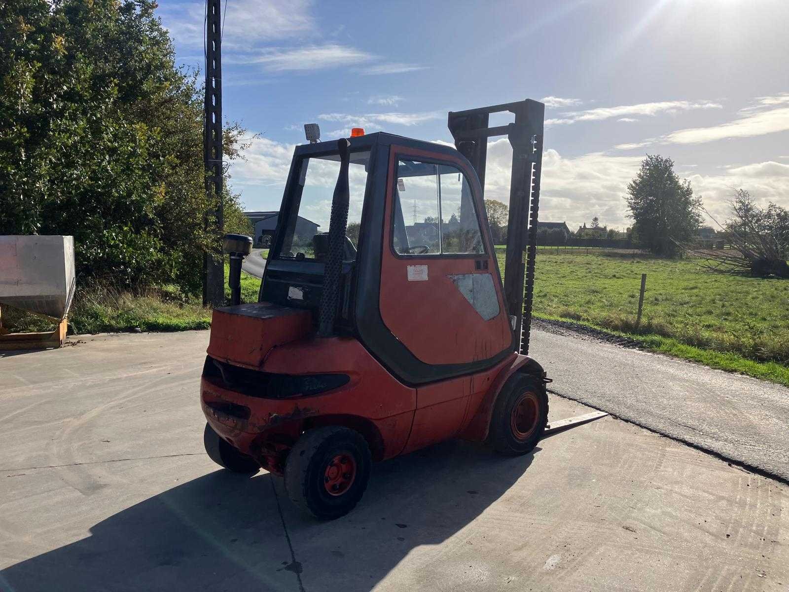 No Merk: Linde Type: H25D Bouwjaar: 1987 Serienummer: 351703032725 Mast: duplex Aantal wielen: 4 Afgelezen urenstand: 11060 Eigen gewicht: 4540kg Hefvermogen: 2500kg Lepellengte: 1200mm Max. hefhoogte: 4000mm Totale afmeting L: 2600mm Totale afmeting Breedte: 1150mm Totale afmeting Hoogte: 2500mm Diesel: true