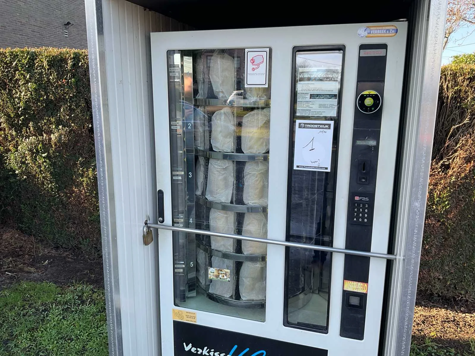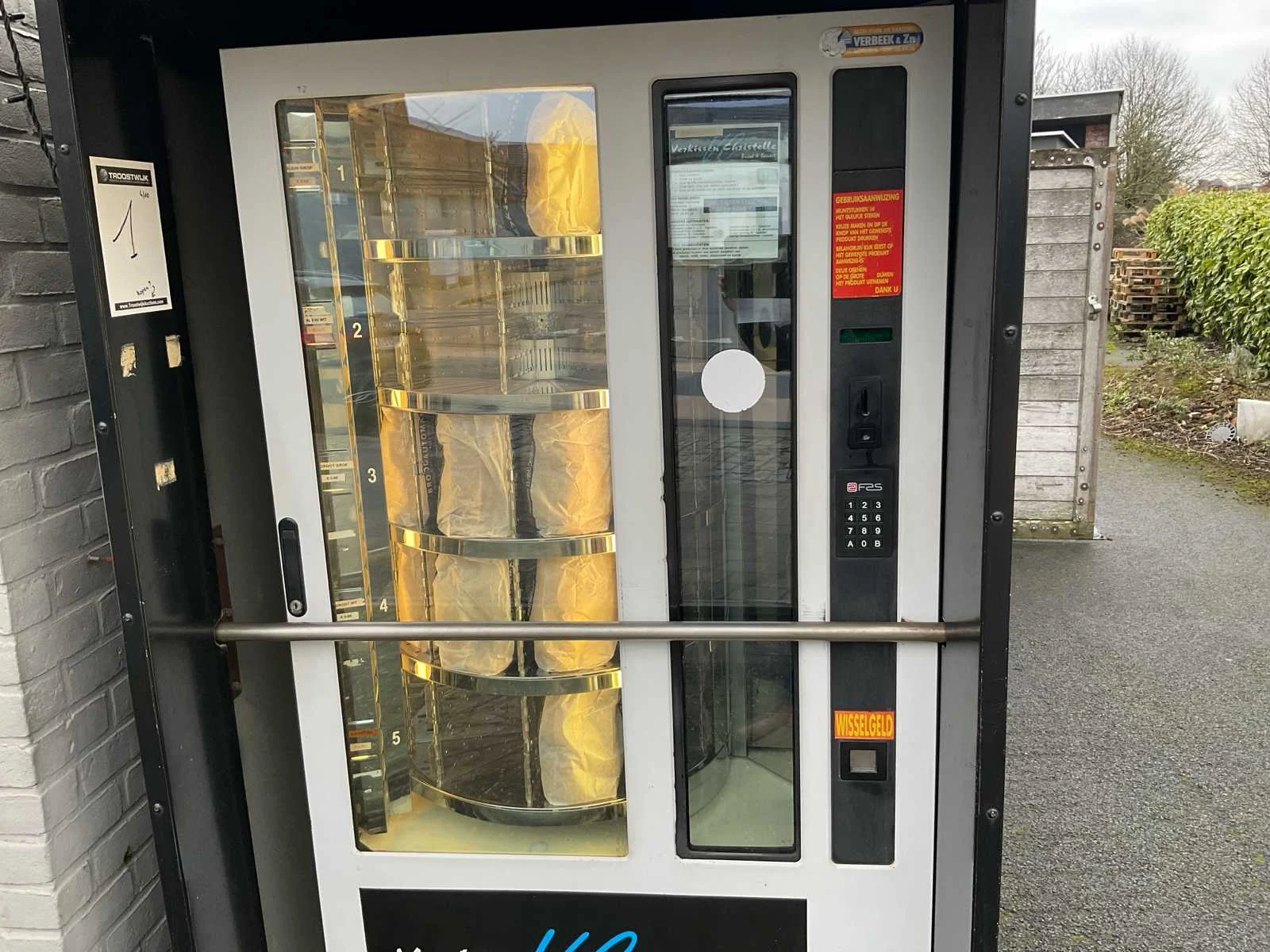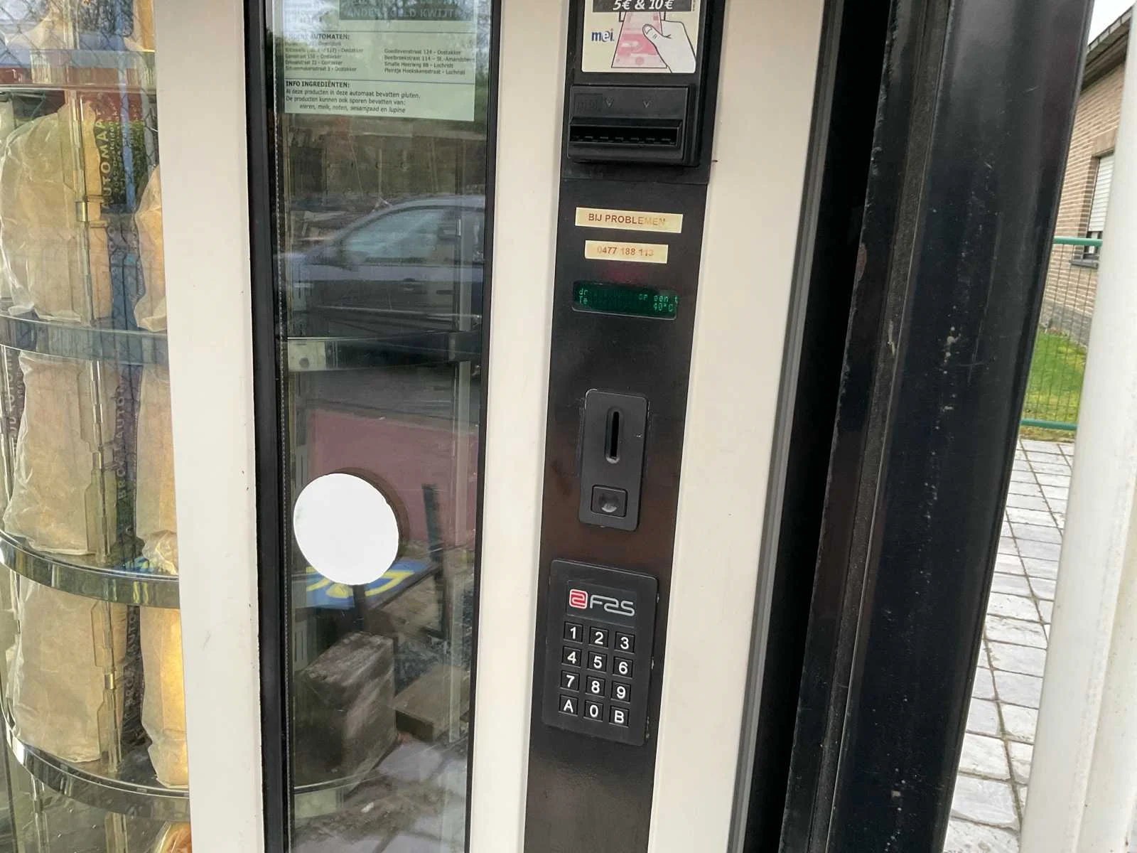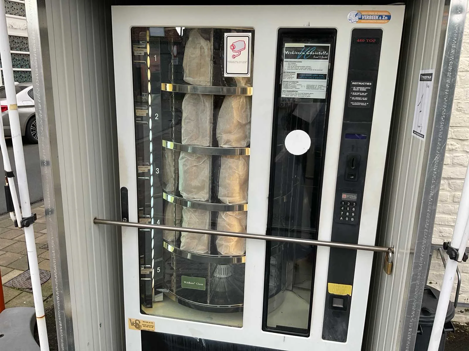 <li>Aansluiting: 230 V</li><li>Vermogen: 830 W</li><li>verkoopsysteem: FiFo</li><li>Capaciteit: 470 producten</li><li>Maximaal gewicht per plateau: 8 kg bij gelijkmatige verdeling</li><li>Koelsysteem: klasse N compressor met geventileerde evaporator, cyclische ontdooiing en 15 Bar maximale werkdruk Locaties: 1. Moleneinde 33 - 9042 Desteldonk: </li><li>afmeting metalen overkapping: 1020 x 1245 x 2150 mm</li><li>betaalmogelijkheden: Bancontact en pasmunt</li><li>airco 2. Wittewalle (naast nr. 117) - 9041 Oostakker: </li><li>afmeting betonplex overkapping: 1040 x 1245 x 2500 mm</li><li>betaalmogelijkheden: Enkel pasmunt 3. Drieselstraat 22 - 9041 Oostakker: </li><li>afmeting metalen overkapping: 1000 x 1245 x 2230 mm</li><li>betaalmogelijkheden: Pasmunt en biljetten 4. Gentstraat 150 - 9041 Oostakker: </li><li>afmeting metalen overkapping: 1010 x 1200 x 2060 mm</li><li>betaalmogelijkheden: Enkel pasmunt 5. Schoenmakersstraat 3 - 9041 Oostakker: </li><li>afmeting metalen overkapping: 1260 x 1180 x 2250 mm</li><li>betaalmogelijkheden: Enkel pasmunt</li><li>airco 6. Goedlevenstraat 124 - 9041 Oostakker: </li><li>afmeting betonplex overkapping: 1040 x 1245 x 2500 mm</li><li>betaalmogelijkheden: Pasmunt en biljetten</li><li>airco 7. Beelbroekstraat 115 - 9040 Sint-Amandsberg: </li><li>afmeting betonplex overkapping: 1040 x 2510 x 2500 mm Automaat 1: </li><li>betaalmogelijkheden: Pasmunt en Bancontact</li><li>airco Automaat 2: </li><li>betaalmogelijkheden: Pasmunt en biljetten</li><li>airco 8. Smalle Heerweg 88 - 9080 Lochristi: </li><li>afmeting metalen overkapping: 1210 x 1180 x 2300 mm</li><li>betaalmogelijkheden: Enkel pasmunt 9. Kruispunt Dorpstraat en Hoekskensstraat - 9080 Lochristi: </li><li>afmeting metalen overkapping: 1020 x 1245 x 2150 mm</li><li>betaalmogelijkheden: Pasmunt en Bancontact</li><li>airco</li> Nee Merk: FAS Product type: 480/10 TOP Gewicht: 275kg Lengte: 76cm Breedte: 104cm Hoogte: 183cm