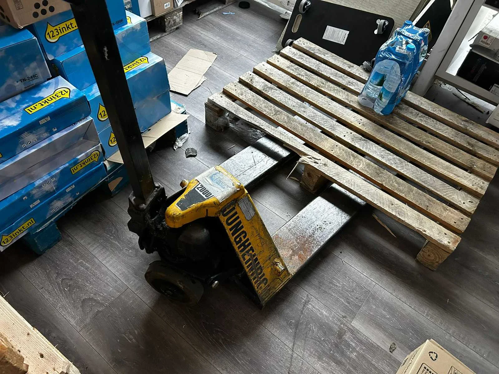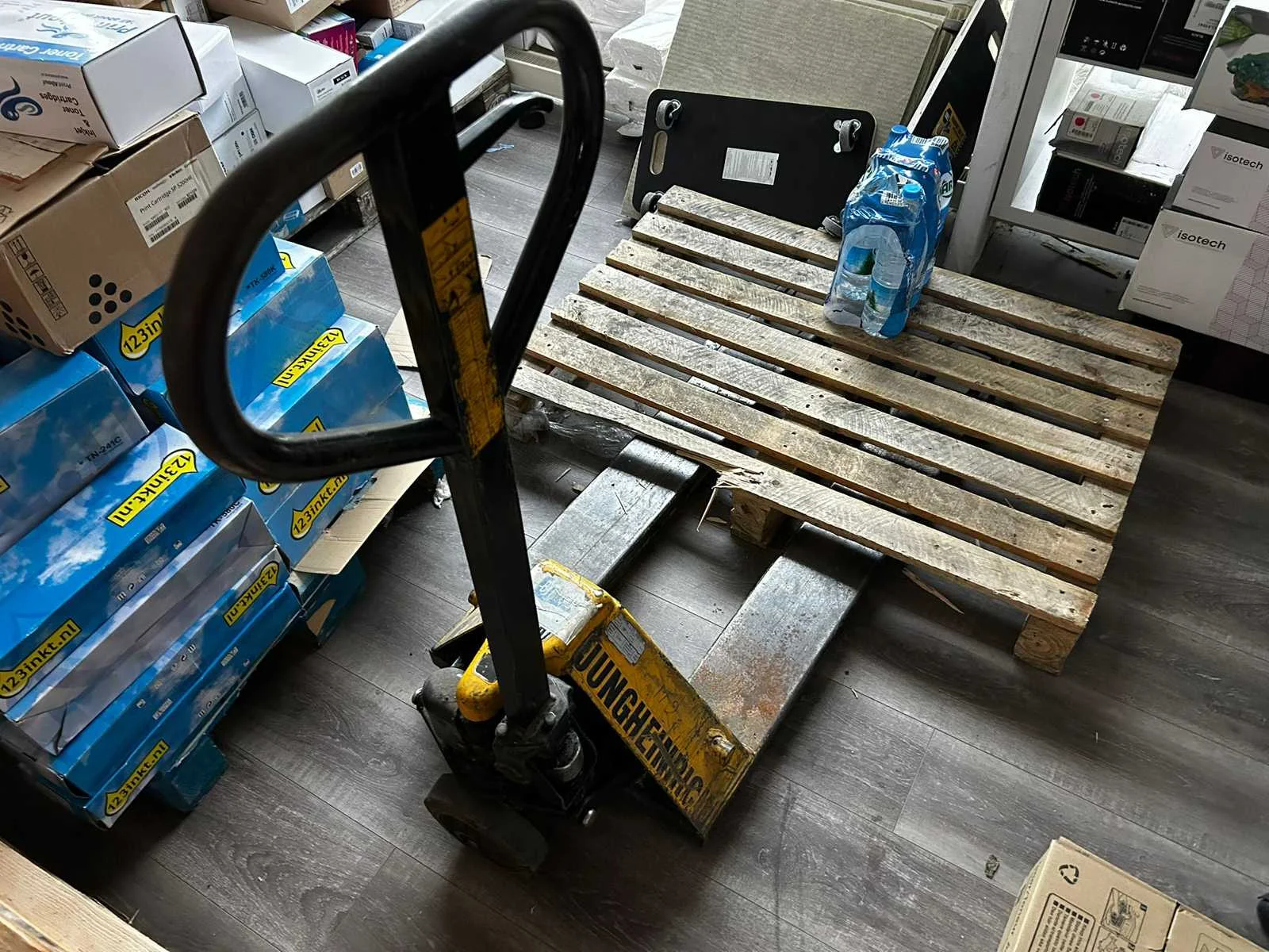 Heli transpallet: 1 van de 2 grote wielen ontbreekt. Jungheinrich transpallet: compleet. Werking onbekend. Nee Merk: Heli - Jungheinrich