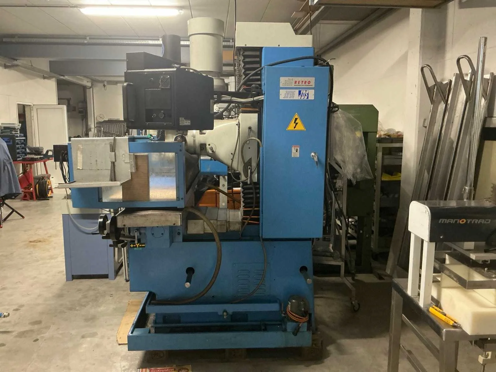 Nee Merk: Retro Type: DPM750 Serienummer: 220312 Verplaatsing x-as: 750mm Verplaatsing y-as: 400mm Verplaatsing z-as: 600mm Tafel afmeting l: 1270mm Tafel afmeting b: 320mm CNC-besturing, merk, type: ProtoTrak Motorvermogen (kW): 5.5kW Machinegewicht: 2100kg Afmeting l: 1800mm Afmeting b: 1650mm Afmeting h: 21400mm