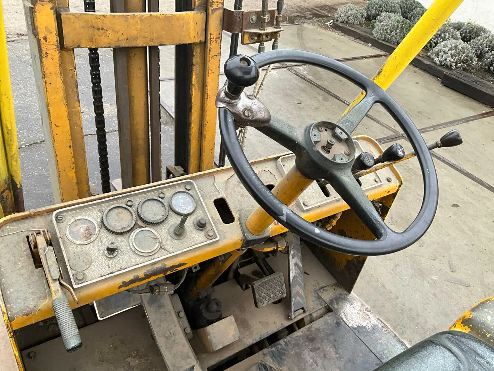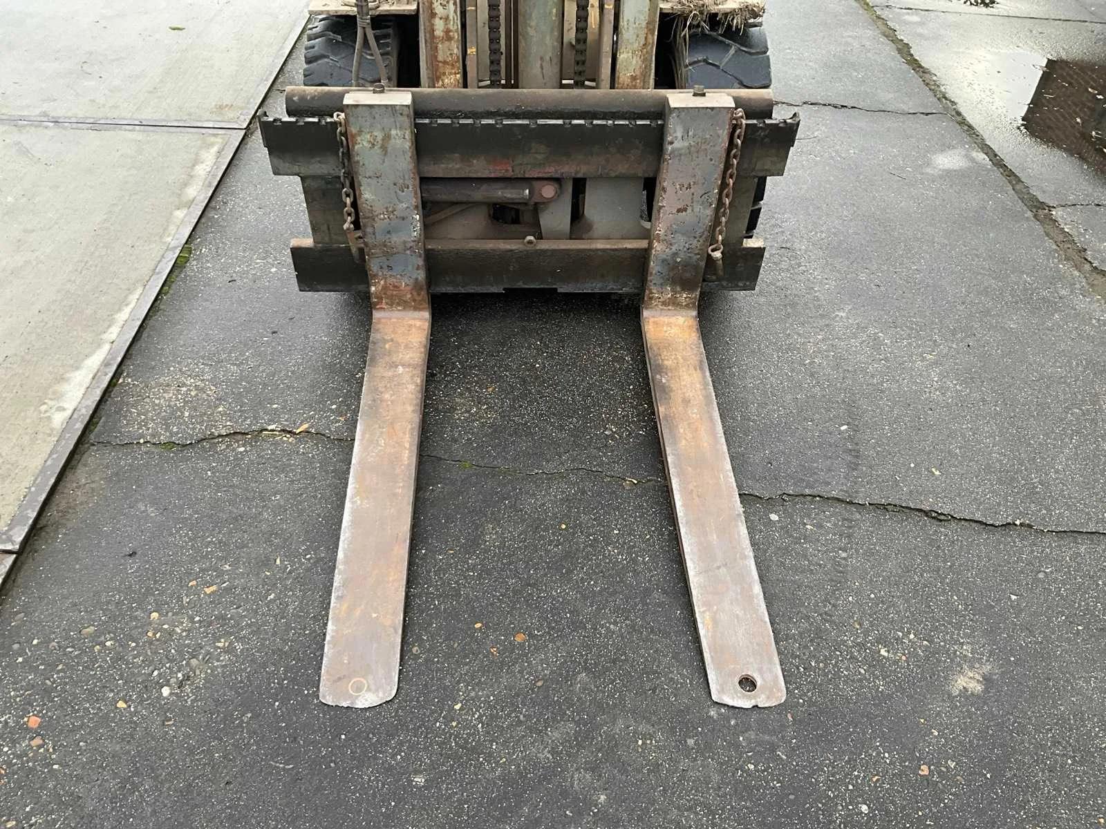 Batterij na te kijken Nee Merk: Caterpillar Type: V60B Brandstof: Diesel Afgelezen urenstand: 2310 Side-shift: true Duplex mast: true Eigen gewicht: 4370kg Hefvermogen: 3000kg Max. hefhoogte: 3300mm Luchtbanden: true Diesel: true