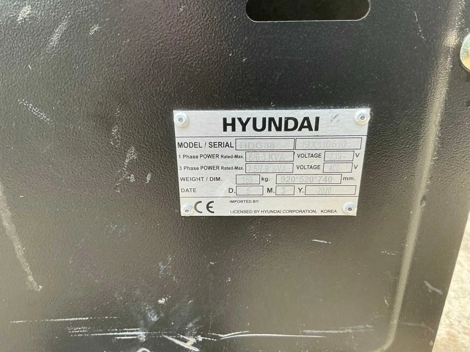 Hyundai hdg88 generatorset