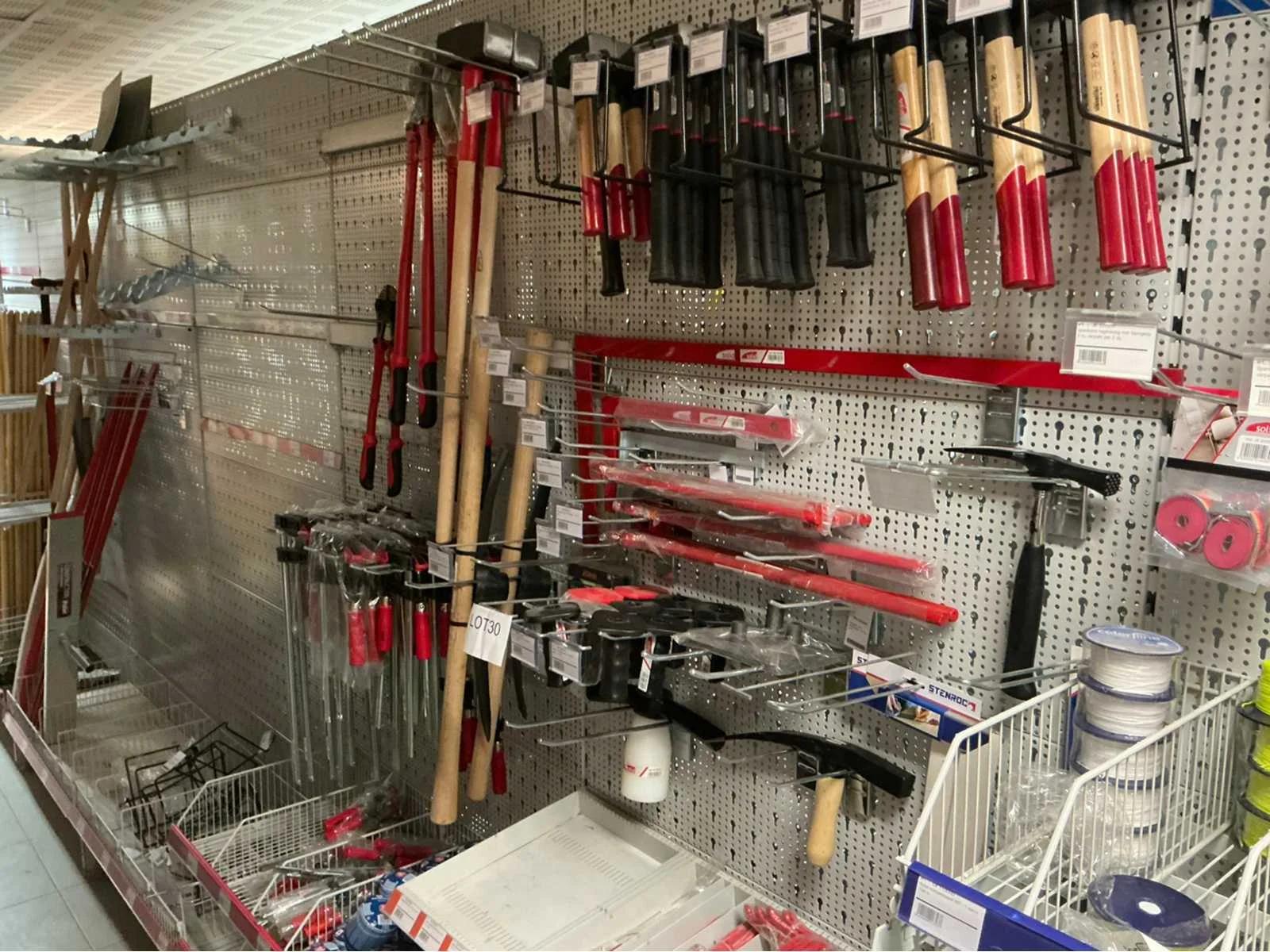 Partij bevestigingsmateriaal, winkelhaken, beitels,hamers en lijmtang