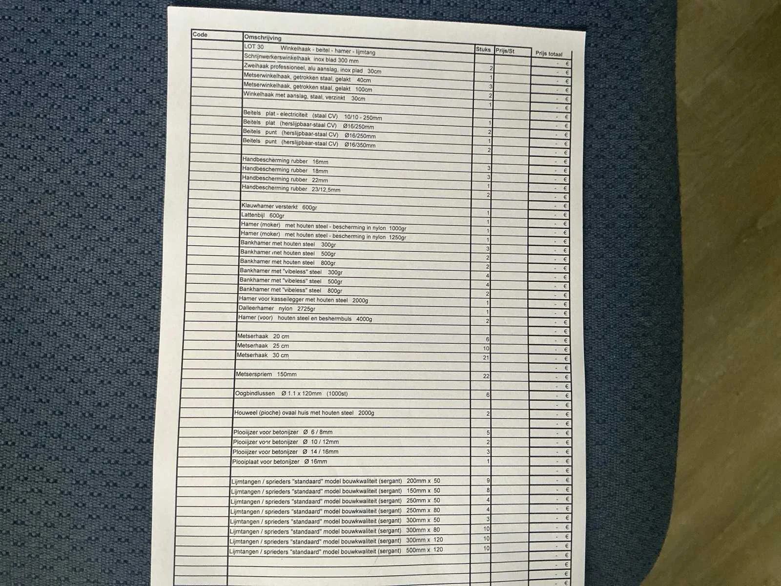 Omschrijving zie bijgevoegde foto, alles is nieuw. Nee