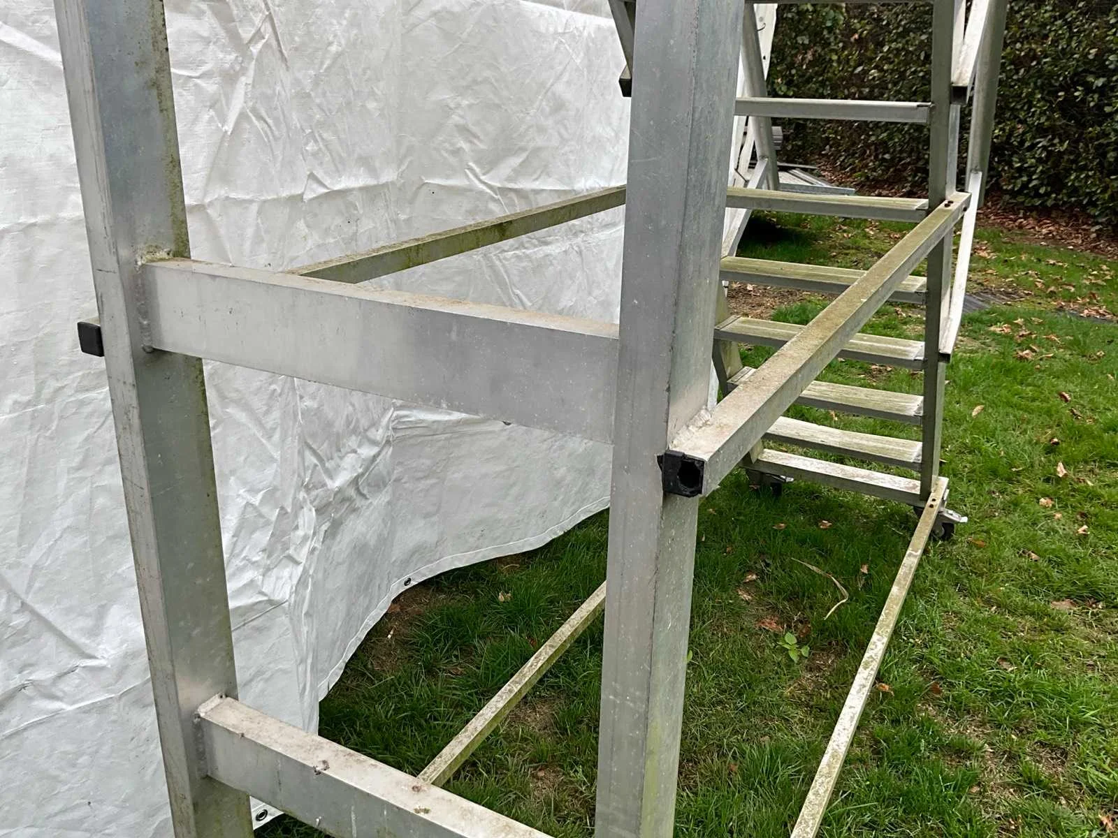 Totale hoogte 330cm - hoogte tot onderkant plateau 225cm - diepte 230cm - breedte 64cm - is demonteerbaar in enkele stukken Nee Aluminium: true Totale afmeting Breedte: 640mm