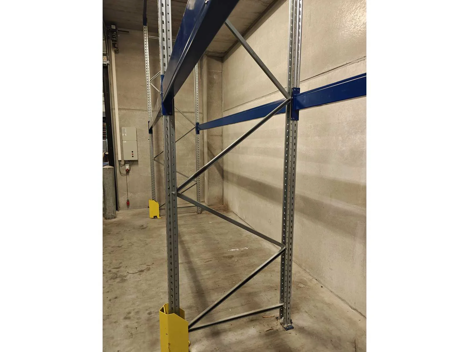 Set bestaande uit een compleet industrieel palletrek, gedemonteerd en in goede algemene staat. Gegalvaniseerde metalen structuur met blauw geverfde dwarsbalken en gele beschermende schoenen. Geschikt voor de opslag van pallets, kratten of apparatuur in magazijnen. Gegalvaniseerde structuur met blauwe dwarsbalken Beschermende schoenen inbegrepen Snap-in montagesysteem Enkele gebruikssporen en lichte sporen van corrosie Conditie: Goede algehele staat, gedemonteerd en klaar voor afvoer. Non Merk: Shaffer Totale afmeting Breedte: 800cm Totale afmeting Hoogte: 400cm Breedte: 100cm