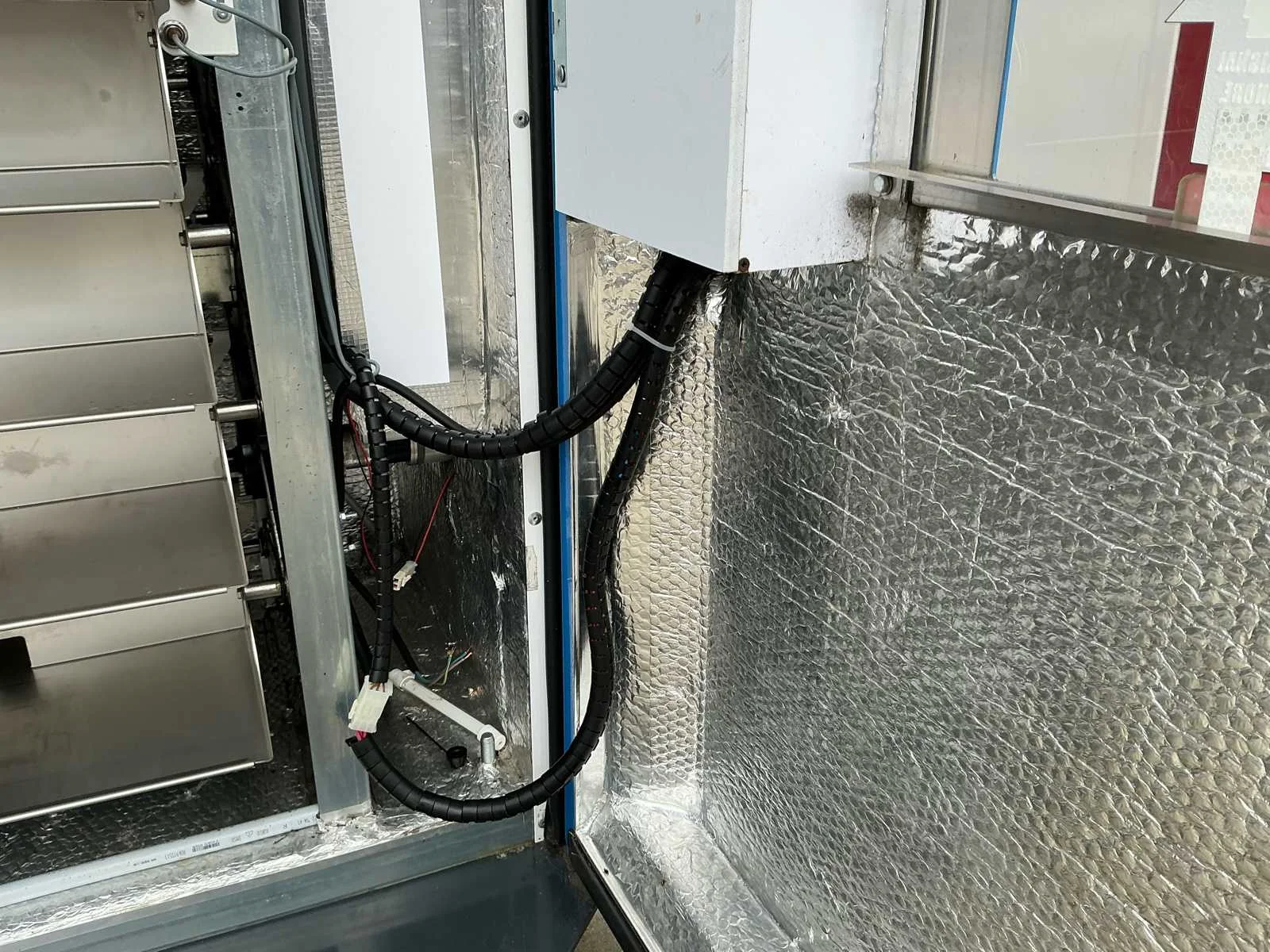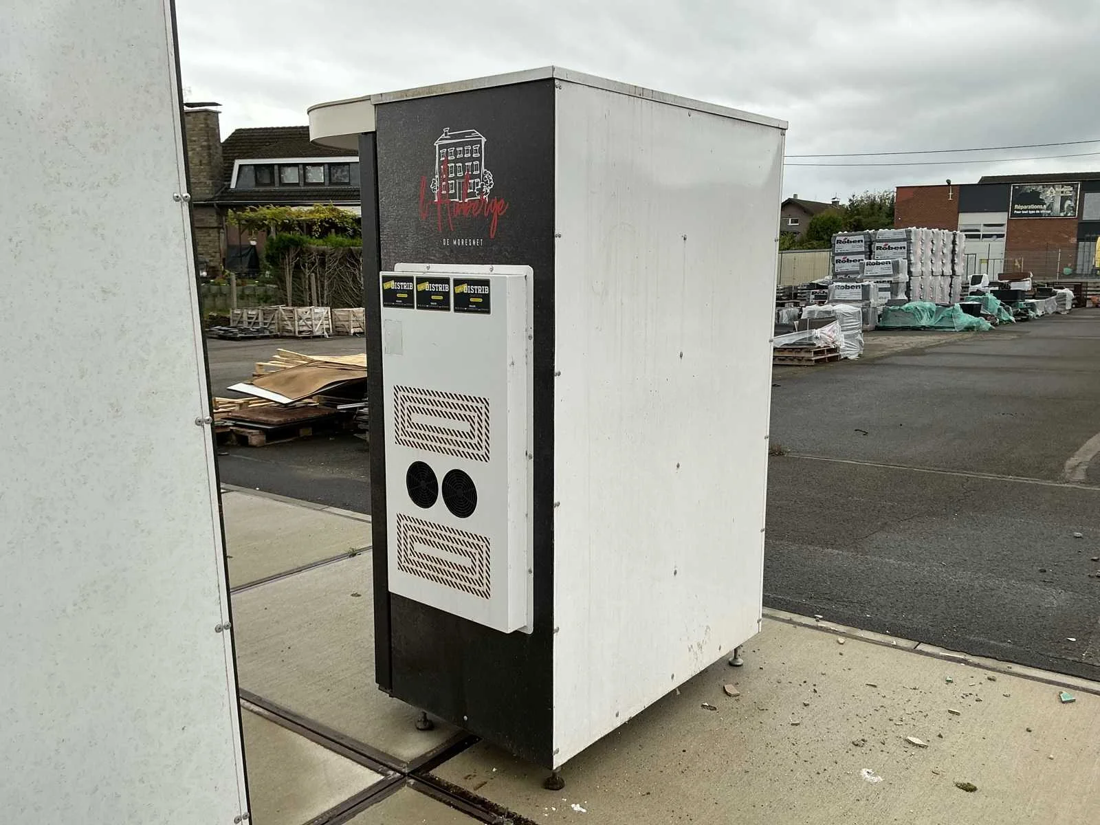 Deze volledig functionerende automatische verkoopsautomaat verkeert in goede staat en is klaar voor direct gebruik. Dankzij het robuuste ontwerp en slimme technische features is dit de ideale oplossing voor het 24/7 aanbieden van gekoelde producten op een gebruiksvriendelijke manier. Technische Specificaties: • Compact en efficiënt: Met een oppervlakte van slechts 1,25 m² is de automaat ruimtebesparend en geschikt voor zowel binnen- als buitenlocaties. • Koelfunctie: Ingebouwd koelsysteem voor het vers houden van dranken, snacks of andere producten. • Capaciteit: Uitgerust met 40 schuiven, aangestuurd door een betrouwbaar mechanisch kettingsysteem, wat zorgt voor een soepele en stabiele productuitgave. • Slimme opvolging: Voorraad- en verkoopcijfers zijn in real-time op te volgen via GSM, waardoor je altijd inzicht hebt in prestaties en bijvulbehoefte. No Merk: Le Distrib Type: Traiteur Bouwjaar: 2022