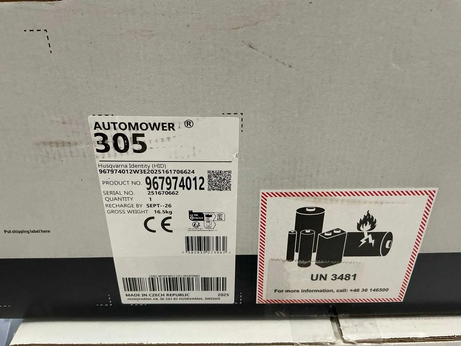 Husqvarna 305 robotmaaier met oplaadstation Nee Merk: Husqvarna Type: 305M Bouwjaar: 2025 Zelfrijdend: true Elektrisch aangedreven: true Eigen gewicht: 16.5kg