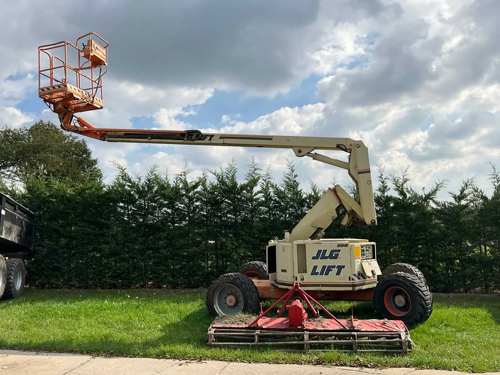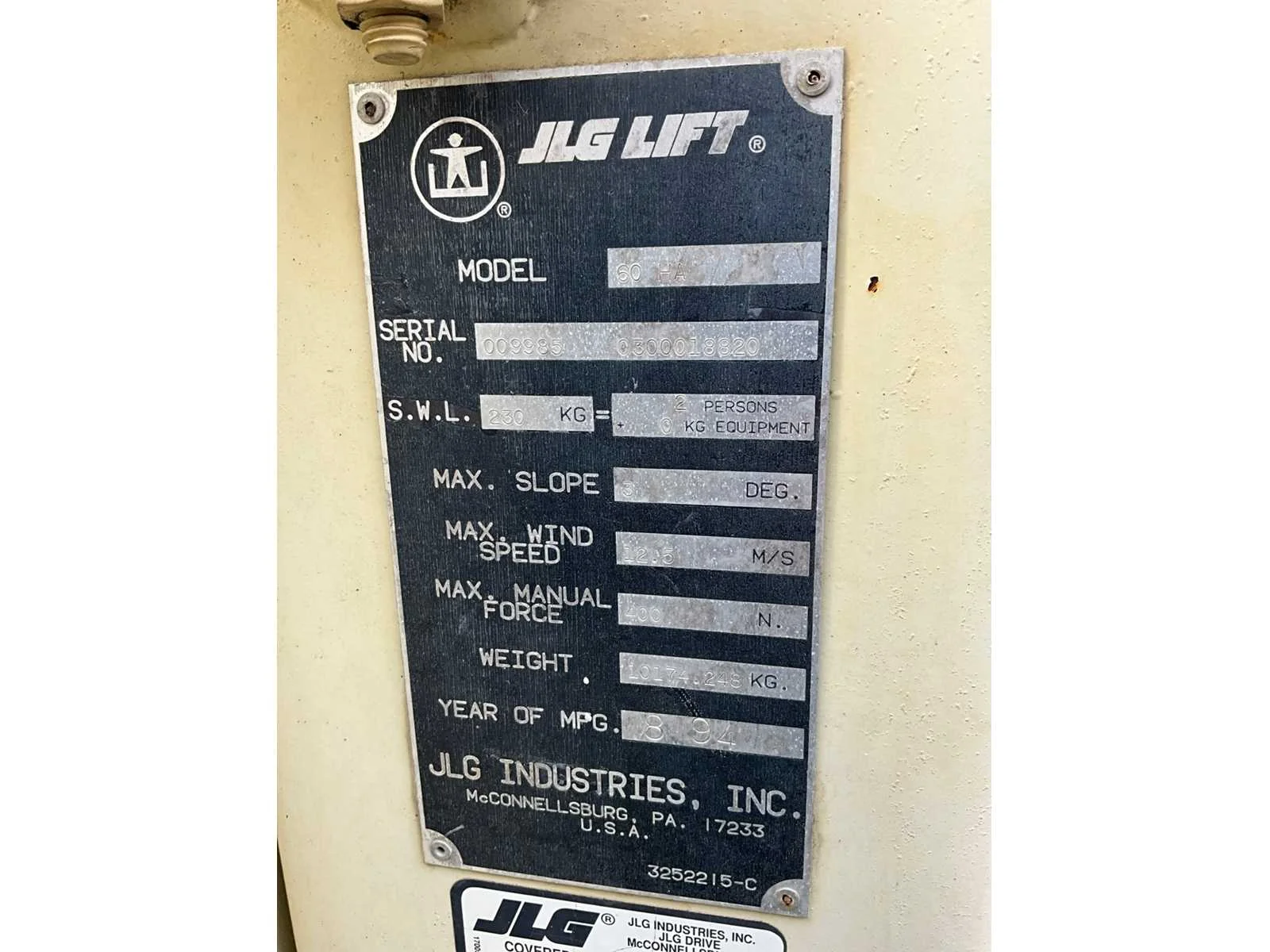 Voorzien van 4WD, 4WS, deutz dieselmotor, 4x vol rubber gespoten wielen, sleutel aanwezig Nee Merk: JLG Type: 60HA Serienummer: 009985 Diesel: true Knikarm hoogwerker: true Werkhoogte: 20000mm Horizontale rijkwijdte: 10000mm Plateau afm. l: 700mm Plateau afm. b: 1500mm Platform capaciteit: 230kg Afgelezen urenstand: 5681 Eigen gewicht: 10174kg Totale afmeting L: 8000mm Totale afmeting Breedte: 2500mm Totale afmeting Hoogte: 2500mm