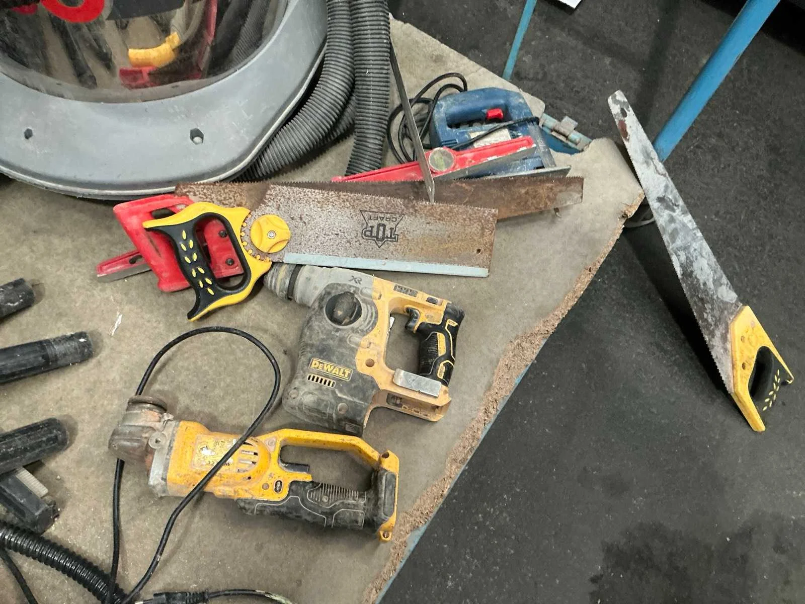 Waaronder: handzagen, Dewalt accu boormachine ( werking niet gekend), decoupeerzaag, waterpas Nee