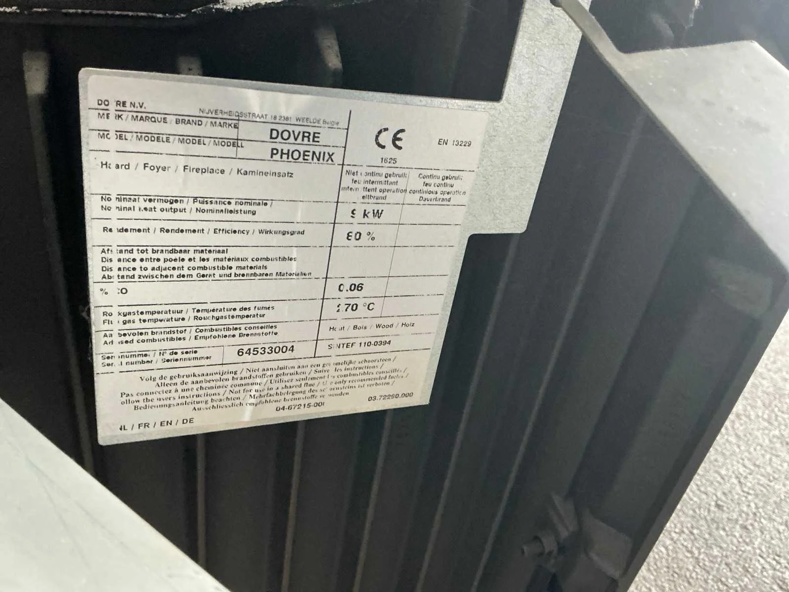 Nee Merk: Dovre Type: Phoenix Bovenaansluiting: true Vermogen: 9kW Totale afmeting lxbxh: 400x730x530mm Inbouw: true