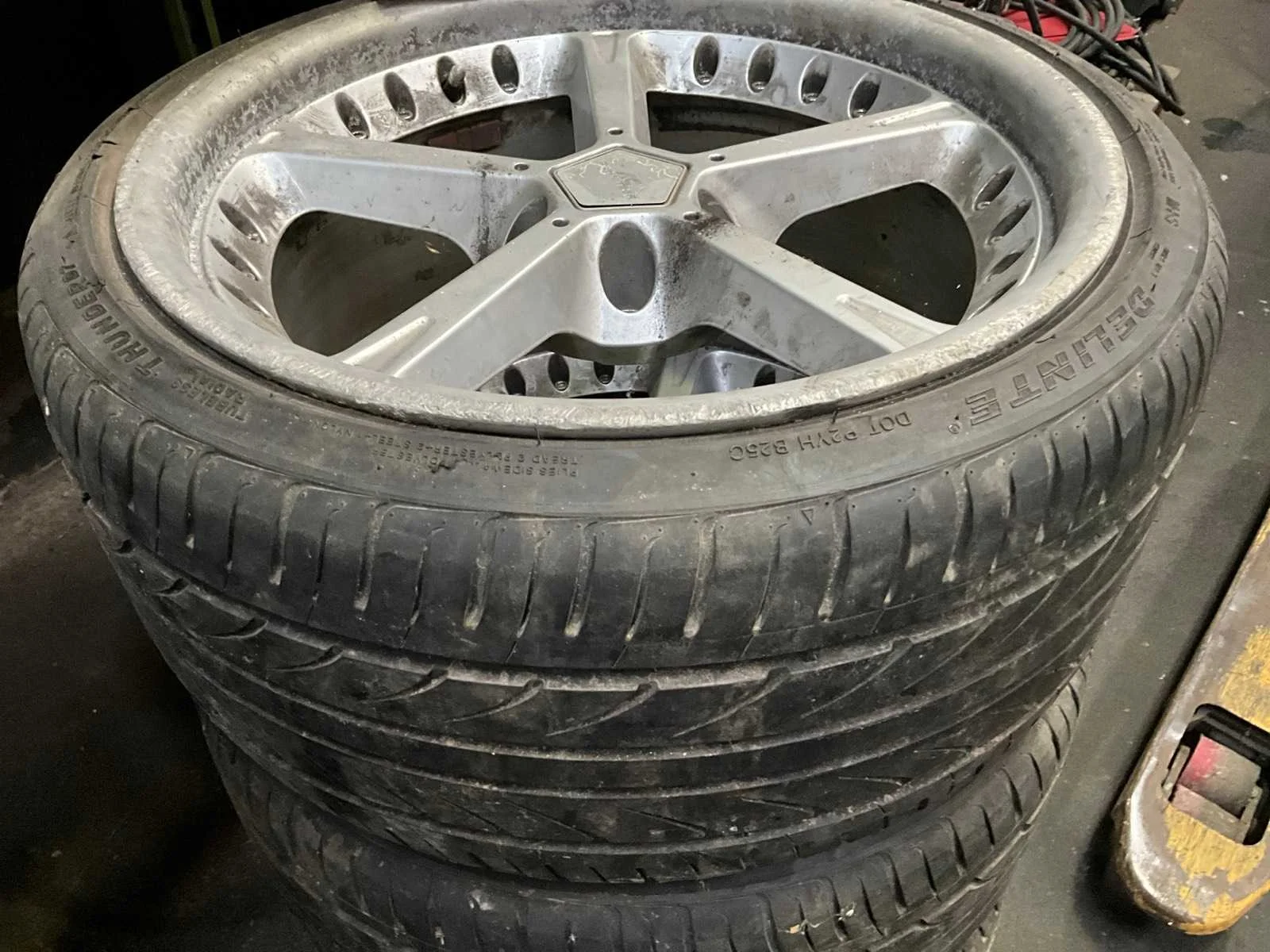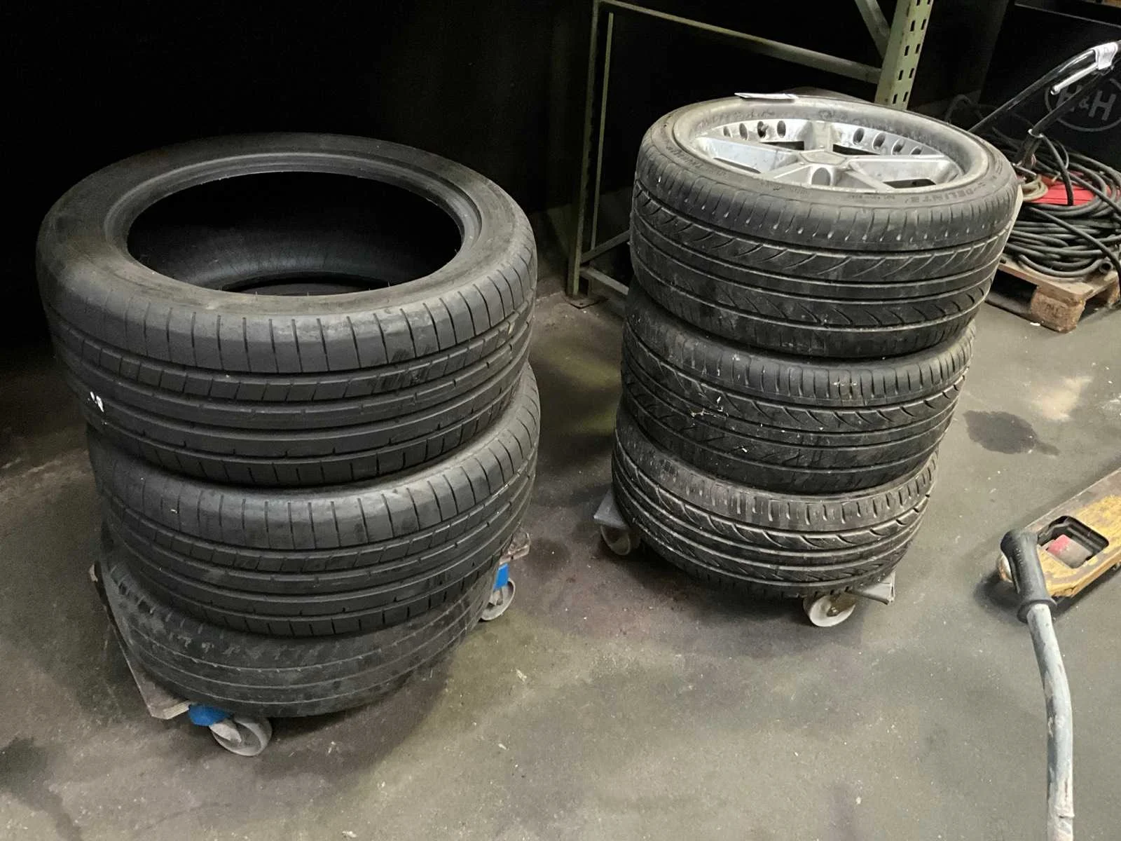 Bestaand uit 2x Dunlop Sport Max 255/45ZR18 + 3x band op lichtmetalen velg Delinte Thunder 225/30ZR19 +1x band op velg, ZONDER transport karretjes Nee