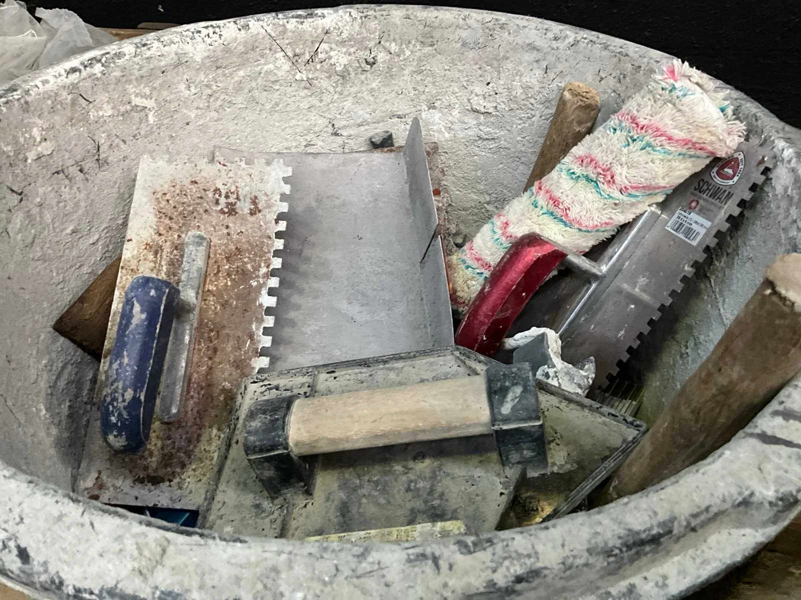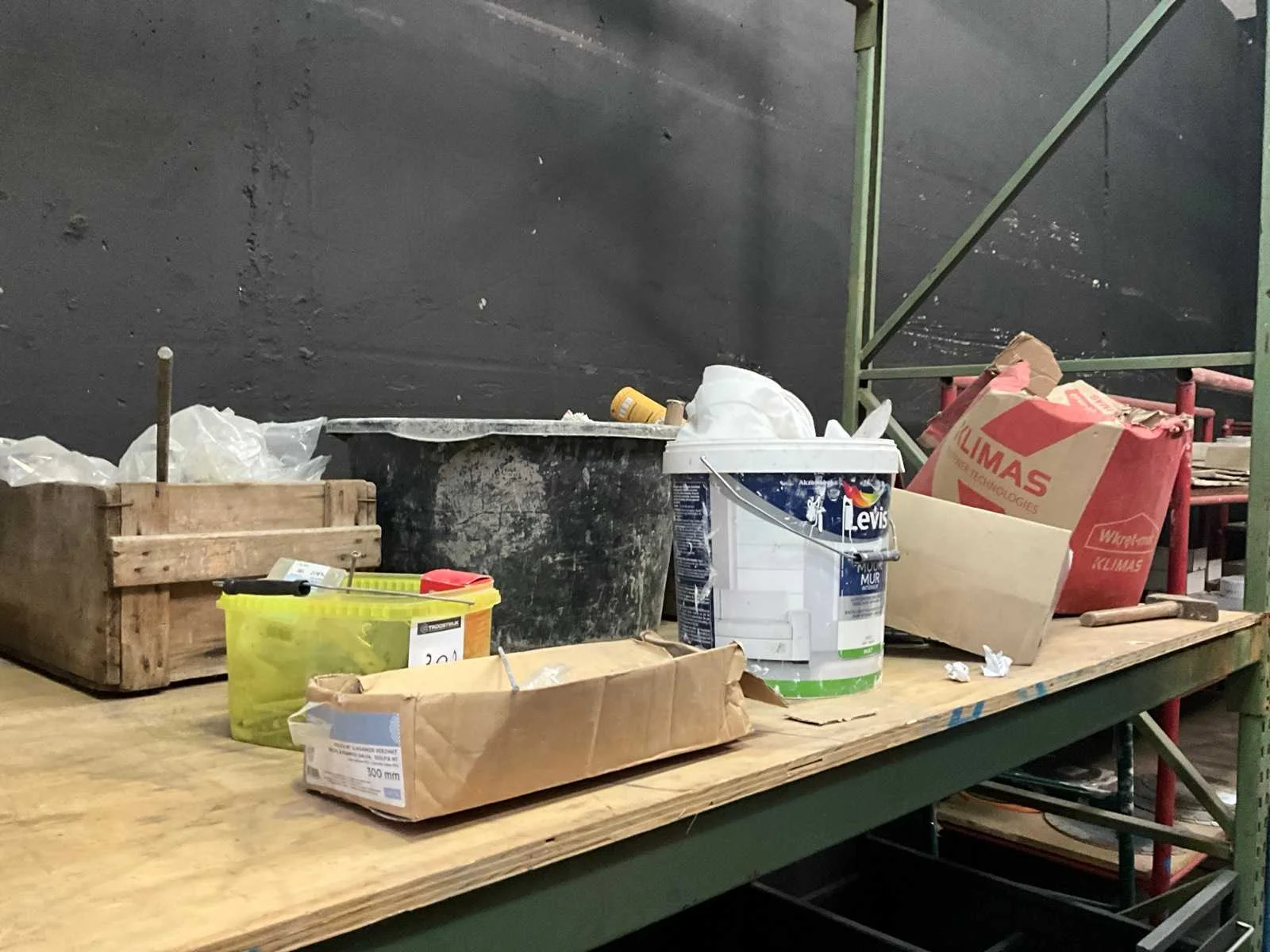 Bestaand uit slagpluggen, vijzen, isolfix slag ankers, moortelkuip met inhoud metsers gereedschap enz.. Nee