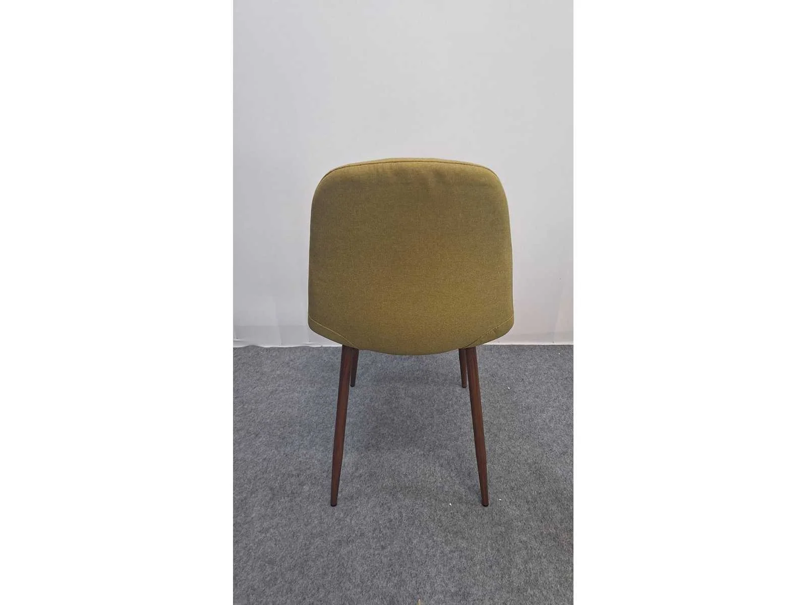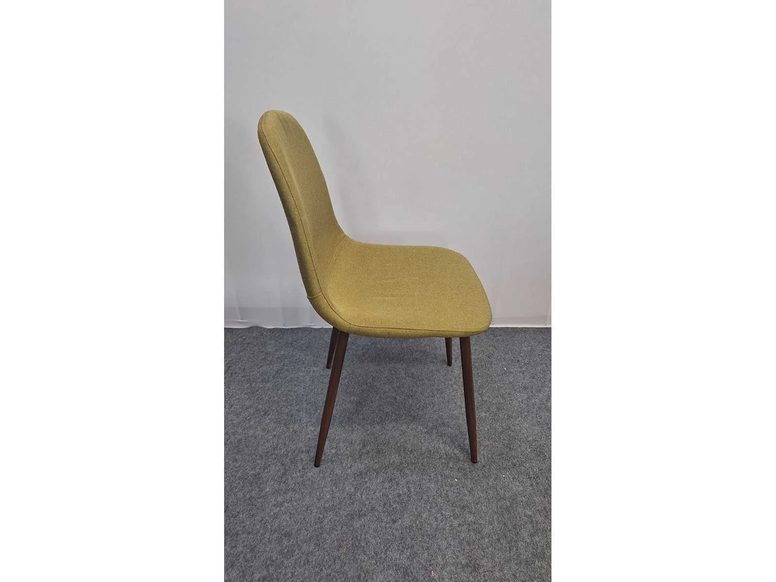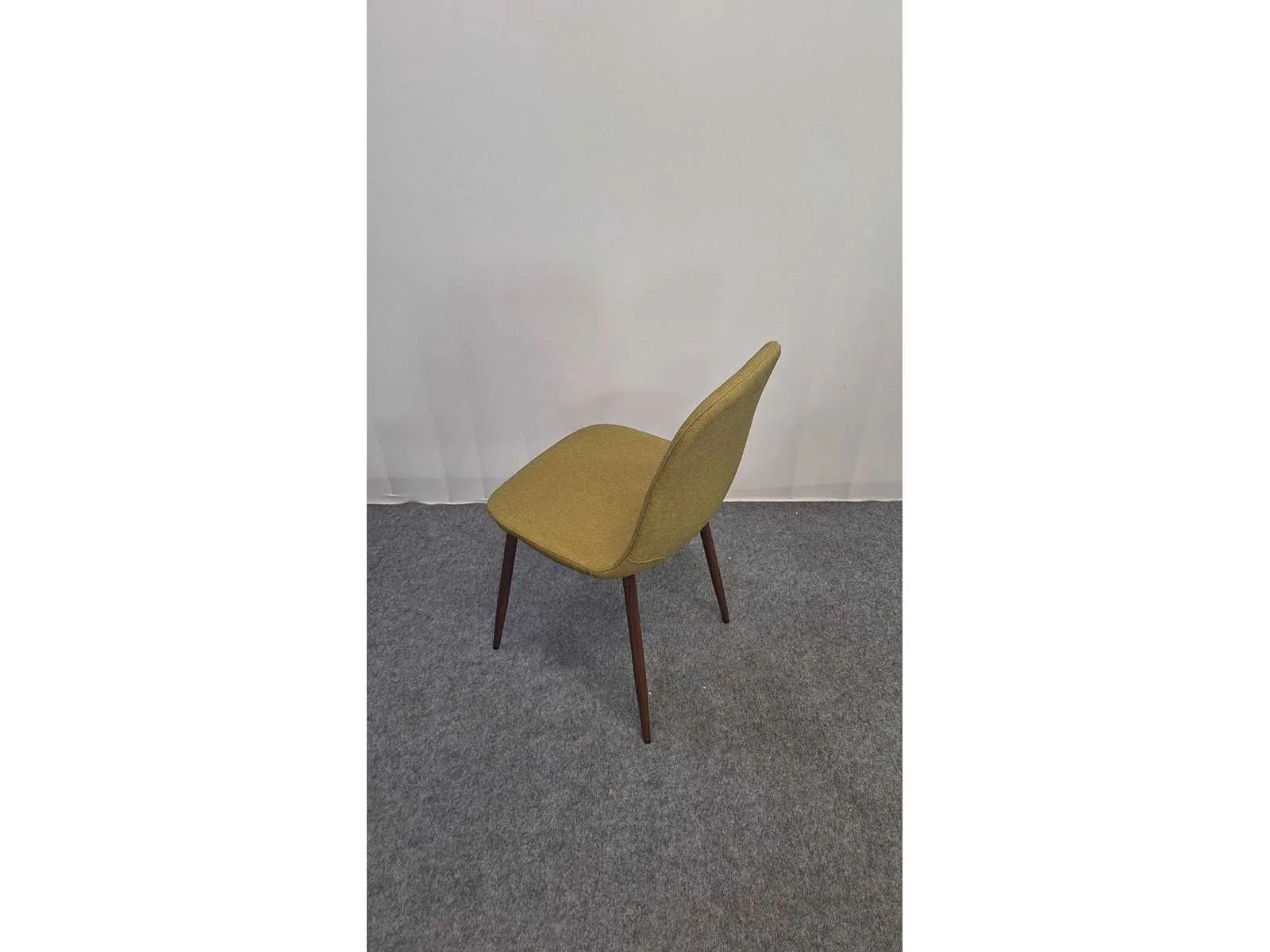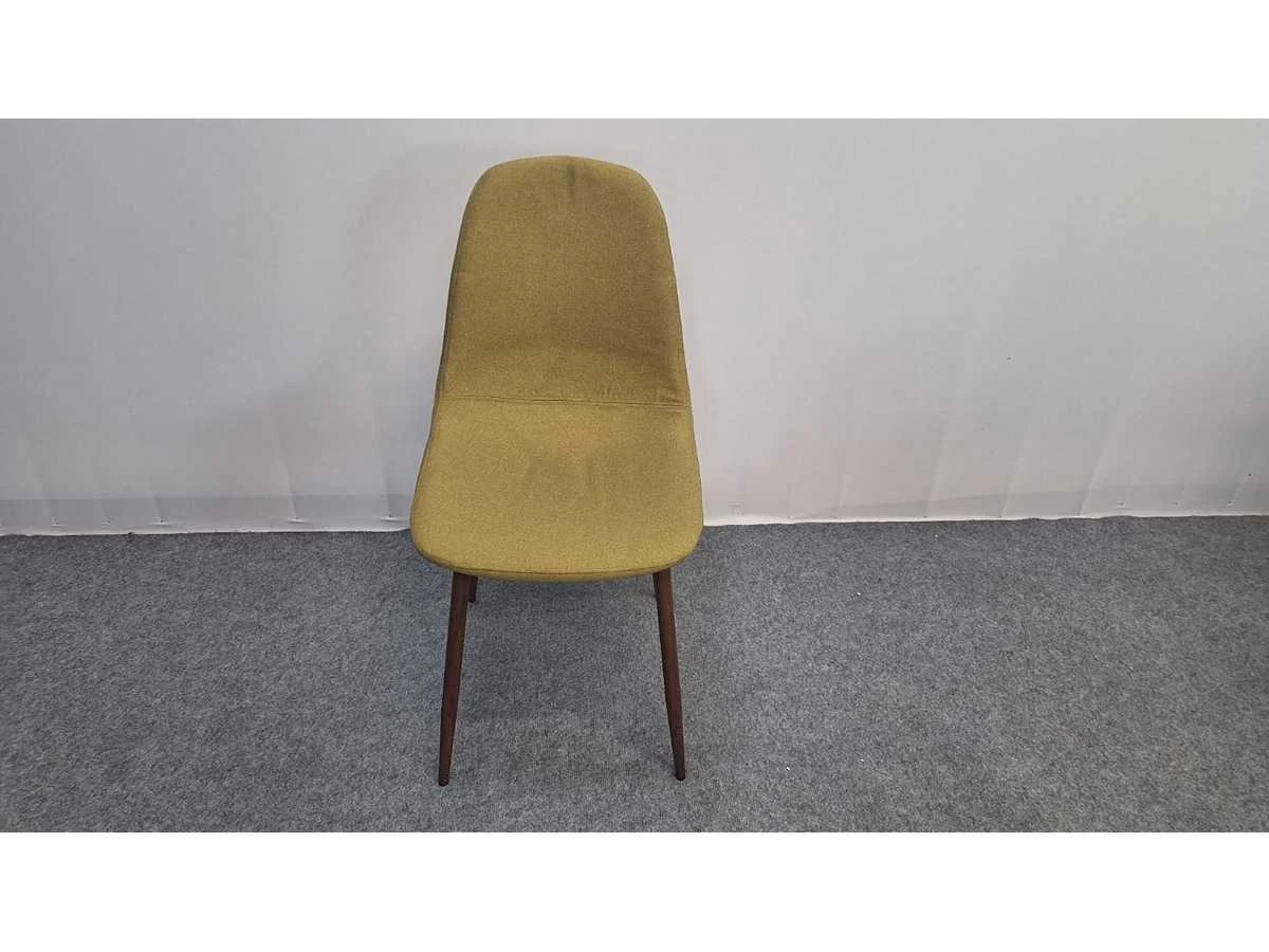 Vierpoots onderstel in hout kleur Noot, bekleding in stof kleur okergeel, lichte gebruikssporen mogelijk No Merk: NN Kleur: Okergeel-Noot Materiaal: Hout, kunststof, stof Zithoogte: 46cm Hoogte: 84cm Breedte: 44cm Diepte: 44cm Gewicht: 60kg