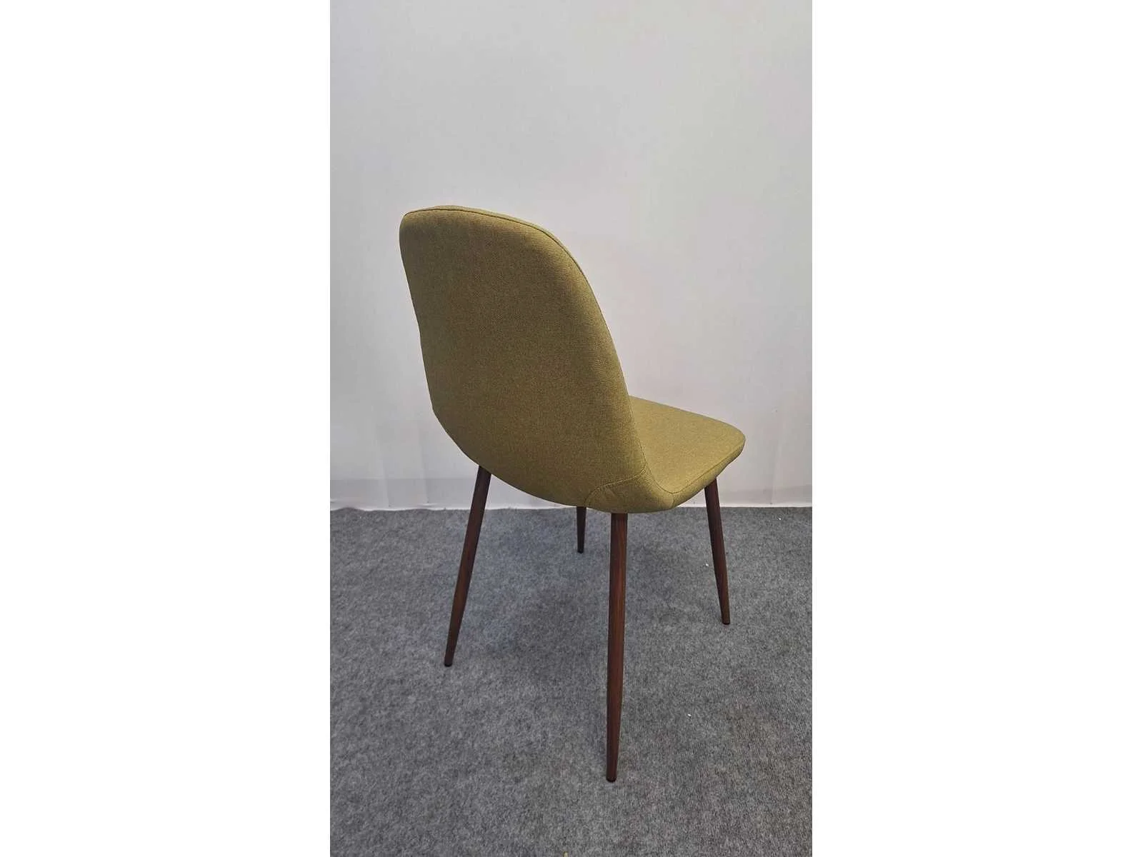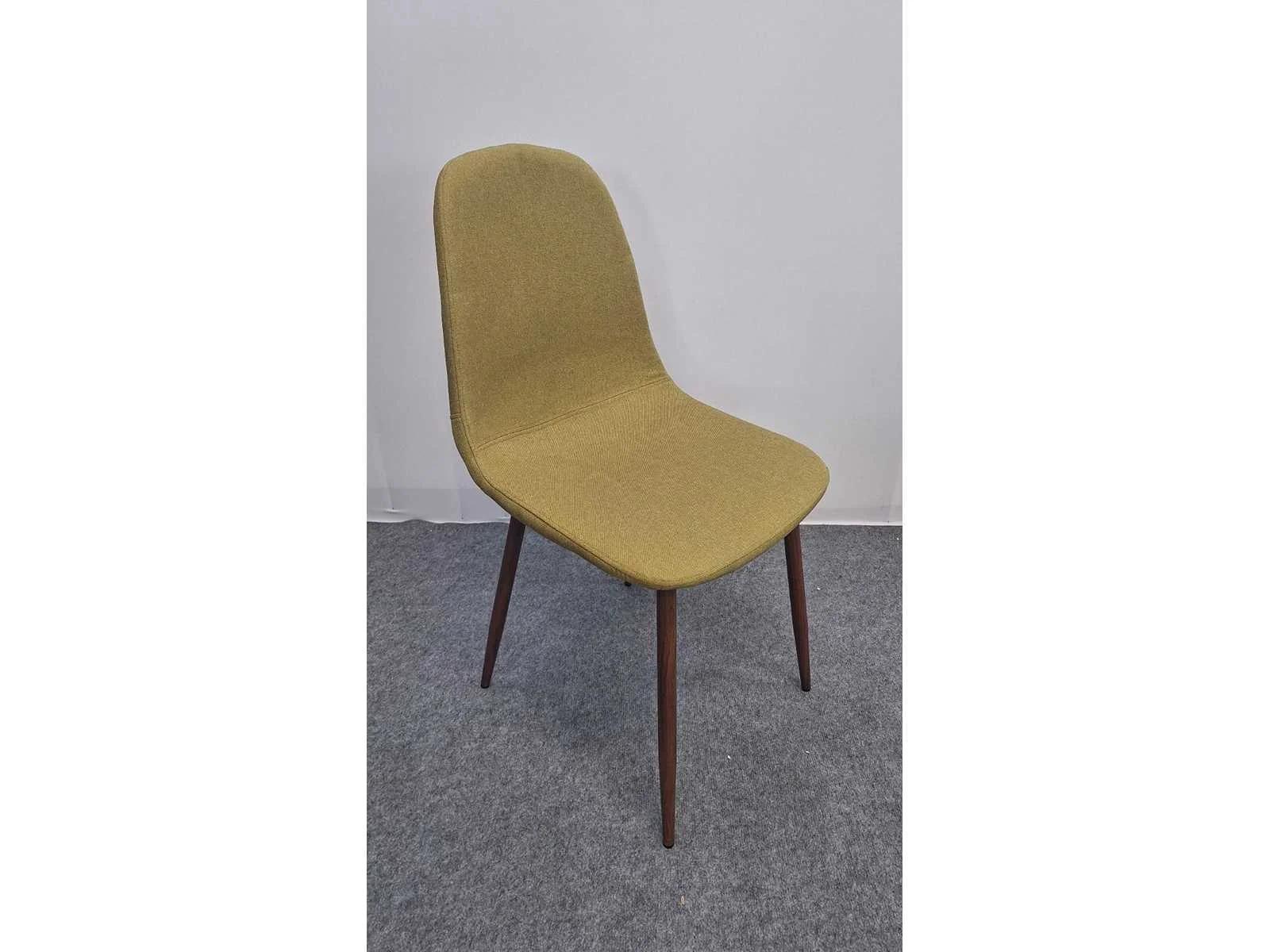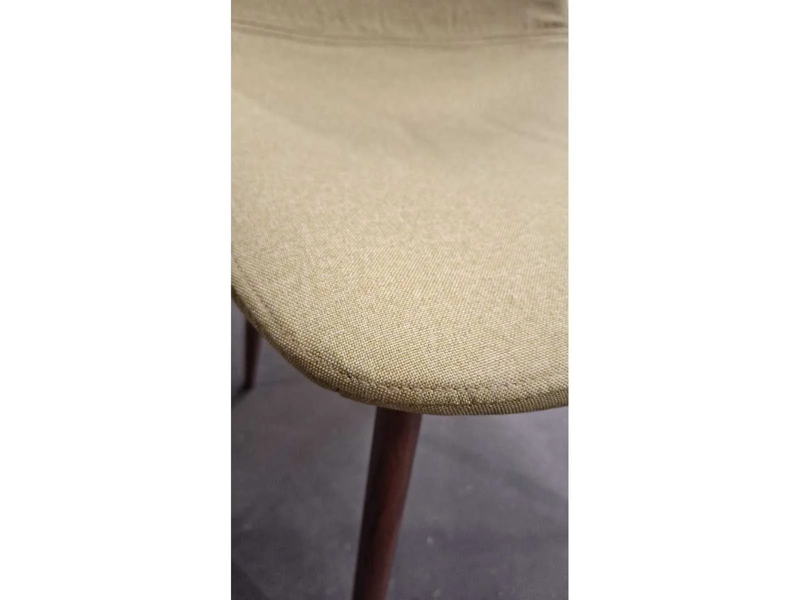 Vierpoots onderstel in hout kleur Noot, bekleding in stof kleur okergeel, lichte gebruikssporen mogelijk No Merk: NN Kleur: Okergeel-Noot Materiaal: Hout, kunststof, stof Zithoogte: 46cm Hoogte: 84cm Breedte: 44cm Diepte: 44cm Gewicht: 60kg