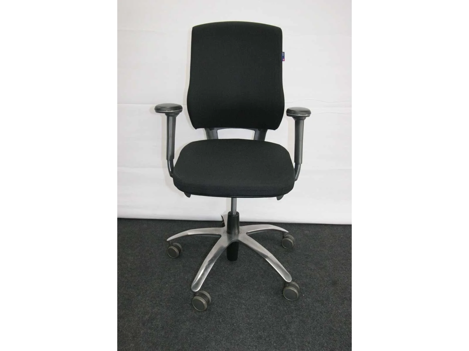 Stervoet in gepolijst aluminium voorzien van PHD zwenkwielen (ook geschikt voor delicate vloeren), bekleding in stof kleur Zwart, in hoogte verstelbaar, synchromechanisme met gewichtsinstelling, verstelbare rugleuning, technisch nazicht en onderhoud gehad, bekleding chemisch gereinigd, lichte gebruikssporen mogelijk, foto's indicatief No Merk: BMA Type: AXIA Profit Kleur: Zwart Gewicht: 120kg Breedte: 70cm Hoogte: 100cm Diepte: 70cm Materiaal: Metaal, aluminium, kunststof, stof