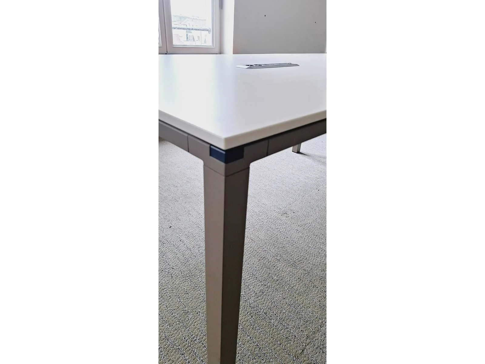 Bladen in melamine kleur Ahorn voorzien van 2 x elektrificatie, onderstel in metaal kleur Antraciet voorzien van kabelgoten, afm. 4200 x 1400 x 740 mm (l x d x h), in goede staat, foto's indicatief No Merk: Ahrend Kleur: Antraciet-Ahorn Gewicht: 200kg Lengte: 420cm Hoogte: 74cm Materiaal: Metaal, aluminium, kunststof, hout, melamine Diepte: 140cm