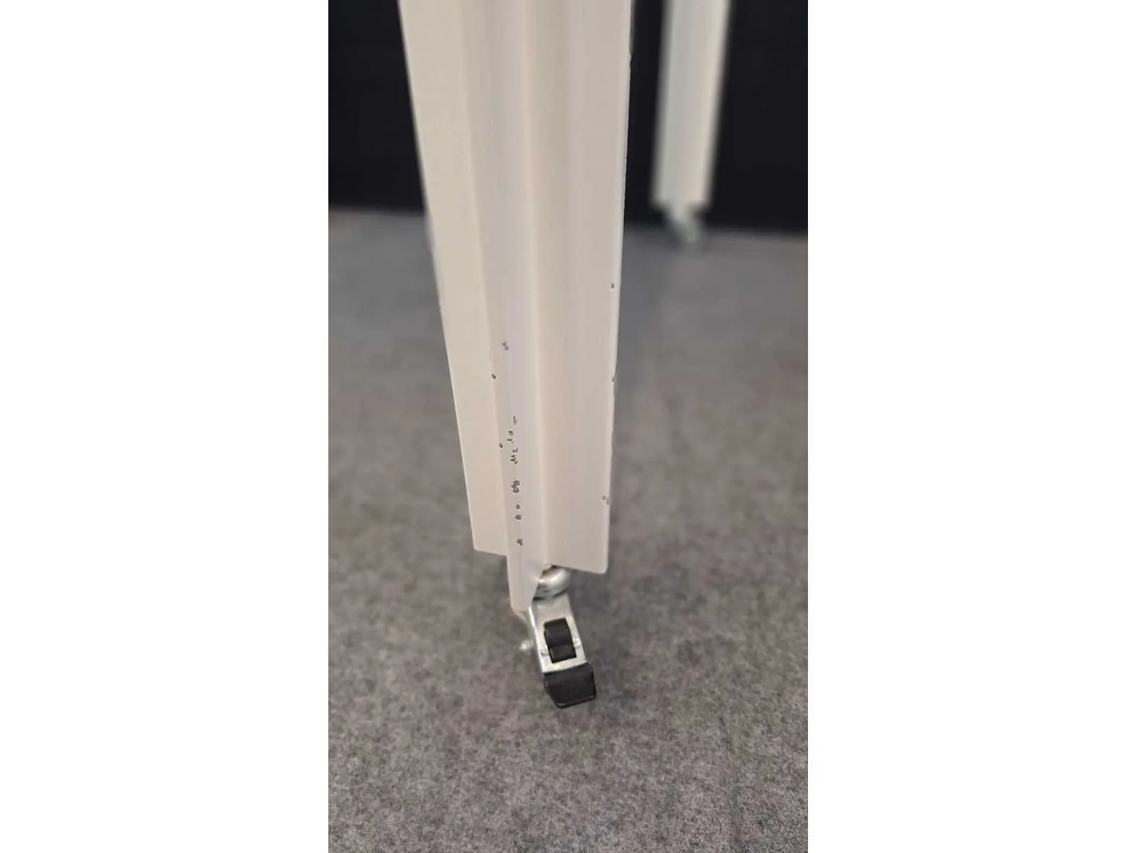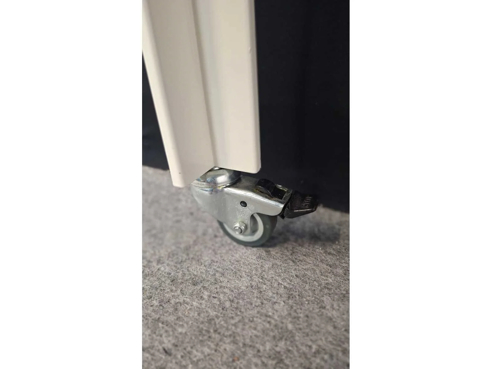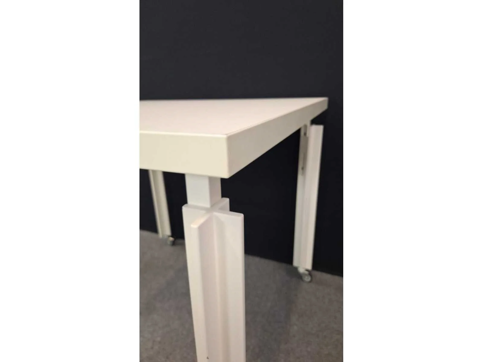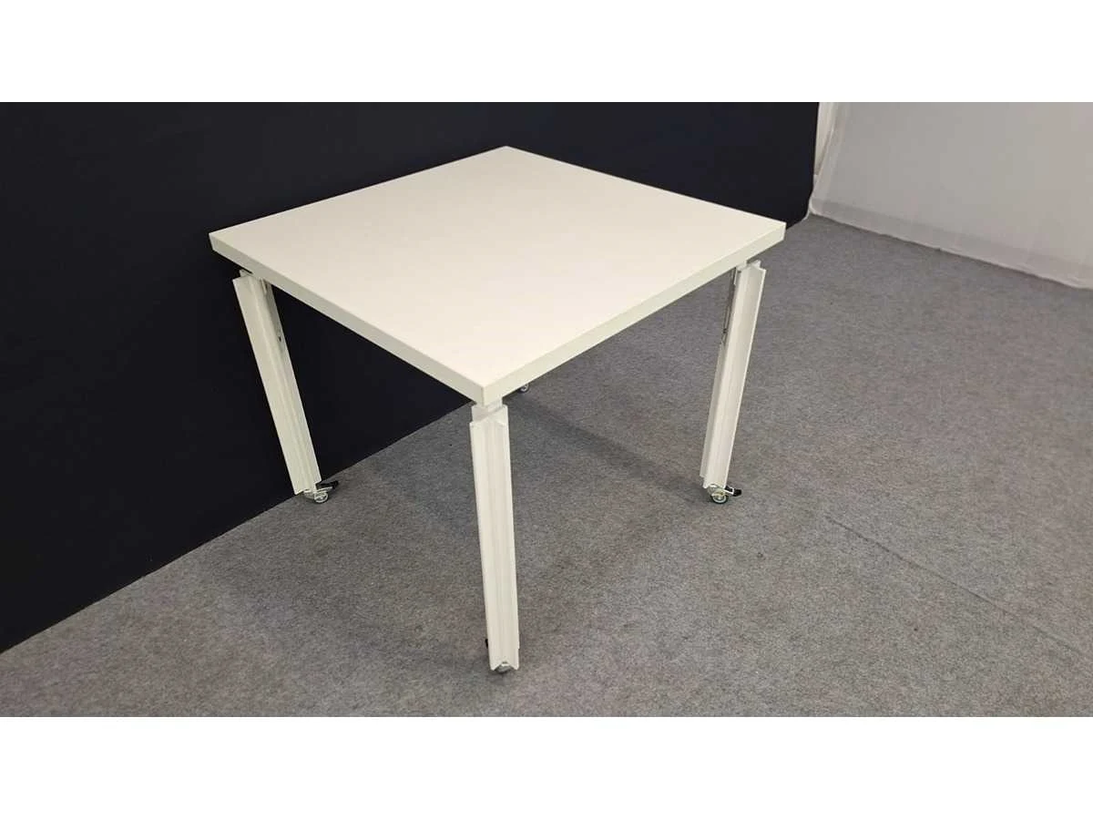 Onderstel in aluminium kleur Wit uitgerust met fixeerbare wielen, blad in melamine kleur Wit, gebruikssporen aanwezig No Merk: BULO Type: H2O Kleur: Wit Gewicht: 40kg Lengte: 90cm Breedte: 90cm Hoogte: 82cm Materiaal: aluminium, hout, kunststof