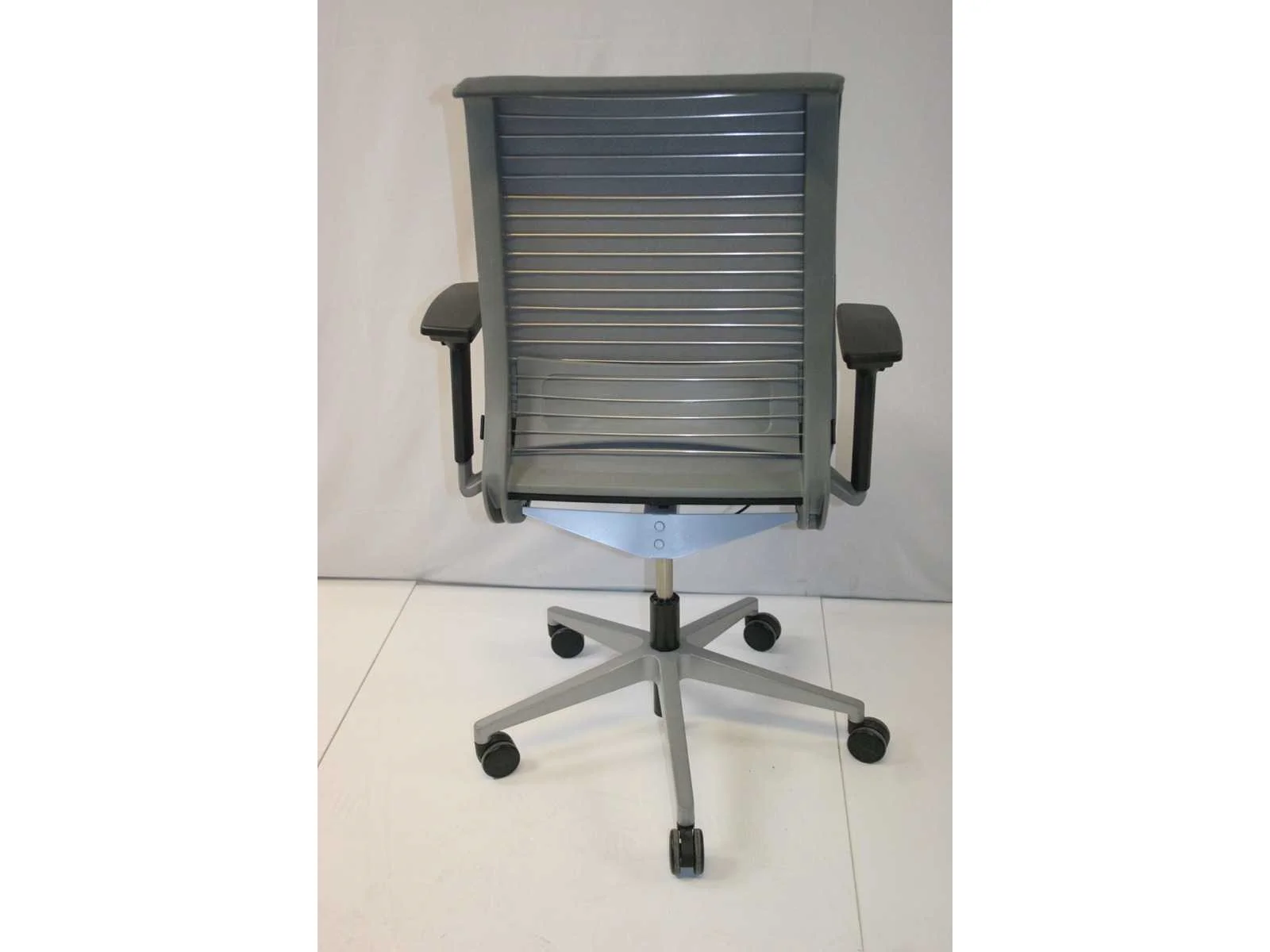 Stervoet in kunststof kleur Alu voorzien van standaard zwenkwielen, bekleding in stof kleur Grijs, in hoogte verstelbaar, synchroon mechaniek met gewichtsinstelling, in hoogte verstelbare armleuningen, in hoogte verstelbare lendesteun, instelbare zitdiepte, lichte gebruikssporen mogelijk , foto's indicatief. No Merk: Steelcase Type: Think Kleur: Grijs Gewicht: 30kg Breedte: 70cm Hoogte: 100cm Diepte: 70cm Materiaal: Metaal, aluminium, kunststof, stof