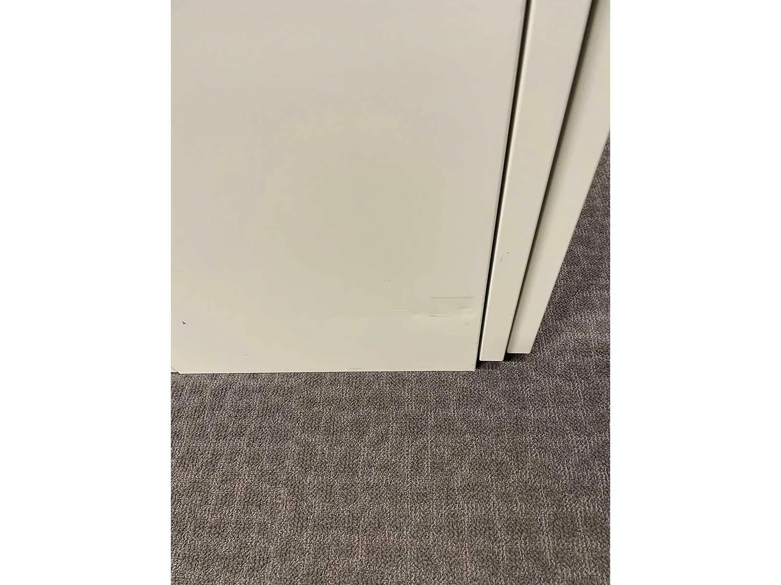 Kast volledig in metaal kleur Wit, schuifdeuren in metaal kleur Wit met akoestische schuimvulling kleur Zwart, top in melamine kleur Wit, gebruikssporen mogelijk, lichte verkleuring door UV inwerking, foto's indicatief. No Merk: Robberechts Kleur: Wit Gewicht: 175kg Breedte: 360cm Hoogte: 125cm Materiaal: Metaal, kunststof, hout, melamine Diepte: 47cm Aantal laden: 6