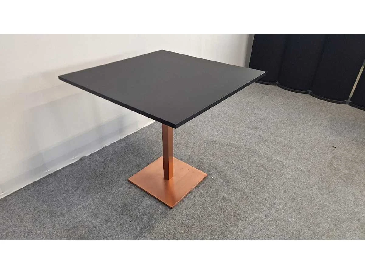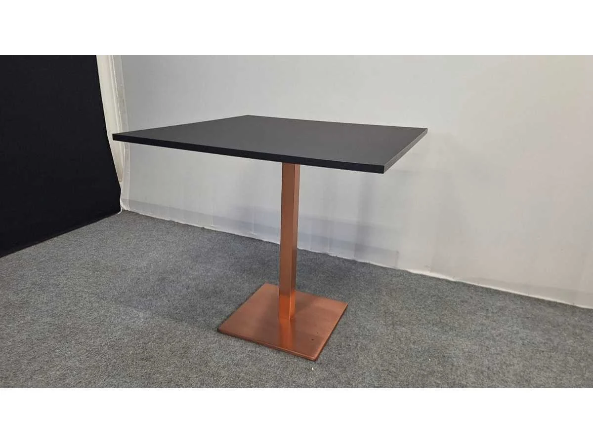 Centrale poot in metaal koperkleurig, werkblad in melamine kleur Zwart, lichte gebruikssporen No Merk: Pedrali Gewicht: 20kg Lengte: 80cm Breedte: 80cm Hoogte: 74cm