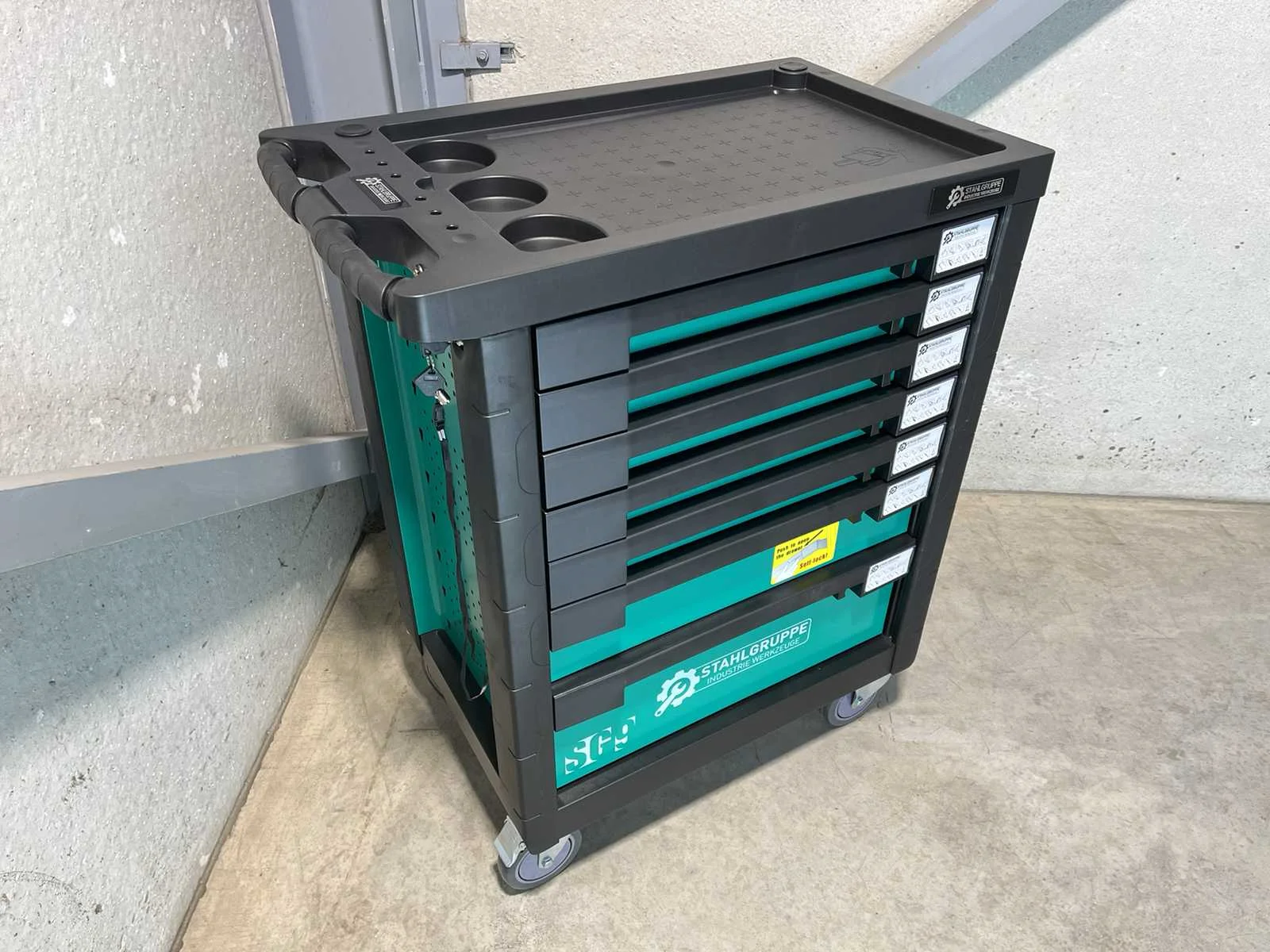 <li><strong>Merk:</strong> Stahlgruppe</li> <li><strong>Type:</strong> SG9</li> <li><strong>Aantal laden:</strong> 7 laden</li> <li><strong>Aantal gevulde laden:</strong> 5 gevulde laden</li> <li><strong>Kast:</strong> dubbelwandige kast met automatisch vergrendelende laden</li> <li><strong>Gereedschap:</strong> Chrome Vanadium gereedschap</li> <li><strong>Inhoud:</strong> <ul> <li>2 dopsleutel sets (1/4” & 1/2”)</li> <li>ring- steeksleutelset (6-32 mm)</li> <li>ringratel-steeksleutelset (8-19 mm)</li> <li>Inbussleutels (1,5-10 mm)</li> <li>schroevendraaiers (21 stuks)</li> <li>Torxsleutels (T8-T70)</li> <li>beitels en pendrijvers (9 stuks)</li> <li>diverse hamers (2 stuks)</li> <li>diverse tangen (9 stuks)</li> <li>schuifmaat (0-150 mm * 0,05 mm)</li> <li>enzovoort…</li> </ul> </li> <li><strong>Staat:</strong> ongebruikt, in de originele verpakking</li> Nee Merk: Stahlgruppe Type: SG9