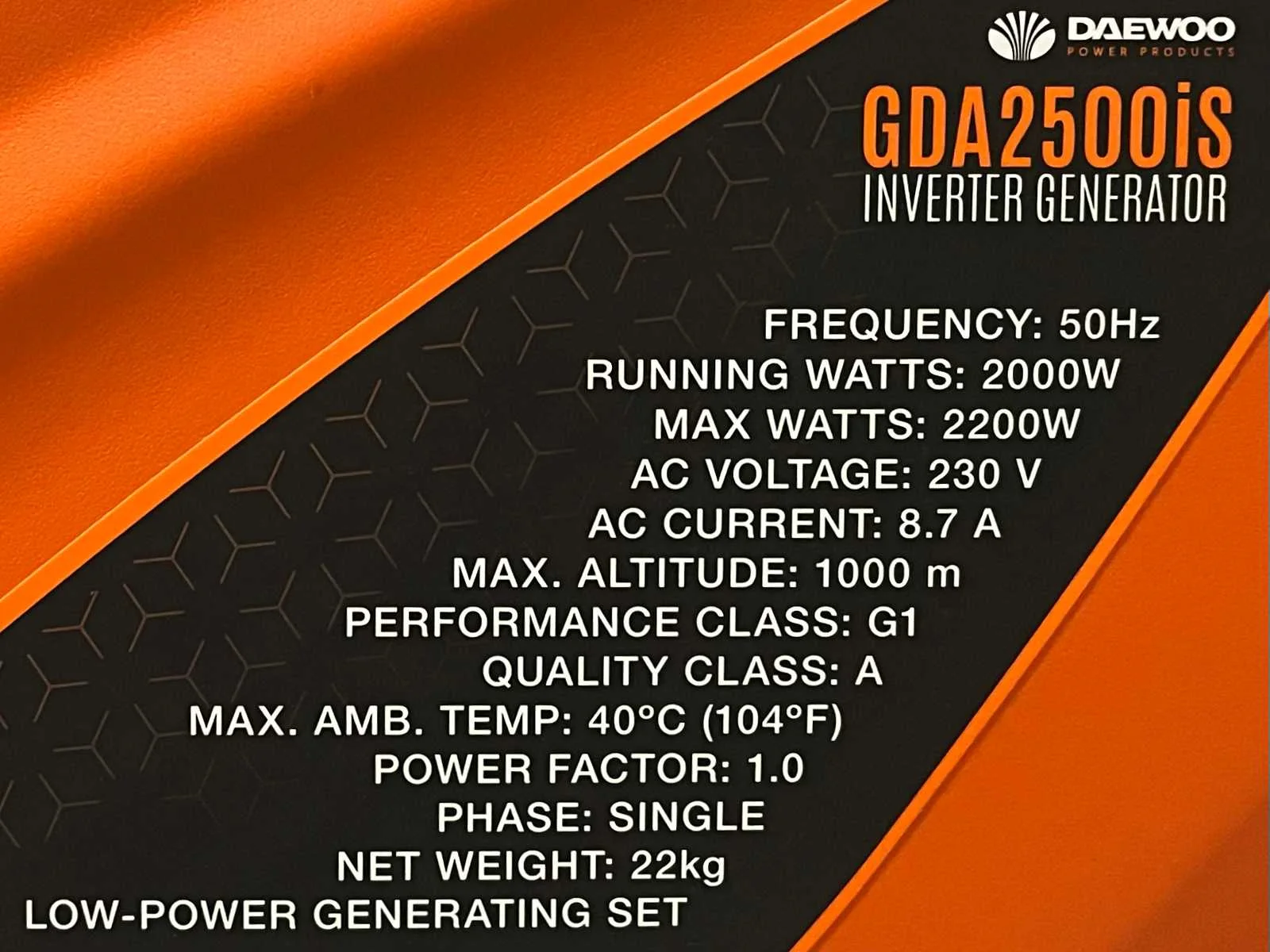 <ul> <li><b>type:</b> inverter benzine stroomgenerator</li> <li><b>merk:</b> Daewoo</li> <li><b>type:</b> GDA2500iS</li> <li><b>vermogen:</b> 2.2 kVA / 2200 watt</li> <li><b>motor:</b> 98 cc, 4-takt benzinemotor</li> <li><b>starten:</b> trekstarter</li> <li><b>outputs:</b> <ul> <li>1 x 230 volt (CEE 7/3 – Schuko)</li> <li>1 x USB (5V – 1.5A)</li> <li>1 x 12 volt – 8A (met accu laadkabel)</li> </ul> </li> <li><b>prestaties:</b> constante spanning, geschikt voor gevoelige elektronica</li> <li><b>beveiliging:</b> overbelasting LED-indicator</li> <li><b>eigenschappen:</b> draagbaar en stil</li> <li><b>gewicht:</b> 22 kg</li> <li><b>milieuklasse:</b> euro 5</li> <li><b>beschermingsgraad:</b> IP23M</li> <li><b>staat:</b> ongebruikt, in de originele verpakking</li> </ul> Nee Merk: Daewoo Type: GDA2500iS