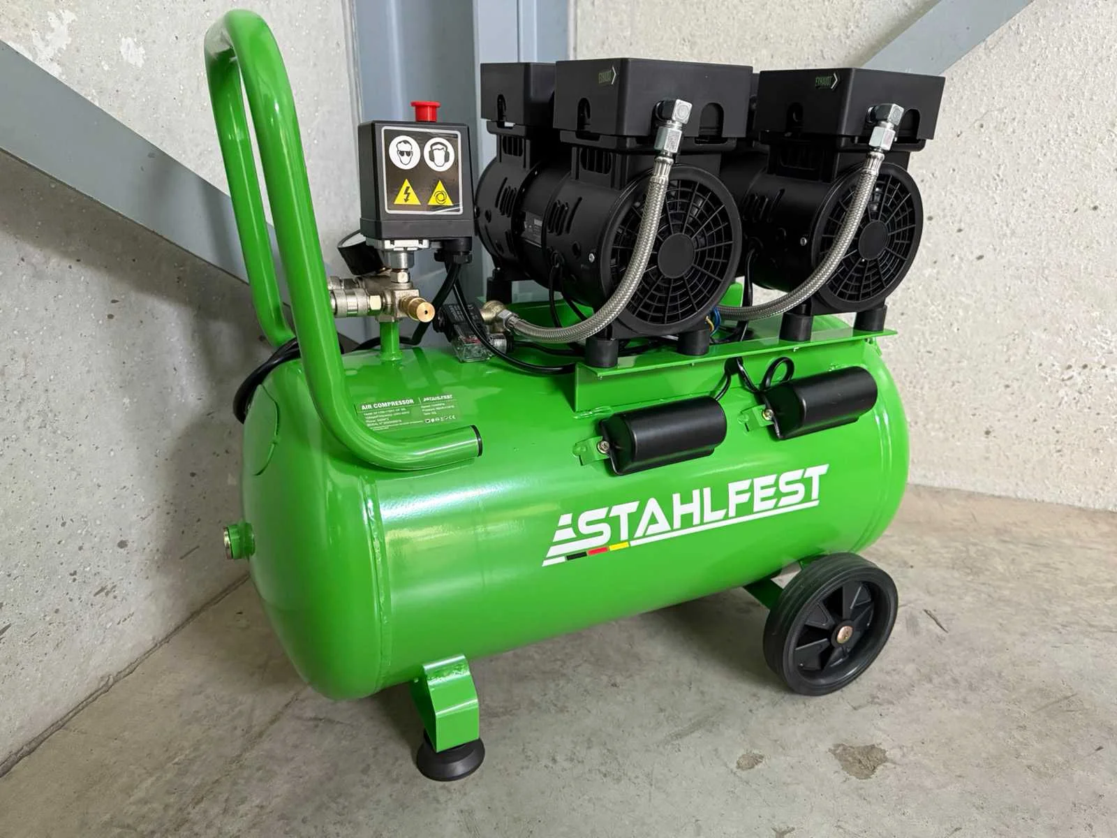 <li><b>olievrije luchtcompressor</b></li> <li><b>eigenschap:</b> super stil</li> <li><b>buffertank:</b> 50 liter buffertank</li> <li><b>luchtstroom:</b> 204 liter per minuut</li> <li><b>uitgangen:</b> 2 uitgangen</li> <li><b>capaciteit:</b> 8 bar / 115 psi</li> <li><b>motorvermogen:</b> 1100 watt</li> <li><b>aansluiting:</b> 230 volt</li> <li><b>handleiding:</b> inclusief handleiding</li> <li><b>staat:</b> ongebruikt, in de originele verpakking</li> Nee Merk: Stahlfest Type: 50 liter
