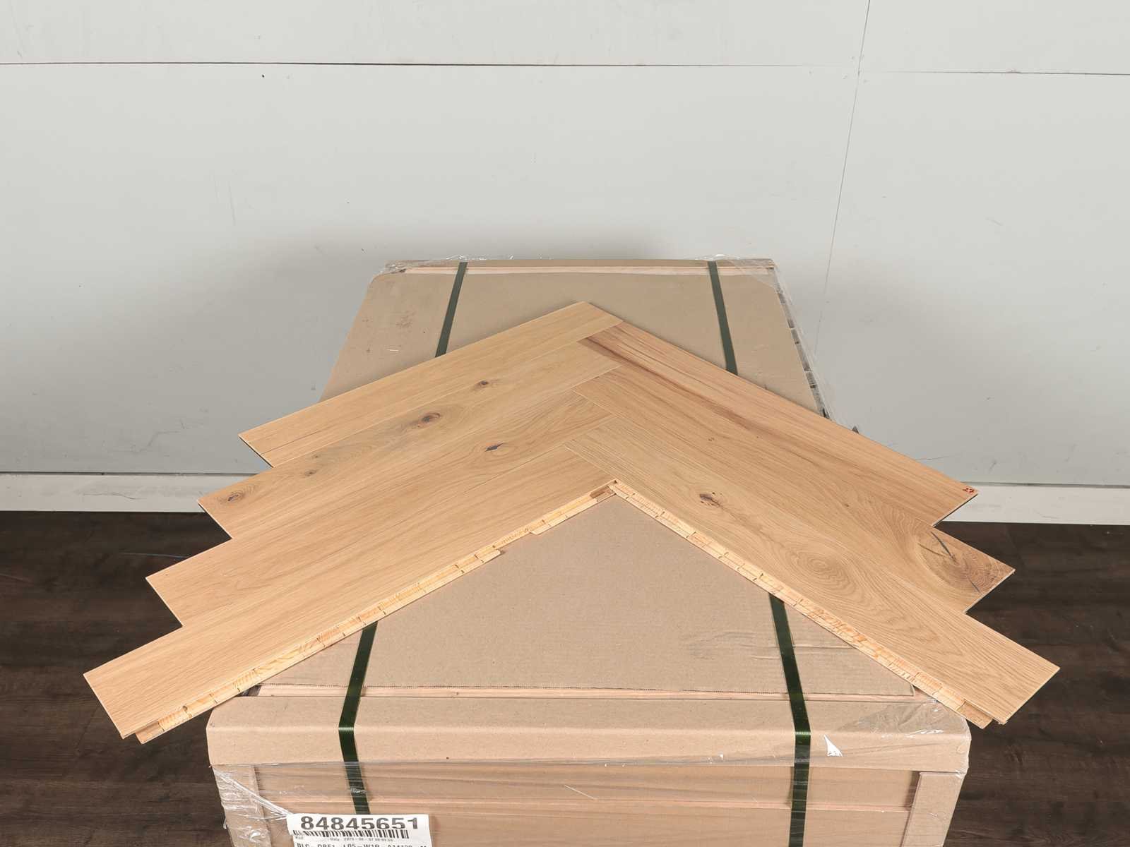 Gemakkelijk te leggen wegens clicksysteem, geschikt voor alle soorten vloer en koelverwarmingen, kwaliteits parketvloer, vloer is van hoogwaardig Europees eiken hout, kant en klaar behandeld, dikte 14 mm, toplaag 3 mm, 93 pakken a 0,50 m2 No Merk: Ambiance Product type: Parket Oppervlakte: 46m² Geschikt voor vloerverwarming: Ja V-groef: Ja Afwerking: Geolied, geoxideerd, geborsteld, met v-groef Aantal m² per verpakking: 0.5m² Kleur: Raw effect 451 Gewicht: 415kg Lengte: 660mm Breedte: 110mm Materiaal: Eiken multiplank