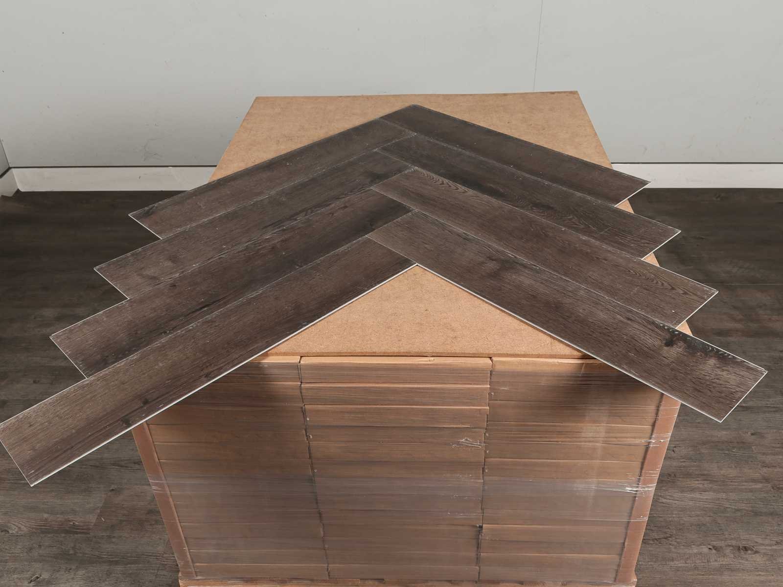 PVC click vloer, visgraat, dikte 5 mm, spat water bestendig, voorzien van clicksysteem, vorstbestendig, ideaal voor vloerverwarming, kras en slijtvast, anti slip, gemakkelijk schoon te maken, 28 pakken a 1,80 m2 No Merk: Airial flooring Product type: PVC Oppervlakte: 50m² Geschikt voor vloerverwarming: Ja V-groef: Ja Afwerking: embossed, voelbaar structuur, anti slip, met v-groef Aantal m² per verpakking: 1.8m² Kleur: Bitter 507 Gewicht: 280kg Lengte: 750mm Breedte: 150mm Materiaal: PVC/SPC