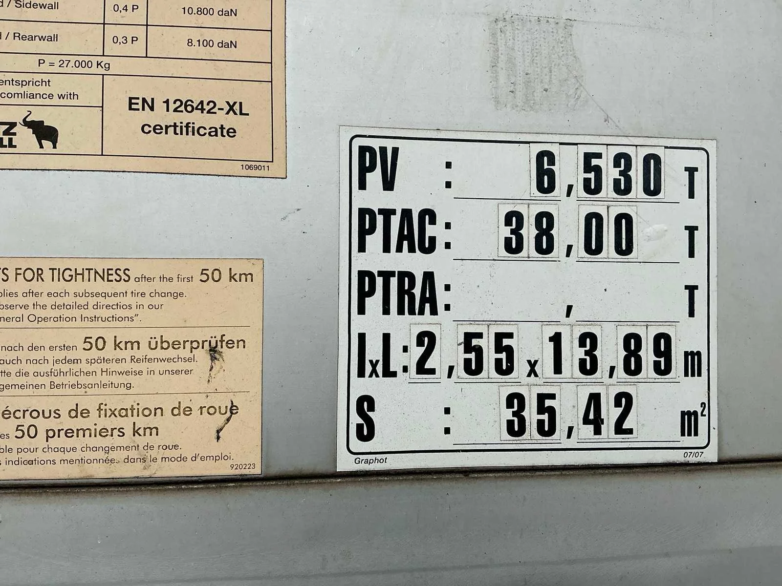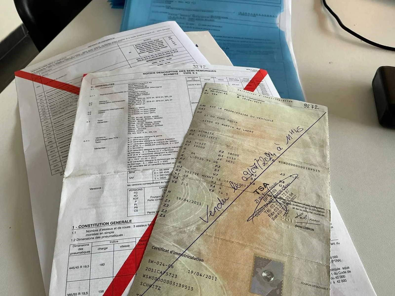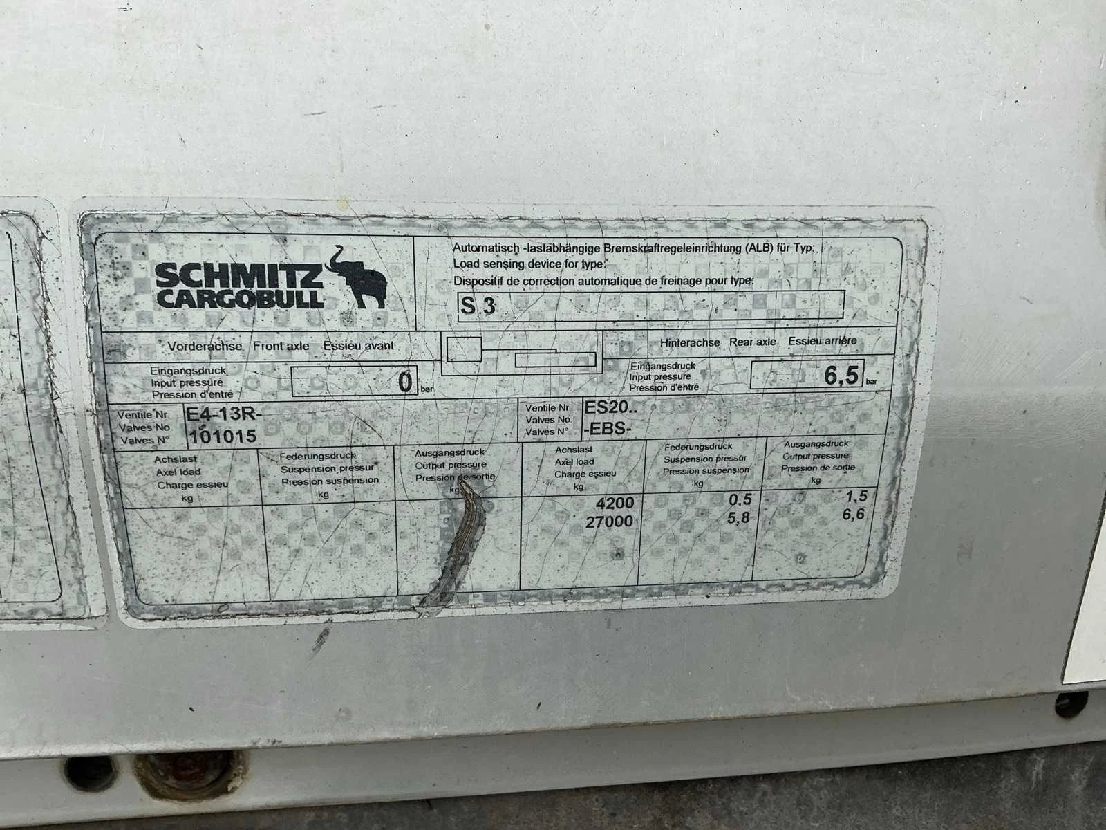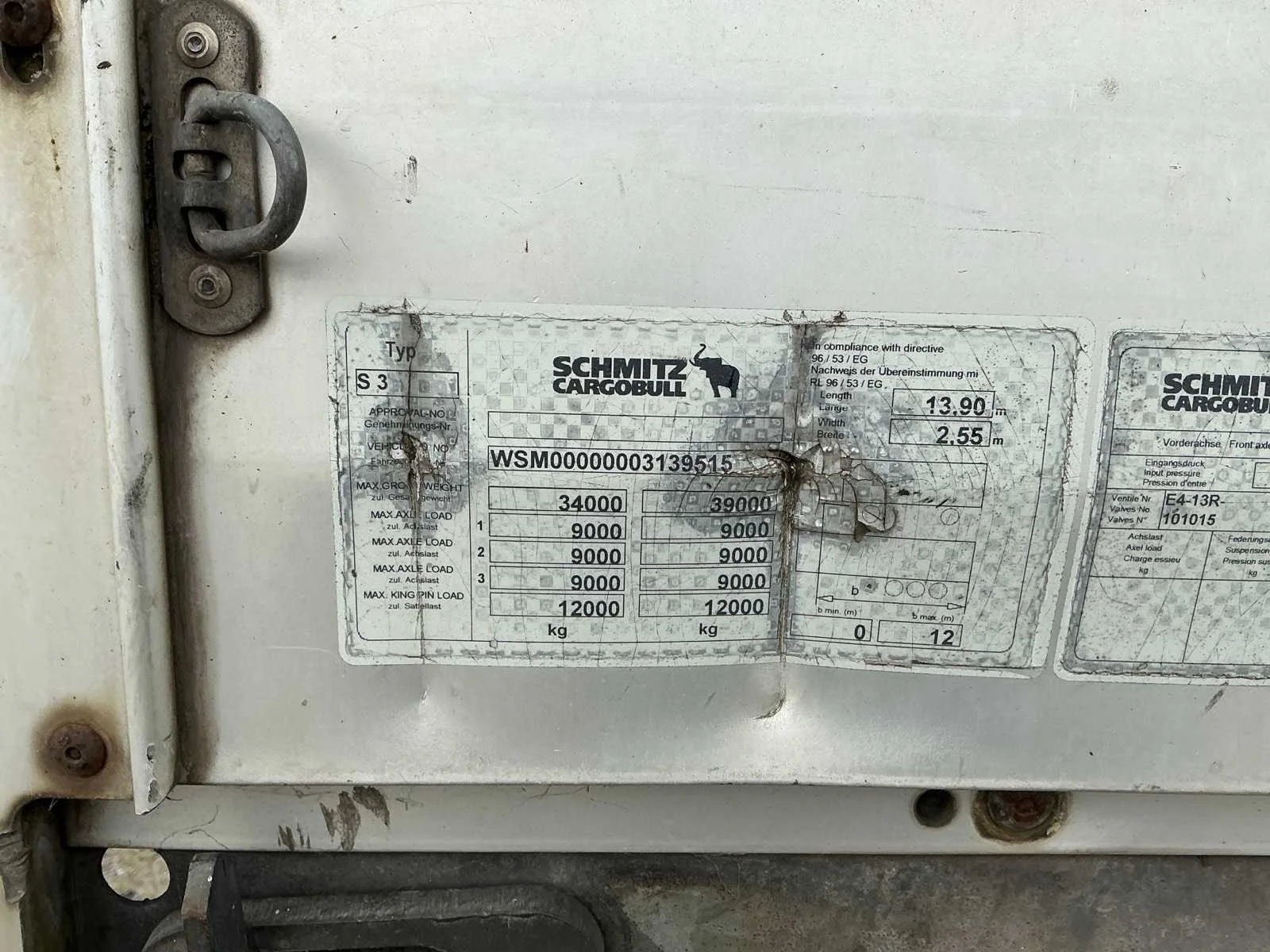 <li>Franse inschrijvingsformulier aanwezig, gelijkvormigheid attest aanwezig</ul> <li>gebruiksporen</ul> Nee Merk: Schmitz Type: S3 ZD Bouwjaar: 2011 Chassisnummer VIN: WSM00000003139515 Datum eerste toelating: 19/04/2011 Aantal assen: 3 Laadvermogen: 39000kg Eigen gewicht: 6530kg Totale afmeting L: 13900mm Totale afmeting Breedte: 2550mm