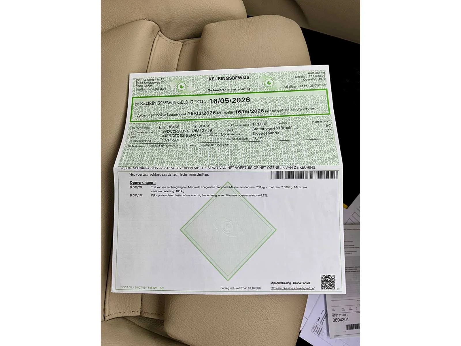 Zeer mooie mercedes GLC in unieke kleurstelling! Bruin met beige leder interieur - Bomvol opties en in enorm nette staat - kleine schar op de bumper achter maar voor de rest in zeer mooie staat - altijd binnen gestaan. Nee Merk: Mercedes-Benz Model: GLC 220D 4Matic Bouwjaar: 2017 Afgelezen kilometerstand: 118081km Cilinderinhoud: 2143cc Vermogen (kW): 120kW Brandstof: Diesel Laadvermogen: 2500kg Datum eerste toelating: 17/11/2017 Energielabel: euro 6b Aandrijving: 4Matic Aantal zitplaatsen: 5 Kleur: Bruin Transmissie: Automaat Stuurwiel: links Aantal sleutels: 2 Nationaliteit documenten: Belgisch Keuringsrapport geldig tot: 16/05/2026 Airconditioning: true Navigatie: true LED-koplampen: true Vierwielaandrijving 4x4: true