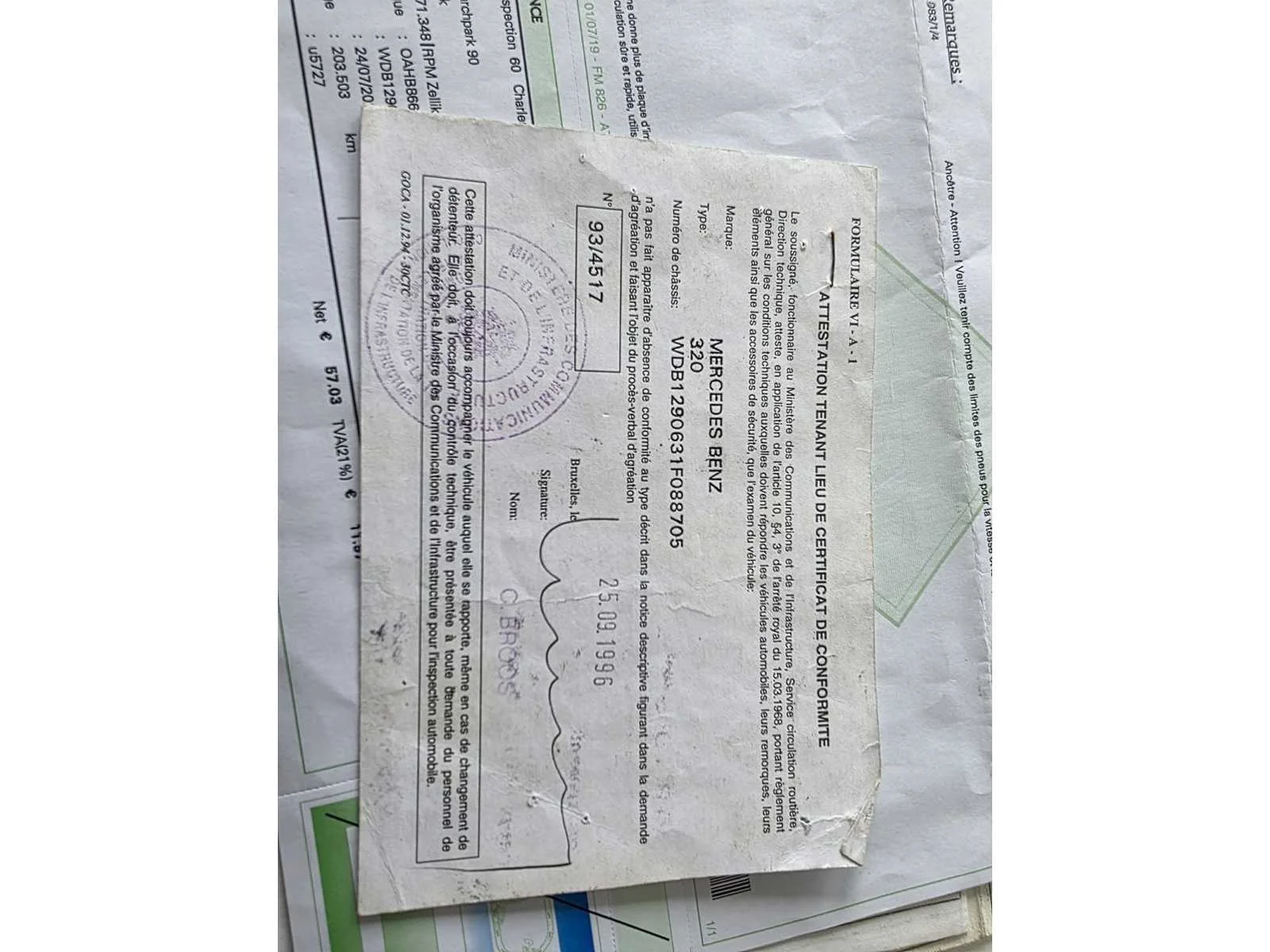 Lichtmetalen velgen, softtop, hardtop, elektrisch verstelbare stoelen No Merk: Mercedes-Benz Model: SL320 Type: Cabrio Bouwjaar: 1996 Afgelezen kilometerstand: 203760km Cilinderinhoud: 3199cc Vermogen (kW): 170kW Brandstof: Benzine Chassisnummer: WDB1290631F088705 Datum eerste toelating: 10/09/1996 Vermogen (pk): 230hp Transmissie: Automatisch Aantal deuren: 2 Aantal cilinders: 6 Carrosserie: Cabrio Nationaliteit documenten: Belgisch Gelijkvormigheidsattest aanwezig: true Start en rijdt: Ja Vavato voert geen technische keuring uit.: true Inschrijvingsbewijs - deel 1 : Aanwezig Inschrijvingsbewijs - deel 2: Aanwezig