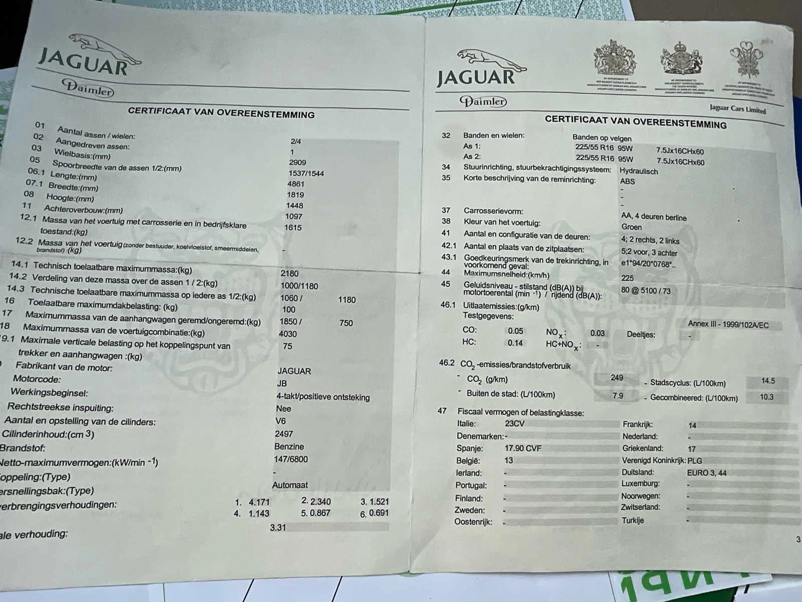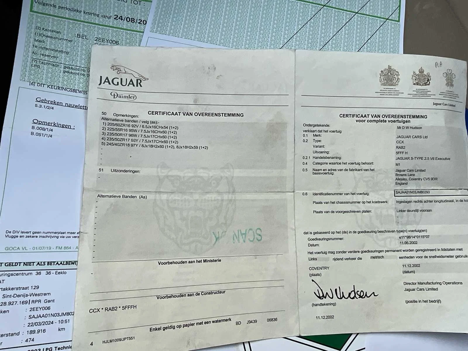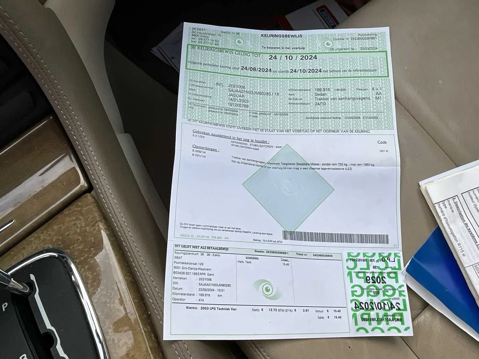 Batterij aan vervanging toe. No Merk: Jaguar Model: S-type 2.5 V6EX LPG Bouwjaar: 2003 Afgelezen kilometerstand: 189082km Cilinderinhoud: 2497cc Vermogen (kW): 147kW Brandstof: Benzine Chassisnummer: SAJAA01N03JM80293 Datum eerste toelating: 14/01/200 Transmissie: Automaat Nationaliteit documenten: Belgisch Start en rijdt: Ja startinformatie : Start en rijdt Inschrijvingsbewijs - deel 1 : Aanwezig Inschrijvingsbewijs - deel 2: Niet aanwezig