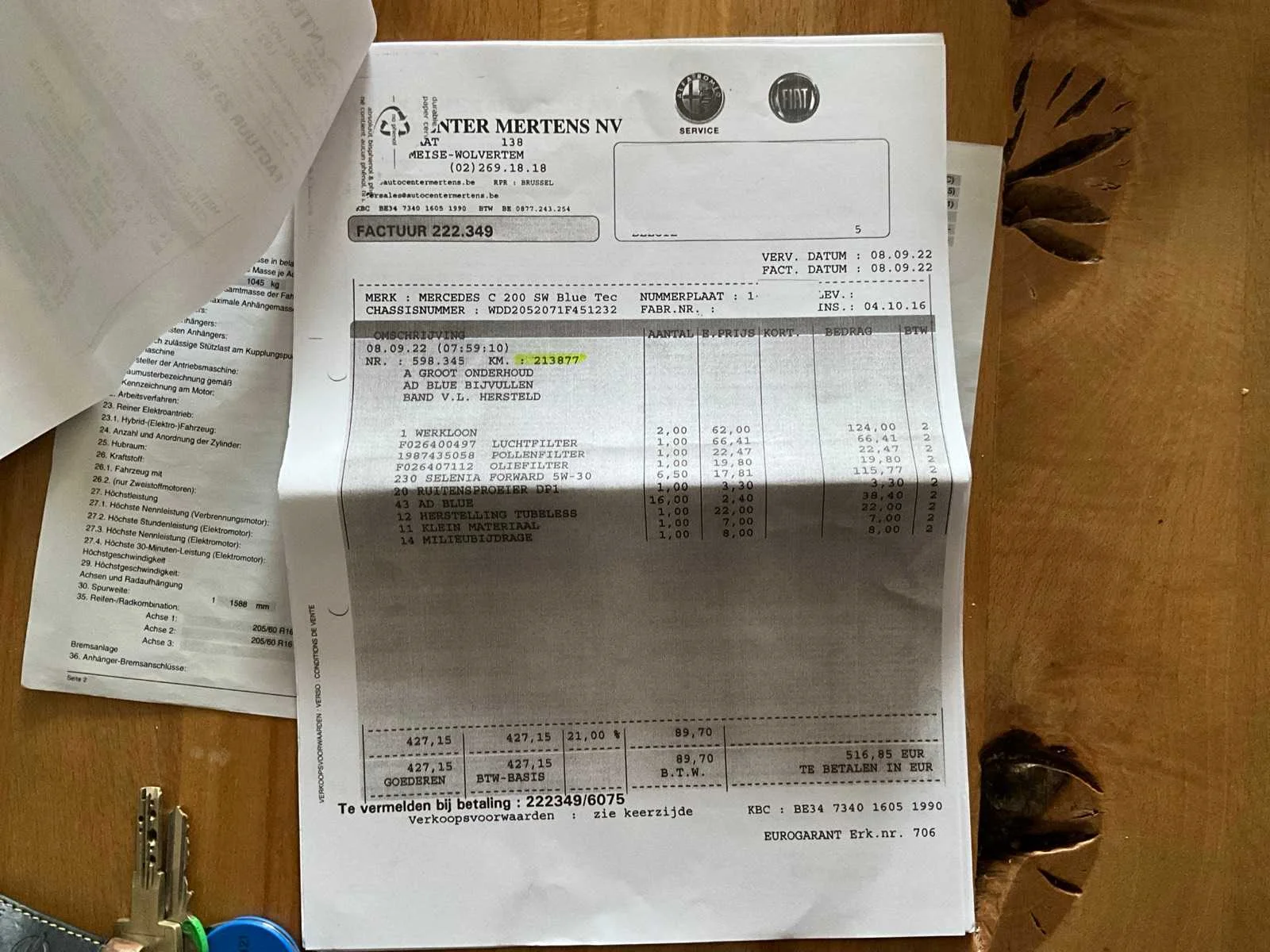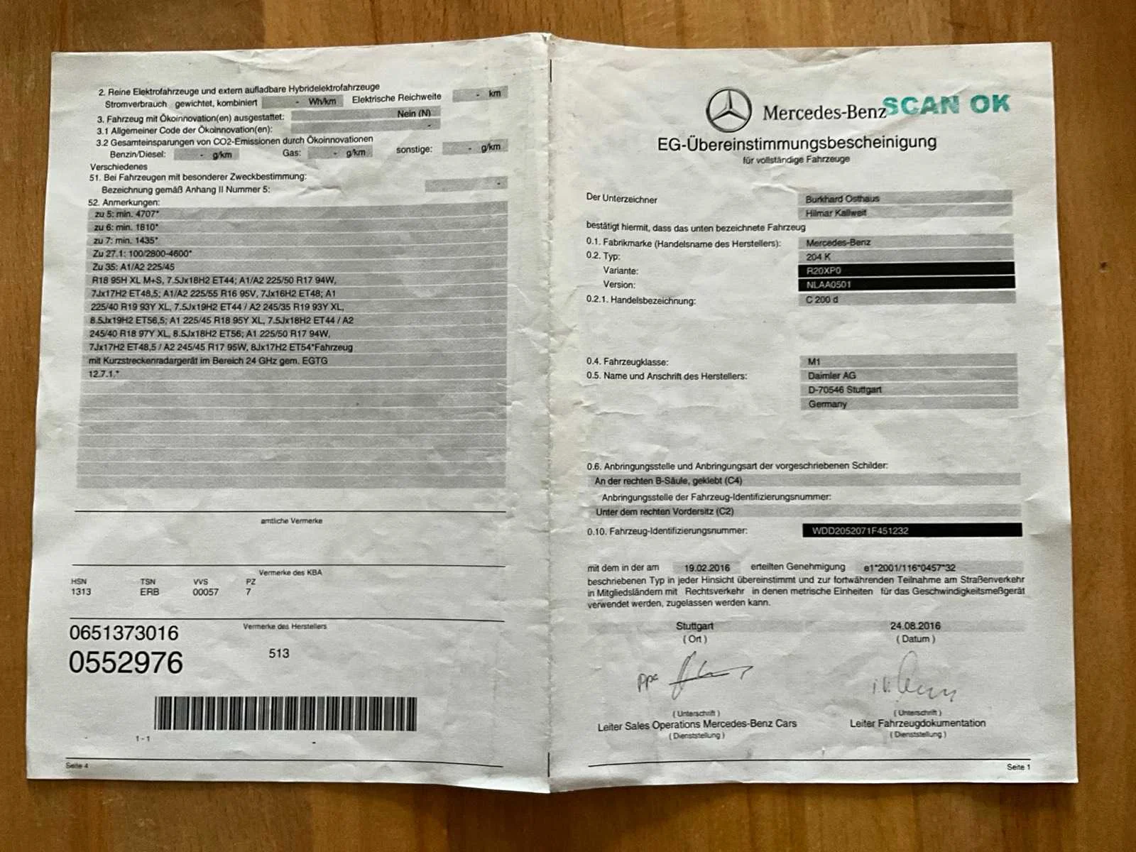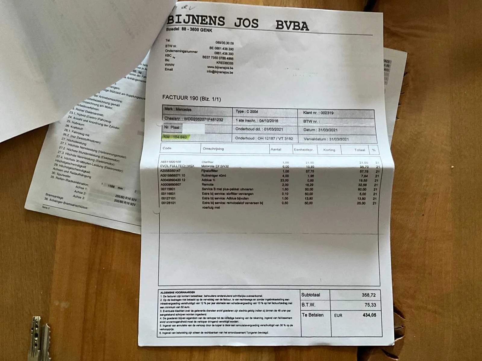 De wagen start, rijdt en draait soepel. Automaat, schakelt zeer goed. Nee Merk: Mercedes-Benz Model: C200 d Bouwjaar: 2016 Afgelezen kilometerstand: 308587km Cilinderinhoud: 2143cc Vermogen (kW): 100kW Brandstof: diesel Chassisnummer: WDD2052071F451232 Datum eerste toelating: 04/10/2016 Transmissie: Automaat Aantal sleutels: 2 Nationaliteit documenten: Belgisch Start en rijdt: Ja startinformatie : Start en rijdt Inschrijvingsbewijs - deel 1 : Aanwezig Inschrijvingsbewijs - deel 2: Aanwezig