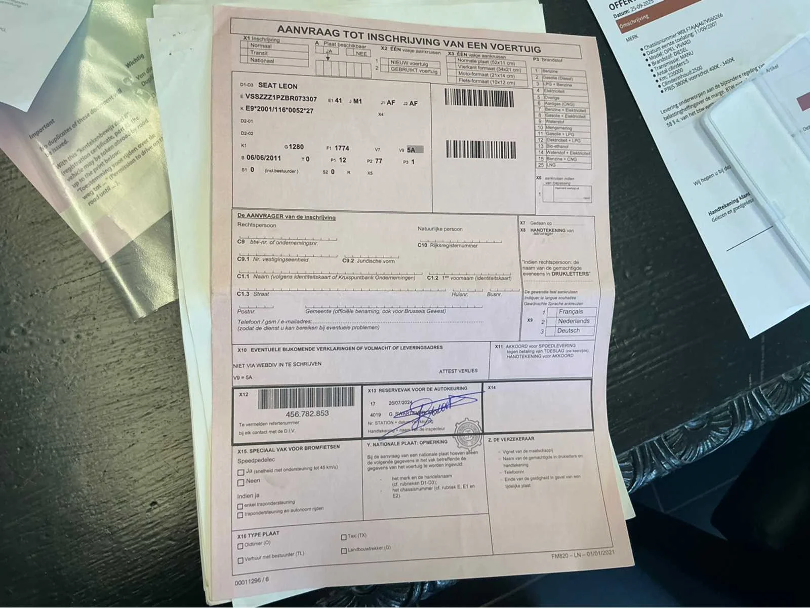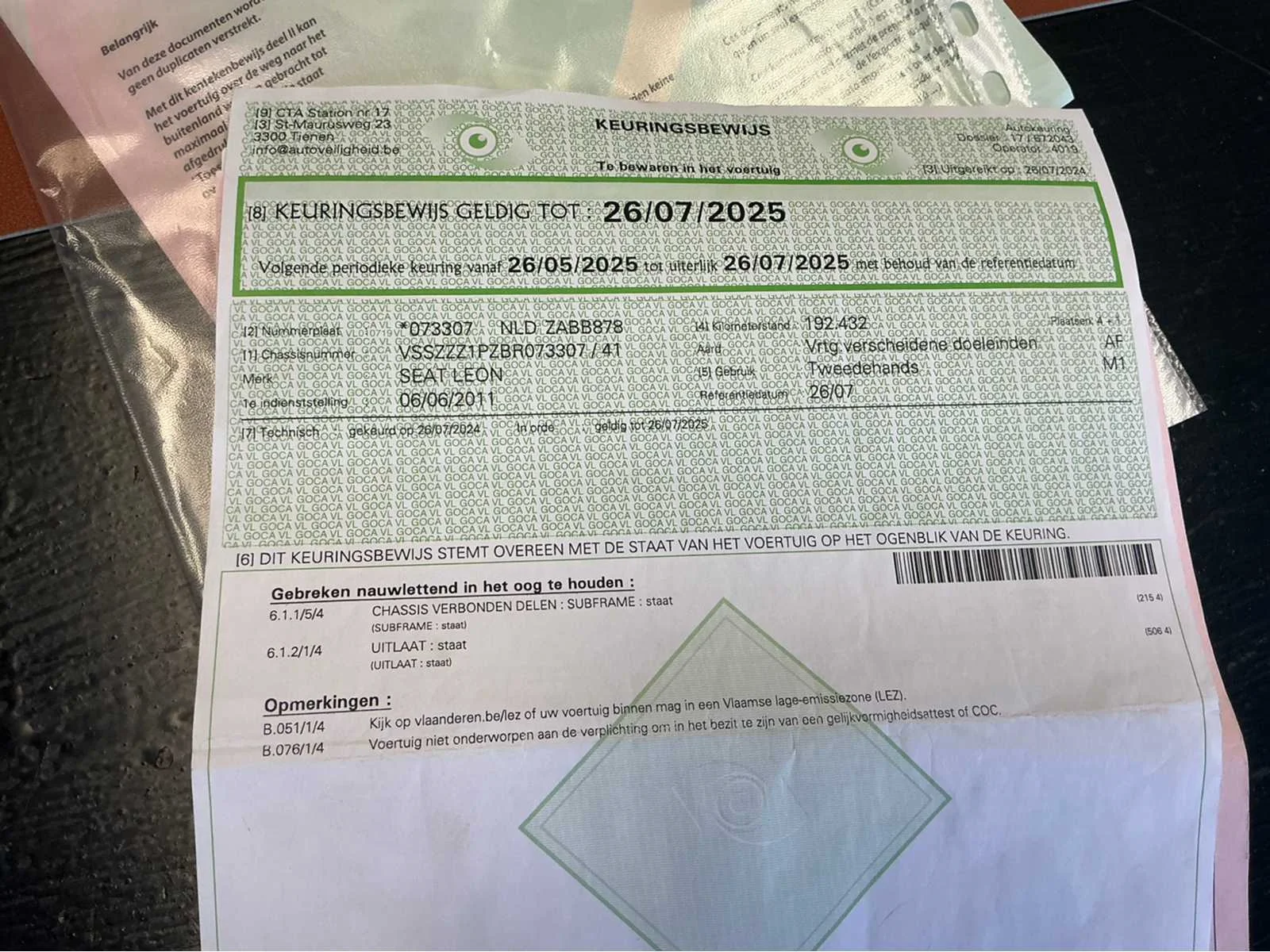 Start en rijdt perfect, U hoort de motor perfect draaien. Nee Merk: Seat Model: Leon Type: D.2 1P Bouwjaar: 2011 Afgelezen kilometerstand: 193782km Cilinderinhoud: 1197cc Brandstof: benzine Chassisnummer: VSSZZZ1PZBR073307 Datum eerste toelating: 2011 Datum eerste toelating (NL): 06-06-2011 Aandrijving: Voorwielaandrijving Aantal zitplaatsen: 5 Kleur: Wit Transmissie: Handgeschakeld Aantal deuren: 5 Aantal sleutels: 2 Nationaliteit documenten: Nederland Start en rijdt: Ok Keuringsrapport geldig tot: 26/07/2025 Inschrijvingsbewijs - deel 1 : Aanwezig Inschrijvingsbewijs - deel 2: Aanwezig