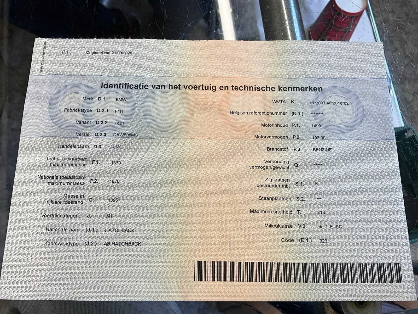 Full option, volledig M performance pakket. Nee Merk: BMW Model: 118I Bouwjaar: 2020 Afgelezen kilometerstand: 36279km Cilinderinhoud: 1499cc Vermogen (kW): 103kW Brandstof: benzine Chassisnummer: WBA7K310507G80672 Datum eerste toelating: 21/09/2020 Aantal zitplaatsen: 5 Transmissie: Automaat Emissieklasse: Euro 6d Aantal deuren: 5 Aantal sleutels: 2 Nationaliteit documenten: Belgisch Start en rijdt: Ja Vavato voert geen technische keuring uit.: true Airconditioning: true Navigatie: true LED-koplampen: true Leder bekleed: true Inschrijvingsbewijs - deel 1 : Aanwezig Inschrijvingsbewijs - deel 2: Aanwezig