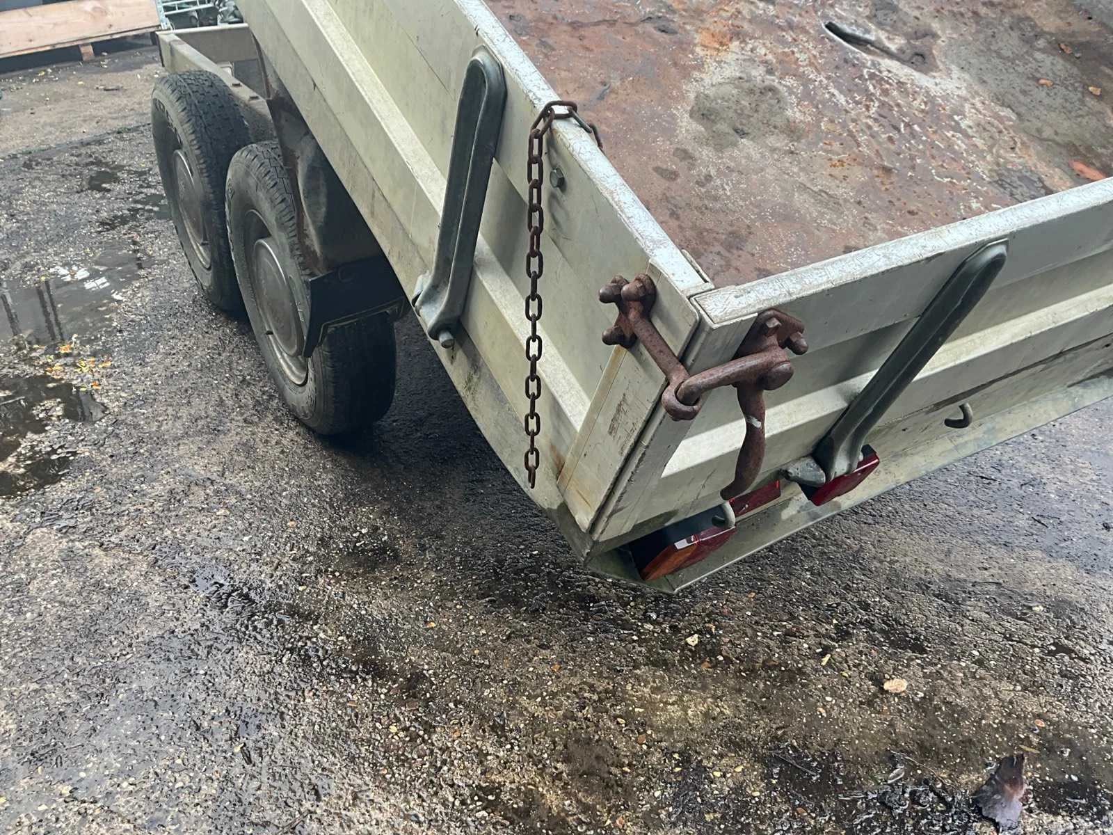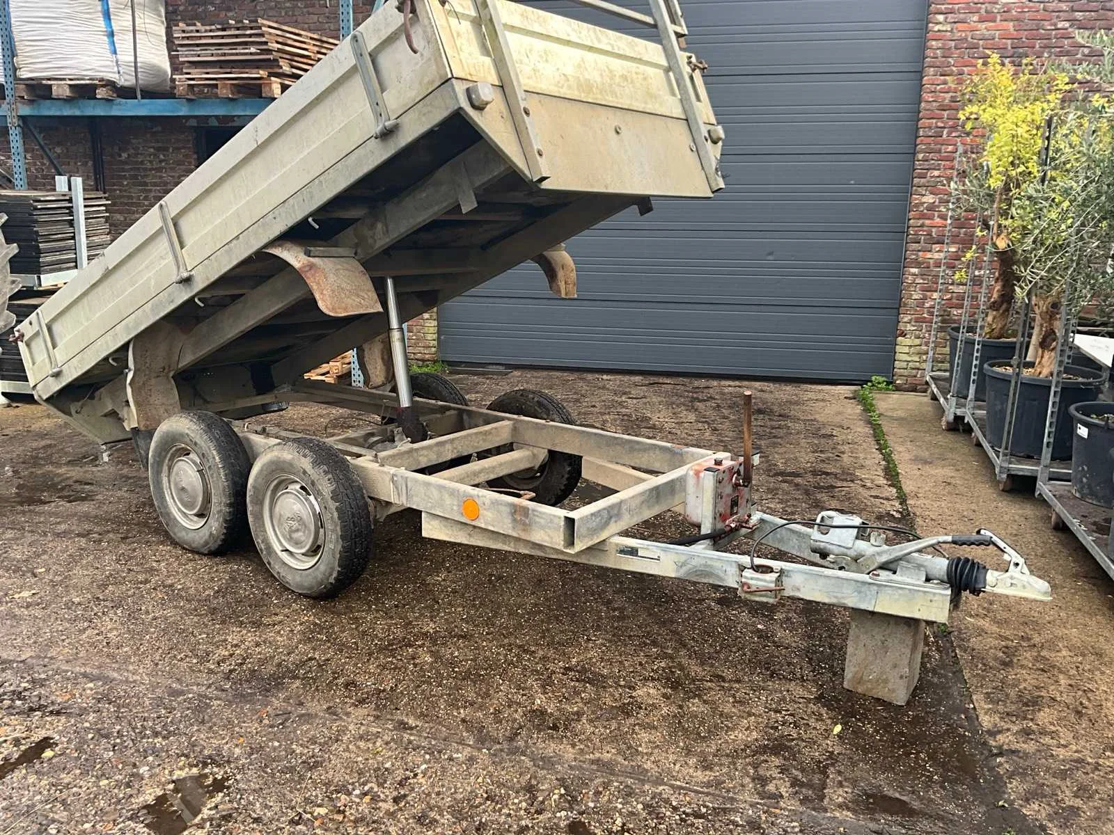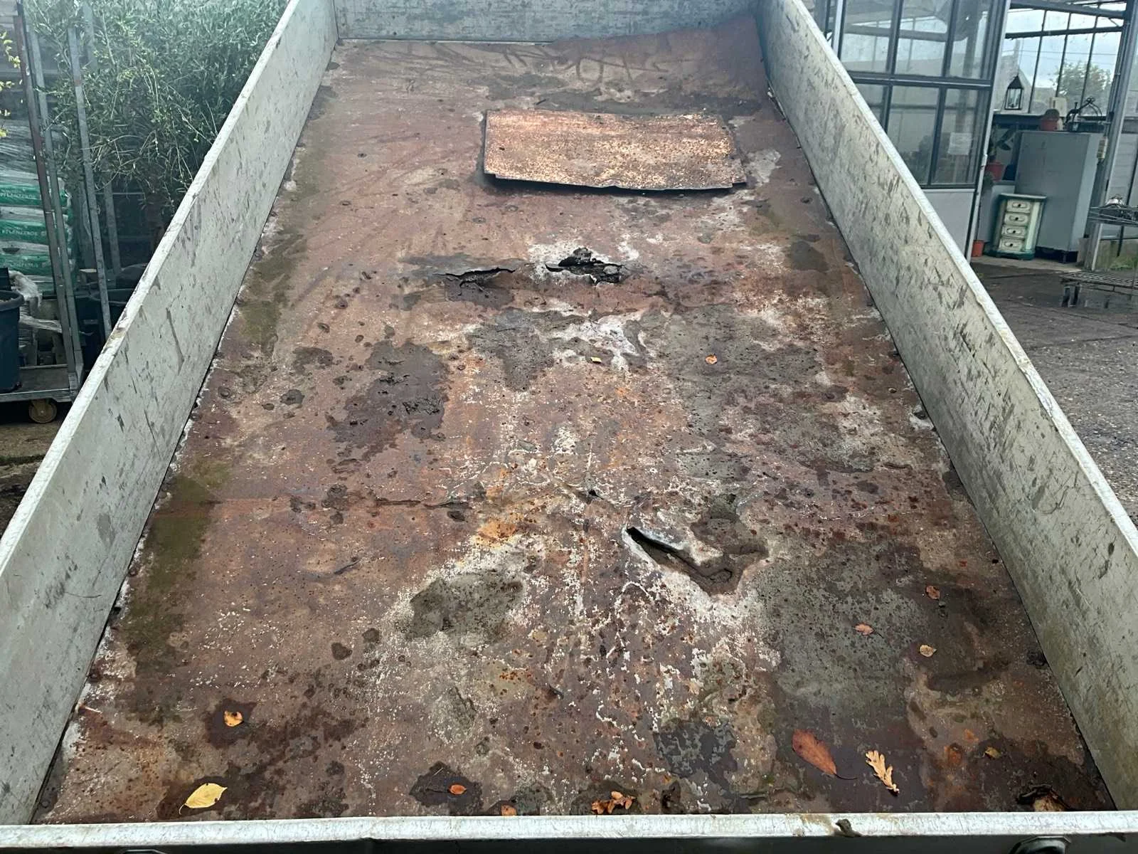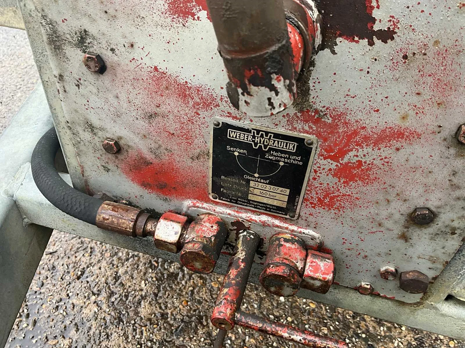 Stevige landbouwkipper met handbediende hydraulische cilinder (Weber-Hydraulik, 160 bar). Ideaal voor het transporteren van grond, hout, puin of landbouwproducten. ✅ Tandemas – stabiel rijgedrag ✅ Handhydrauliek – werkt goed ✅ Verzinkt chassis – degelijke constructie ✅ Kiepbak 2,5 × 1,5 meter Bakbodem vertoont roest en slijtage, verder complete en functionele kipper. Geschikt voor hobbyboer, loonwerker of erftransport. Nee Merk: Anssems