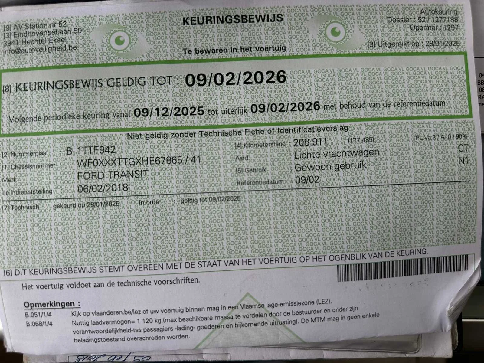 Degelijke en ruime Ford Transit lichte vrachtwagen, ideaal voor professioneel gebruik. De bestelwagen is uitgerust met een krachtige dieselmotor en biedt veel laadruimte, perfect geschikt voor transport of montagewerk. De gele kleur zorgt voor een opvallende en professionele uitstraling. De wagen is voorzien van een dakrek voor extra laadmogelijkheden, met zichtbare gebruiksmogelijkheden volgens leeftijd en kilometerstand. Nee Merk: Ford Model: Transit Bouwjaar: 2018 Chassisnummer: WF0XXXTTGXHE67865 Afgelezen kilometerstand: 224231km Cilinderinhoud: 1995cc Vermogen (kW): 96kW Brandstof: diesel Datum eerste inschrijving: 06/02/2018 Aandrijving: FWD Transmissie: Handgeschakeld Aantal zitplaatsen: 3 Kleur: Geel Nationaliteit documenten: Belgisch Stuurwiel: Multifunctioneel Aantal deuren: 4 Ledig gewicht: 2271kg Laadvermogen: 1094kg Vermogen (pk): 135 Aantal cilinders: 4 CO2-uitstoot NEDC: 185 Emissieklasse: 6b Kentekenpapieren compleet?: true CVO verklaring: true Boorddocumenten aanwezig?: true Startinformatie: Start en rijdt Self drive export possible : true