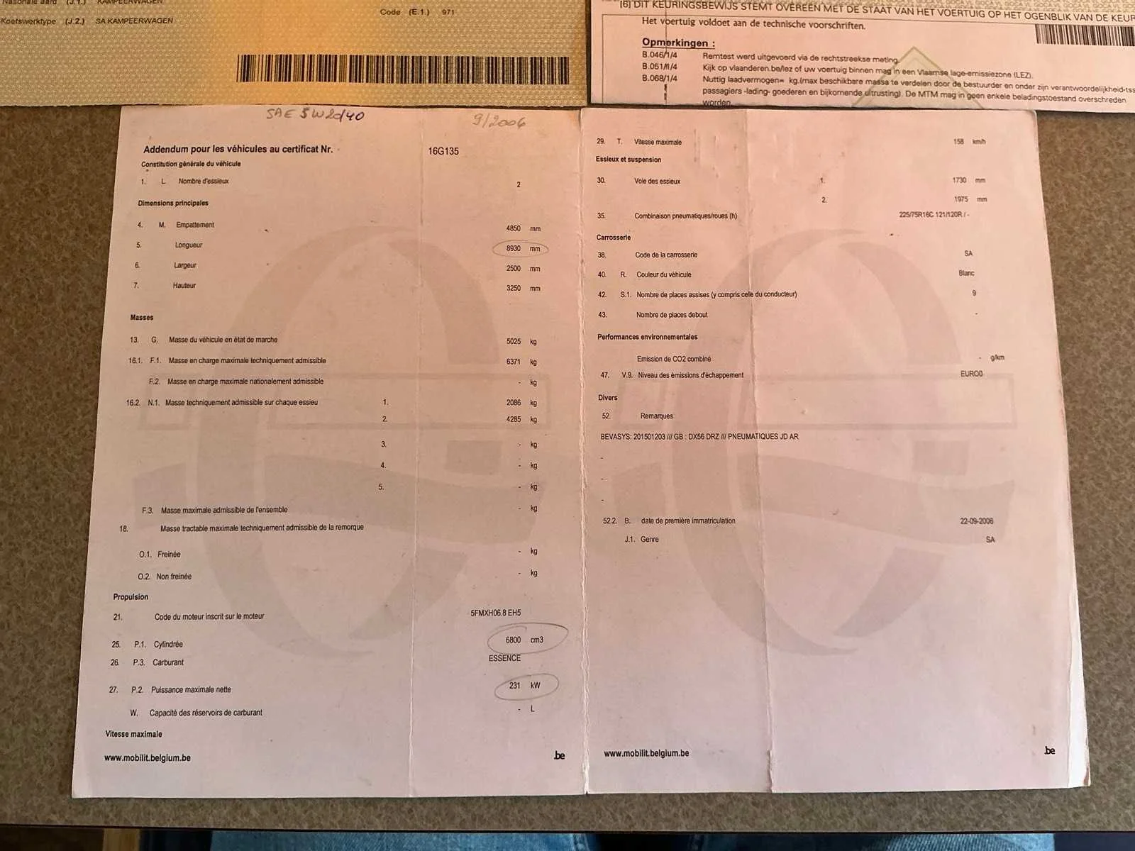 Ford E450 Coachmen 2006 Lpg voertuig 6 nieuwe banden 2 tv’s 4G & Wifi antenne 2 zonnepanelen 420W Victron regelaar Omvormer 7000W centraalstofzuigersysteem B-flexx verwarming op LPG Airco Orginele kussens in nieuwstaat (hoezen ter bescherming) C rijbewijs Nee Merk: Ford Model: E450 Type: Coachmen Chassisnummer: 1FDXE45S25HA76759 Aantal zitplaatsen: 9 Aantal sleutels: 2 Transmissie: Automaat Datum eerste toelating: 22/09/2006 Bouwjaar: 2006 Afgelezen mijlenstand: 38441mi Vermogen (kW): 231kW Cilinderinhoud: 6800cc Brandstof: Benzine / LPG Aantal deuren: 3 Kleur: Wit Lengte: 8800cm Breedte: 2500cm Hoogte: 3250cm