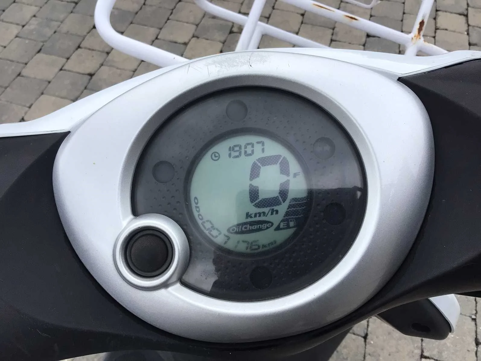 Nieuwe batterij Non Merk: Yamaha Model: YN50FT Type: SA46 Snelheid: 45km/h Bouwjaar: 2015 Brandstof: Essence Kleur: Blanc Afgelezen kilometerstand: 7176km