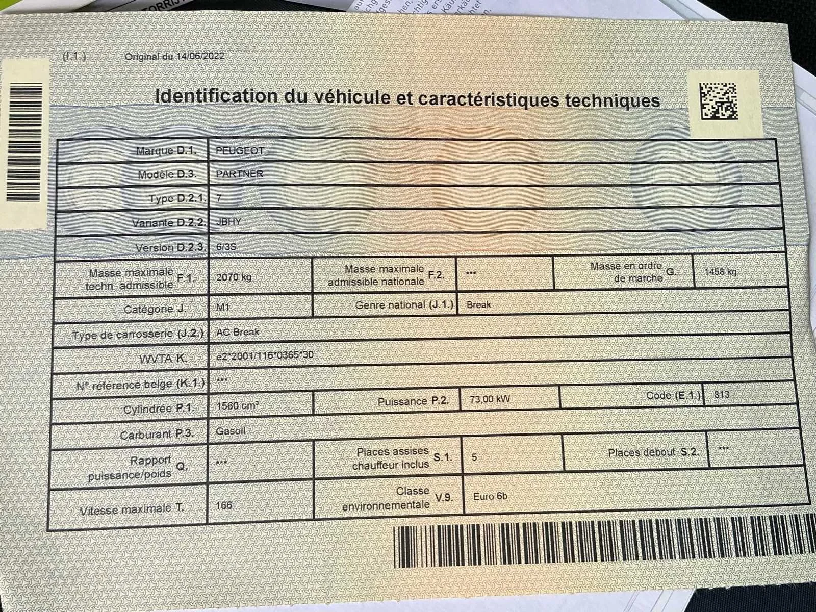 Km stand onbekend, laatst gekende km stand +- 300.000 km. Batterij is plat, staat van de wagen dient gecontroleerd worden. No Merk: Peugeot Model: Partner 1.6 Hdi Bouwjaar: 2017 Afgelezen kilometerstand: 300000km Cilinderinhoud: 1560cc Vermogen (kW): 73kW Brandstof: Diesel Chassisnummer: VF37JBHY6HJ682844 Datum eerste toelating: 20/07/2017 Aantal zitplaatsen: 5 Kleur: Donker grijs Transmissie: Manueel Emissieklasse: Euro 6b Aantal deuren: 5 Nationaliteit documenten: Belgisch Gelijkvormigheidsattest aanwezig: true